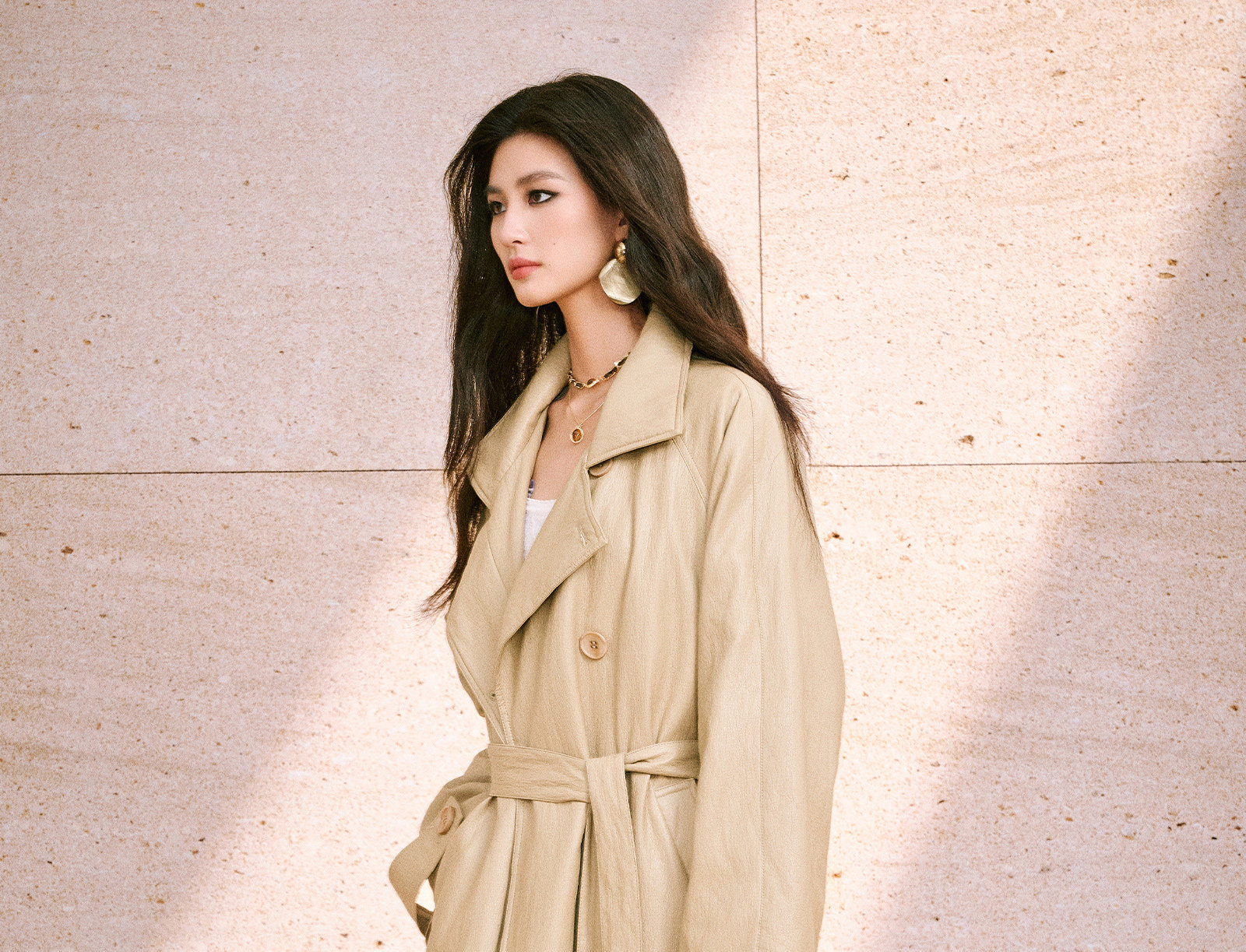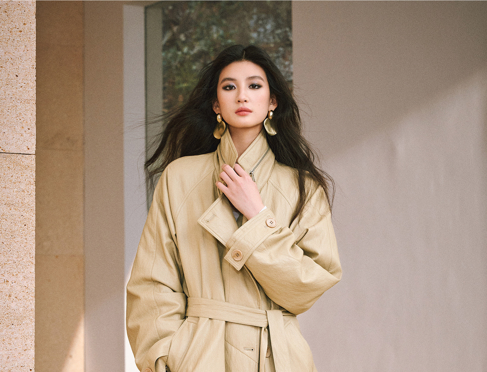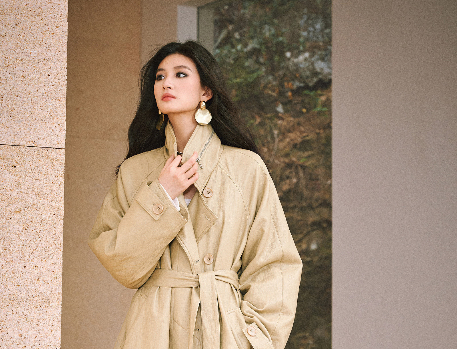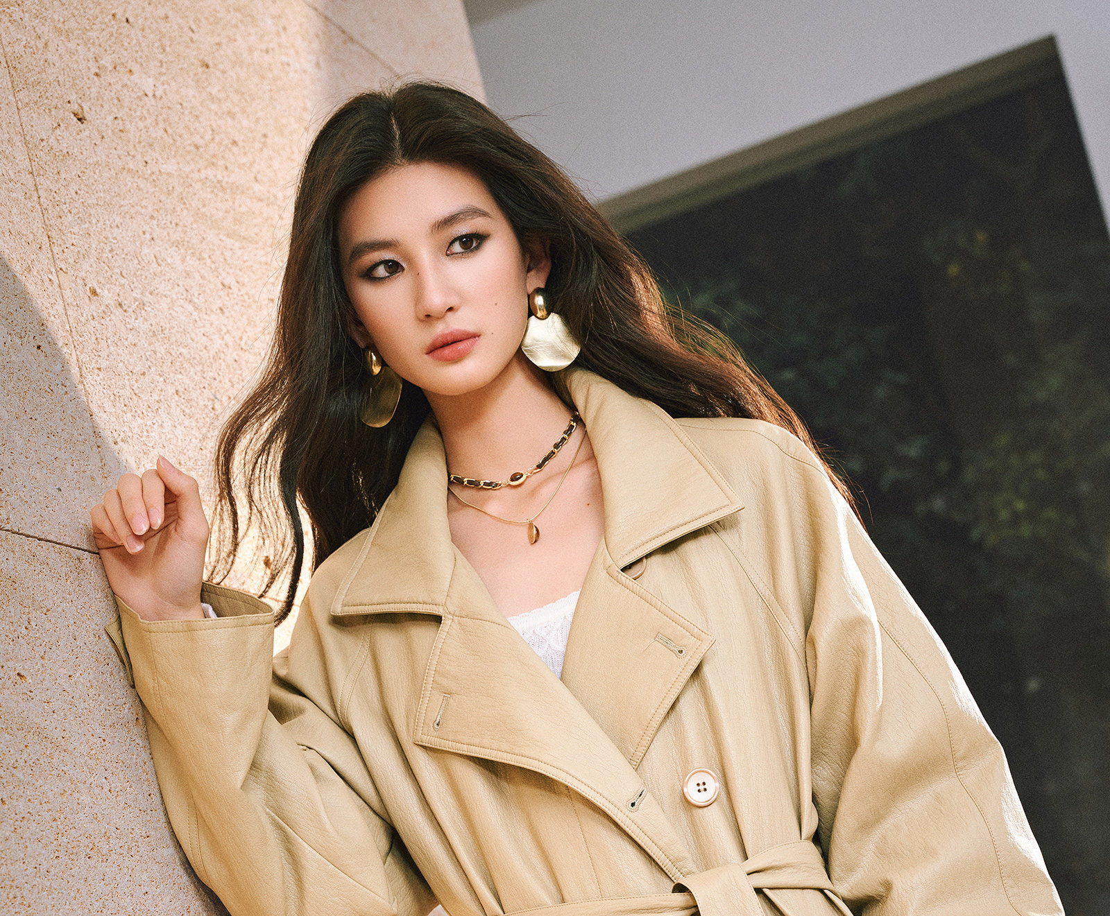 Wangxo|Metallic Plant-Based Leather|90% White Duck down Lapel Belt Leather Trench Coat Style Long down Jacket