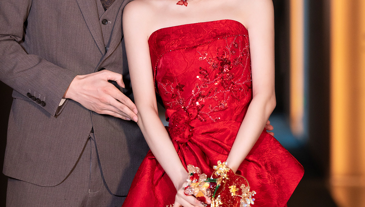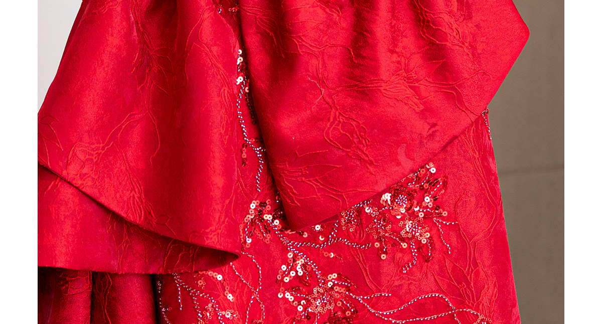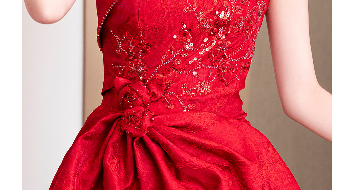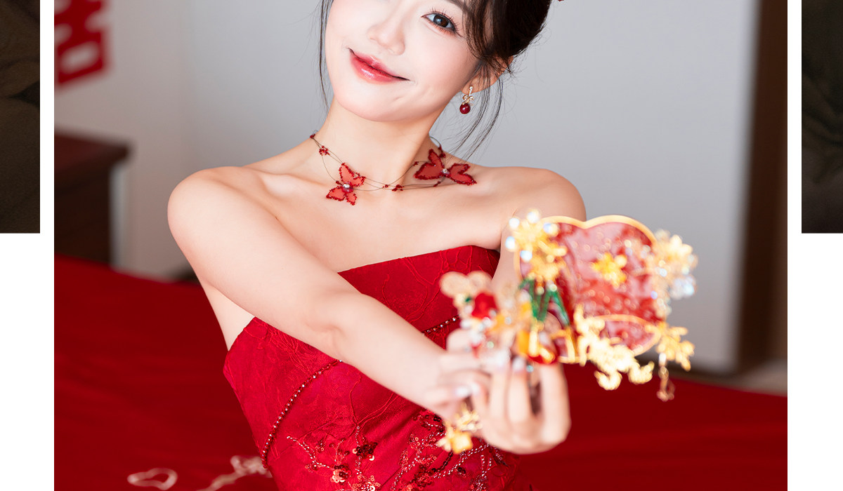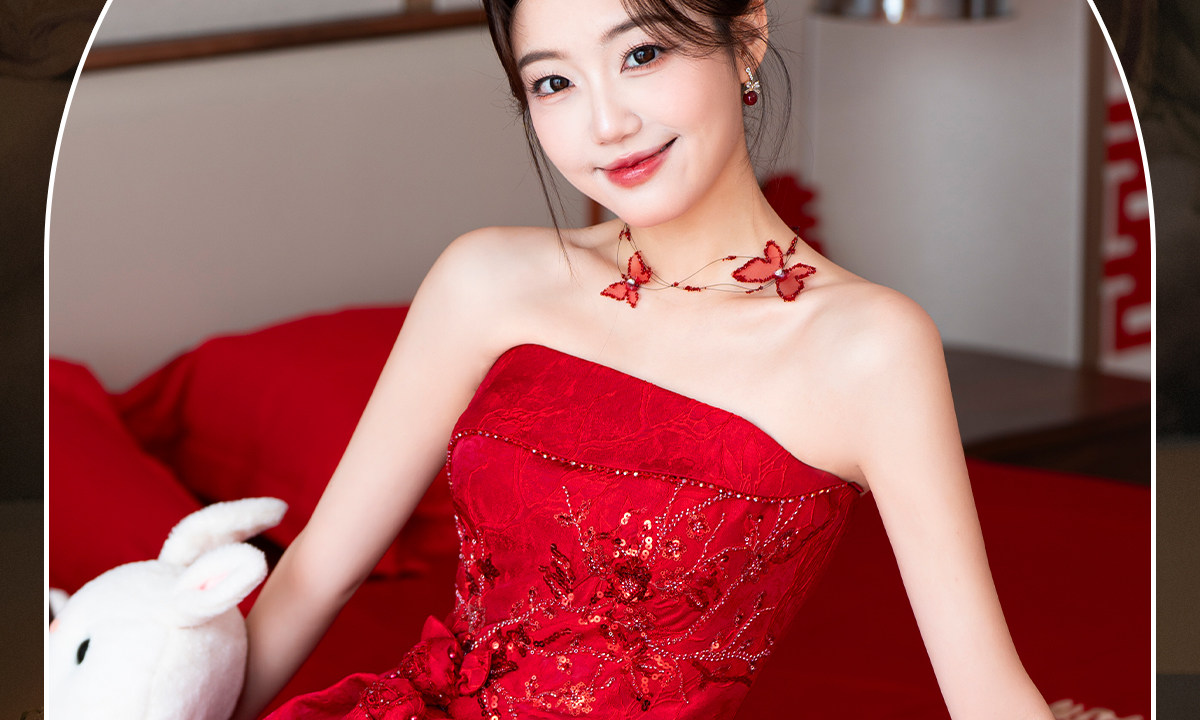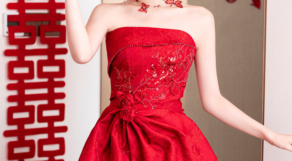 Aishini's "Wanwan" Bride Wedding Toast Dress, Red Engagement Strapless Dress, New Light Luxury Style for Petite Figures, Winter