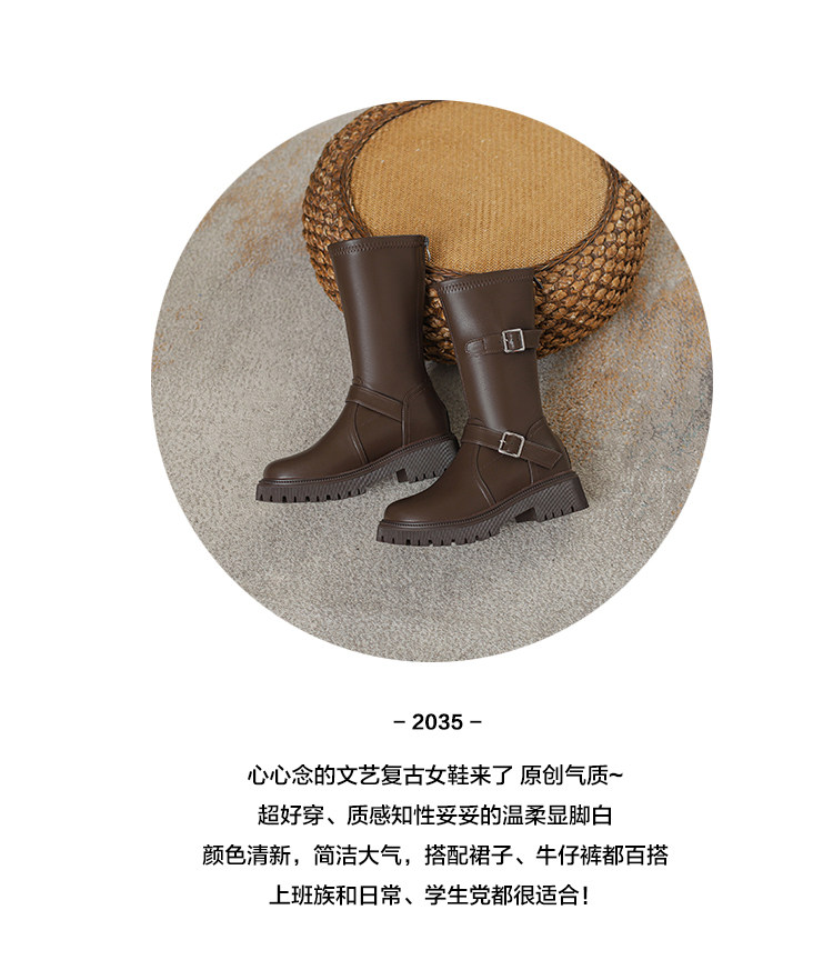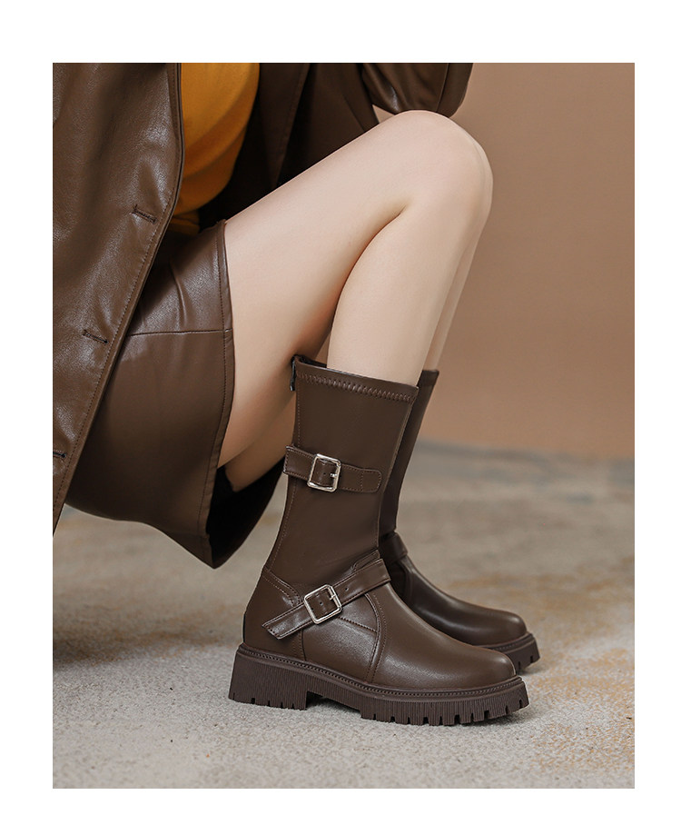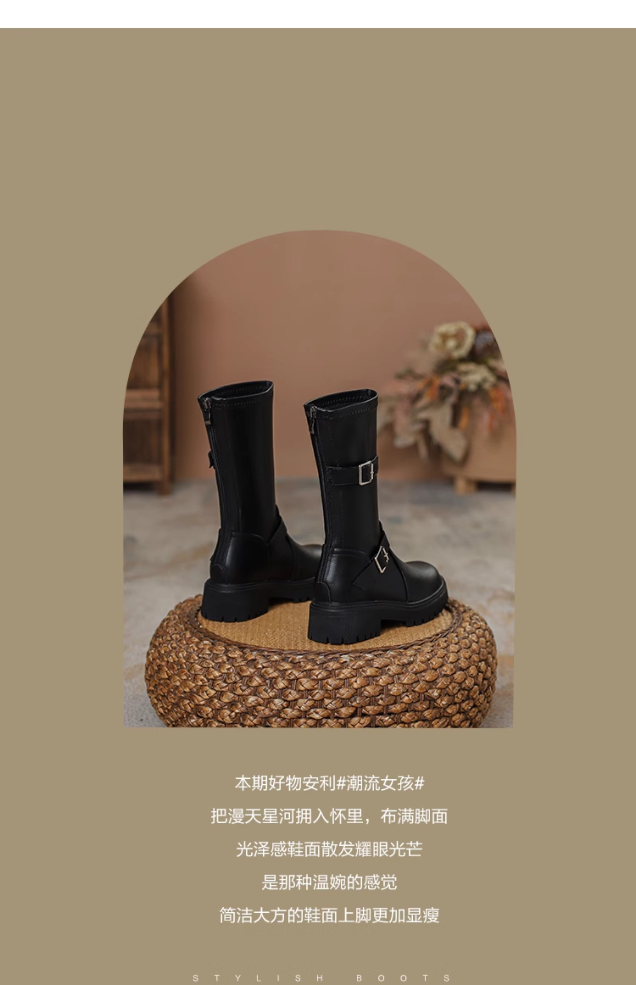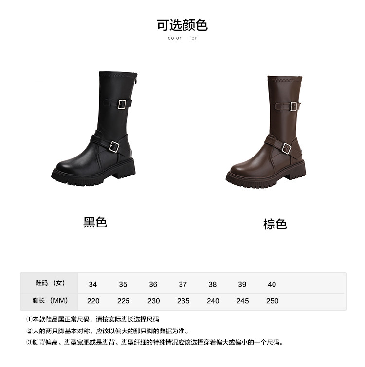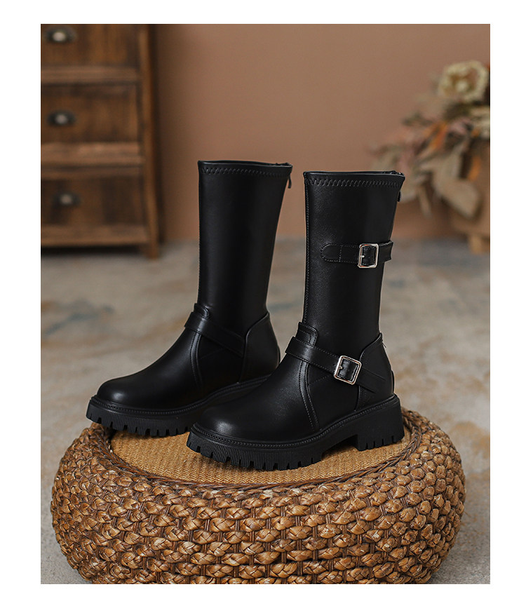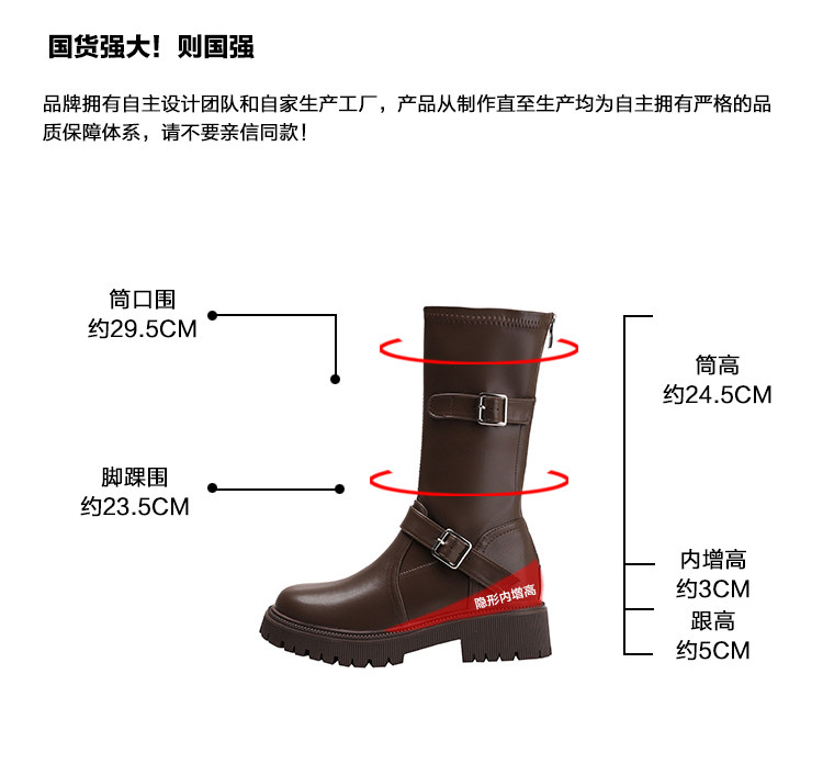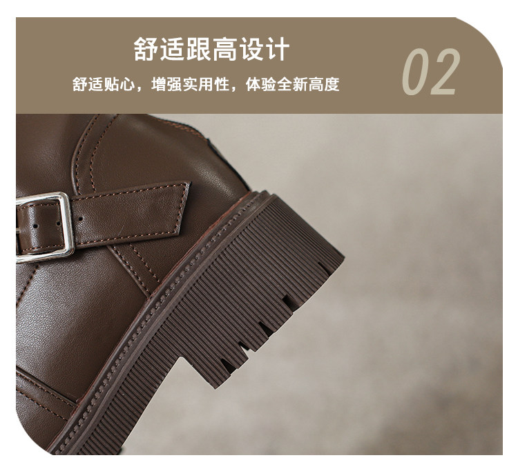 英伦风复古骑士靴女短靴2025秋冬新款内增高粗跟中筒靴加绒马丁靴
