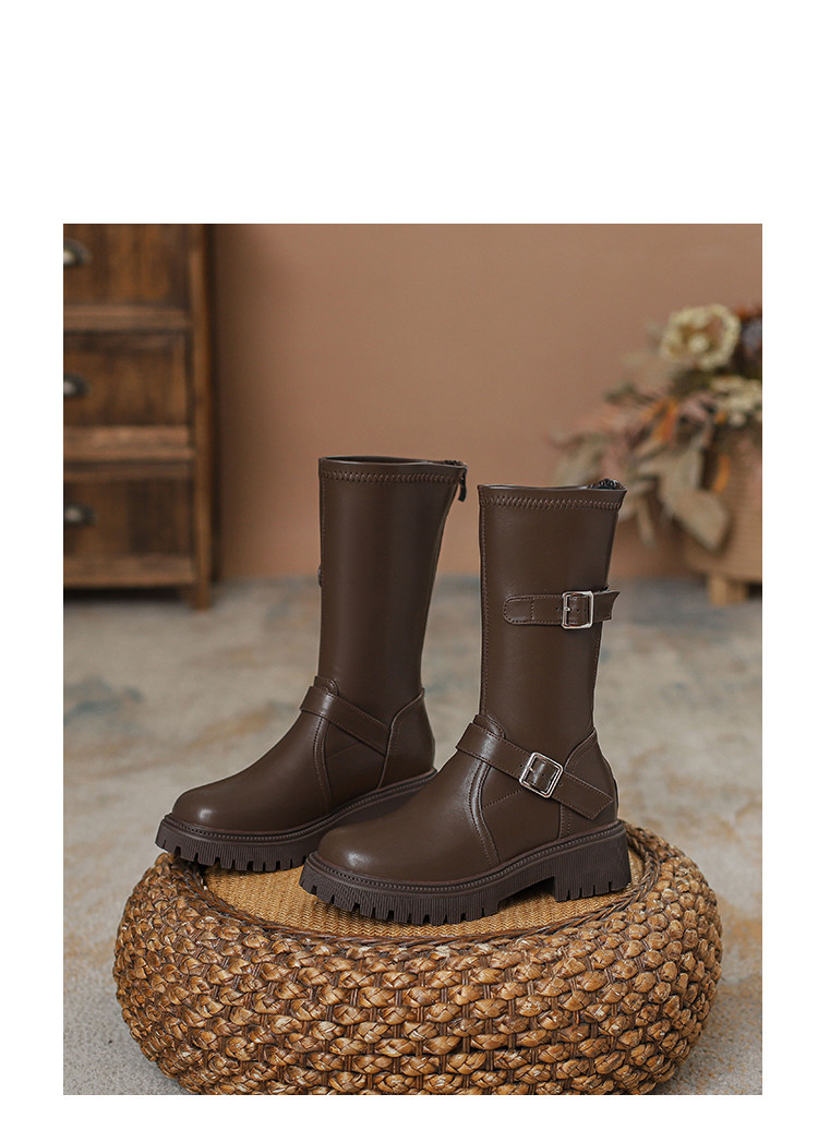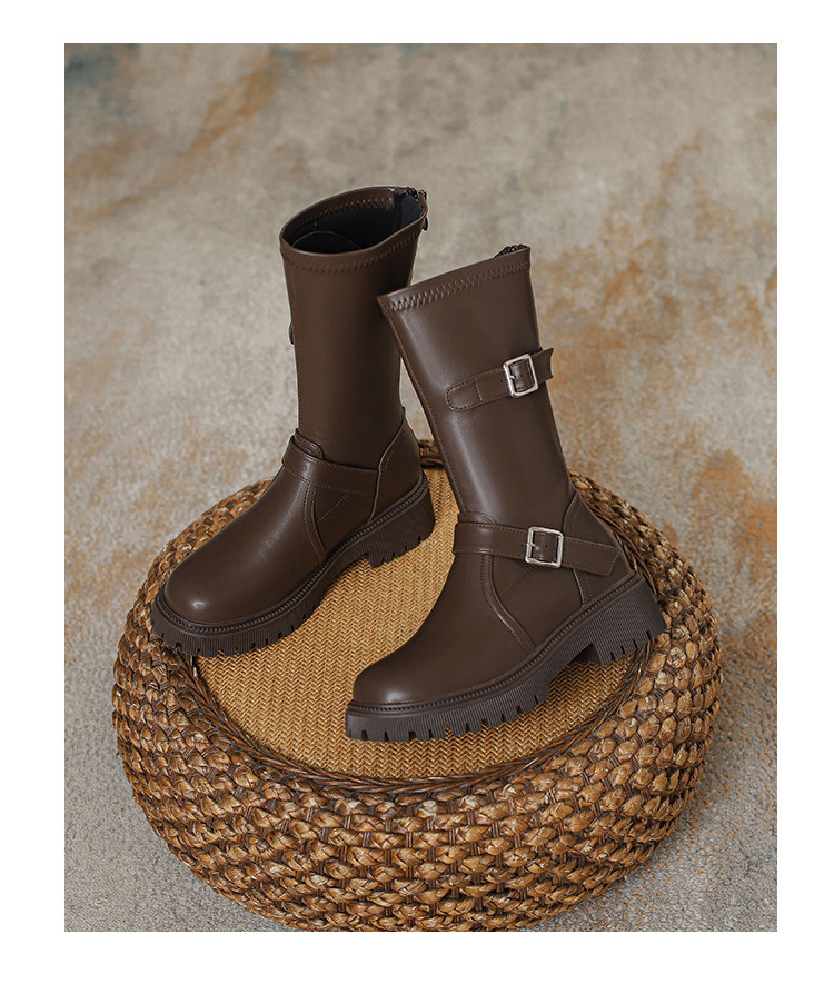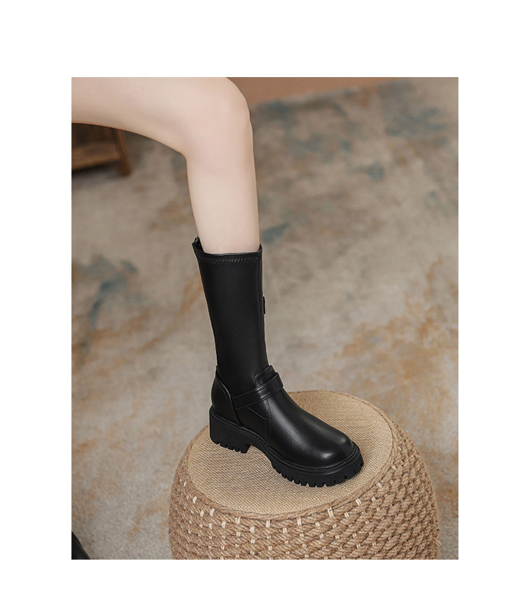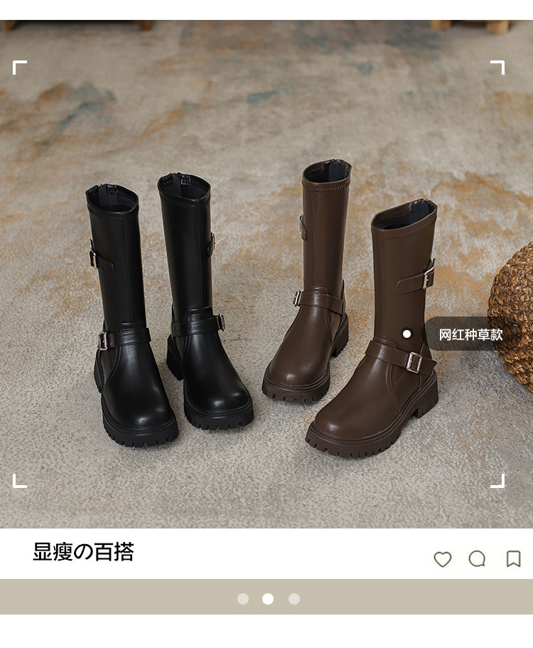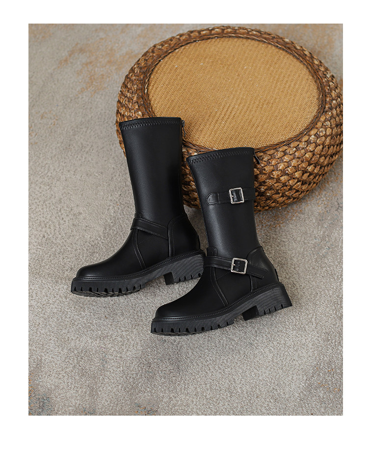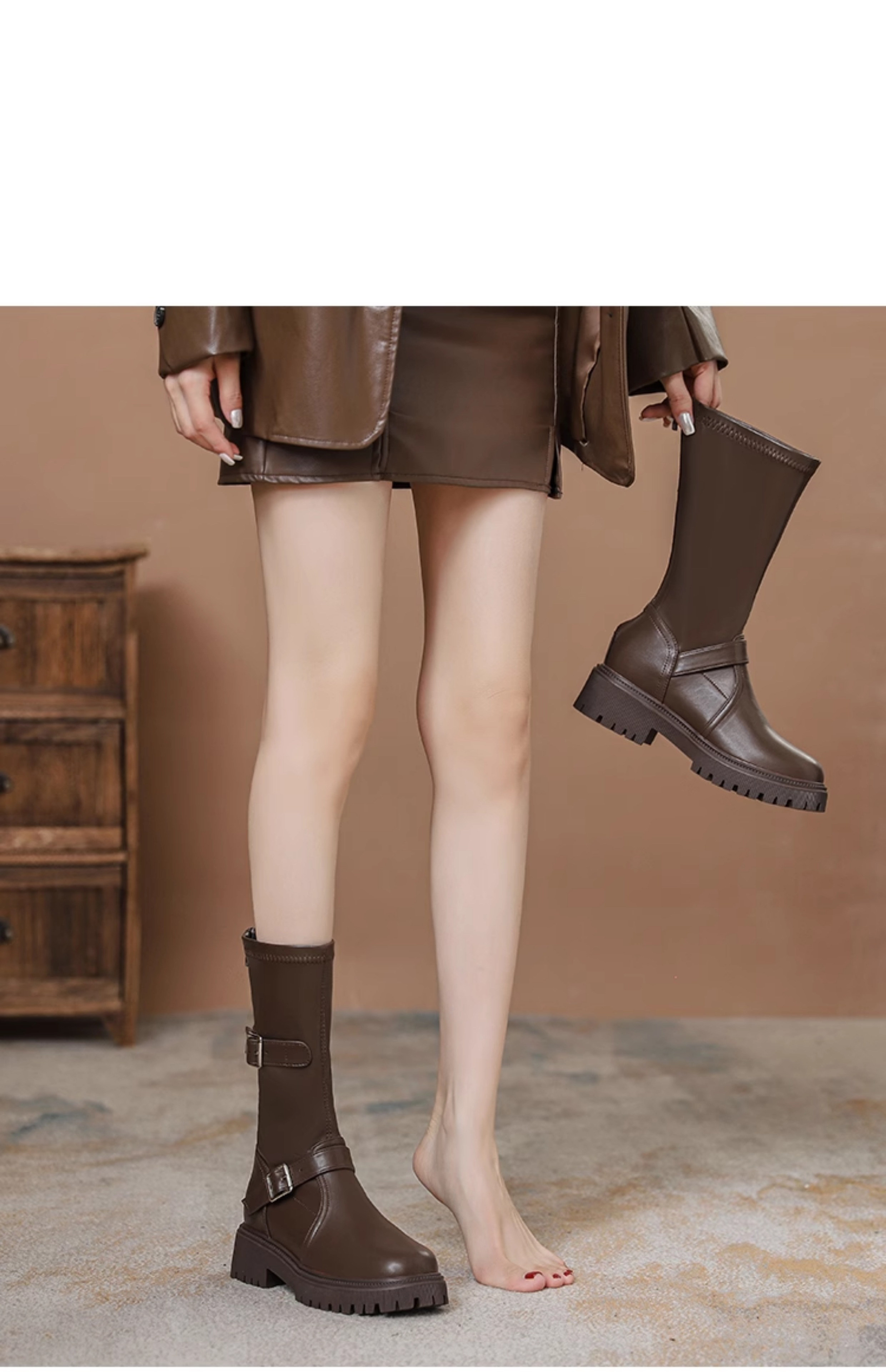 英伦风复古骑士靴女短靴2025秋冬新款内增高粗跟中筒靴加绒马丁靴
