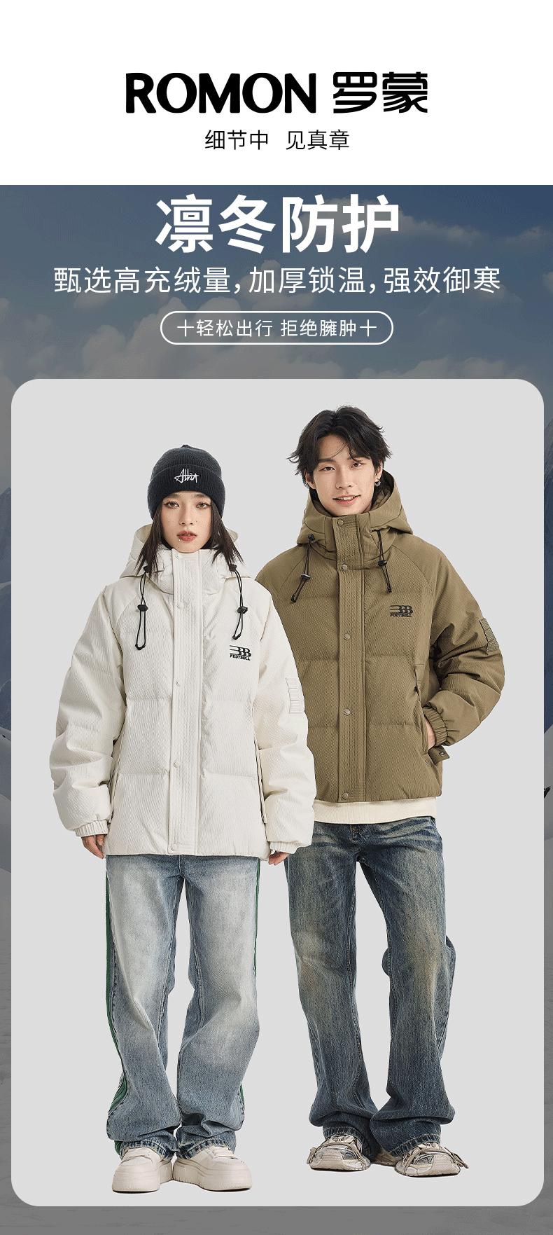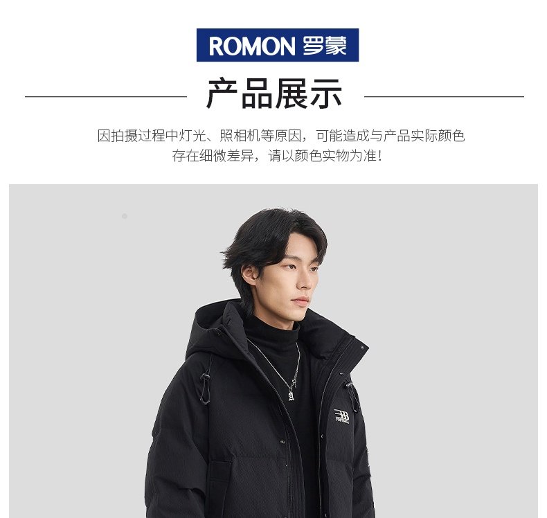 罗蒙高端羽绒服男士冬季保暖加厚防寒服情侣款休闲连帽鸭绒外套男