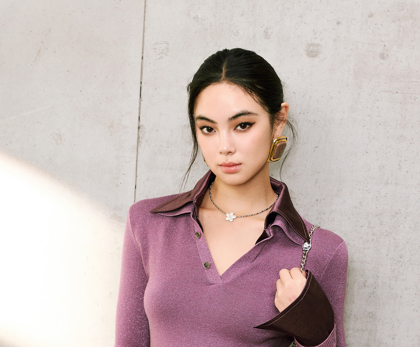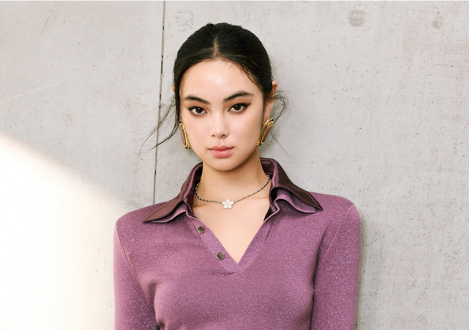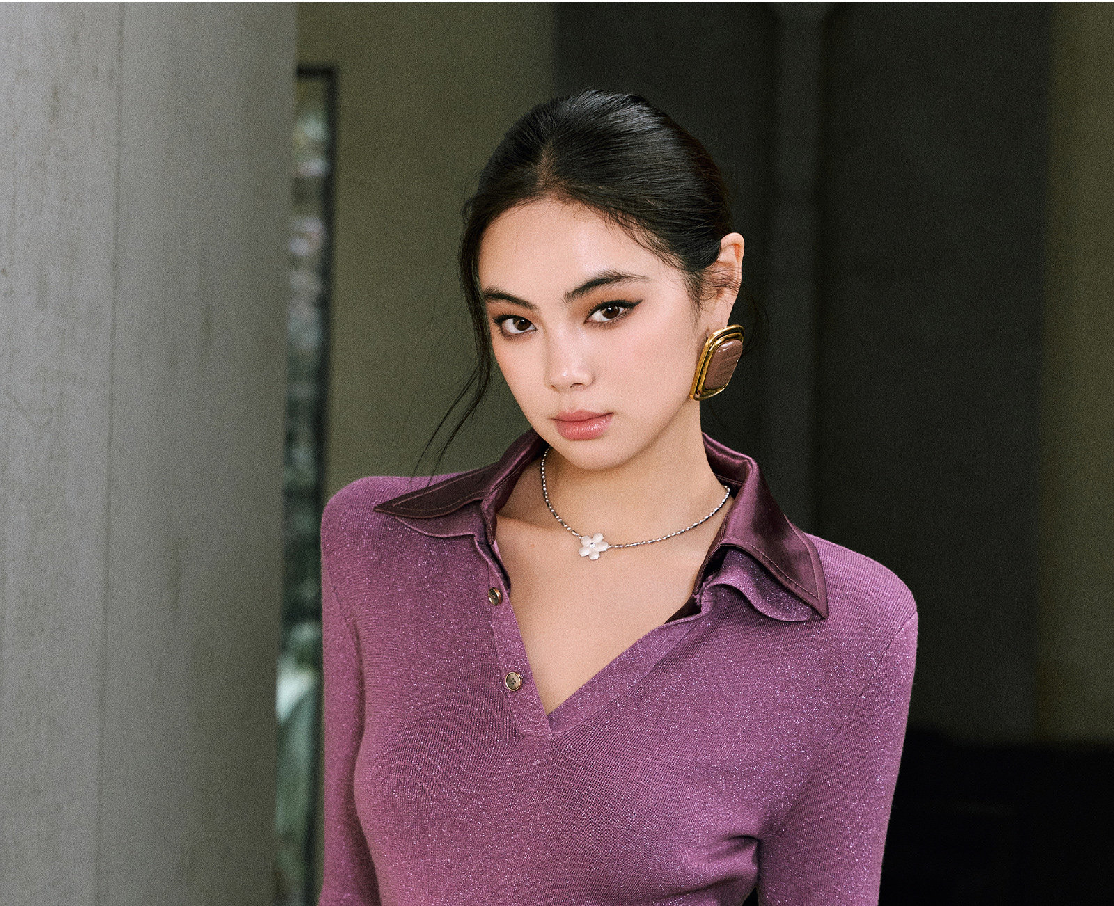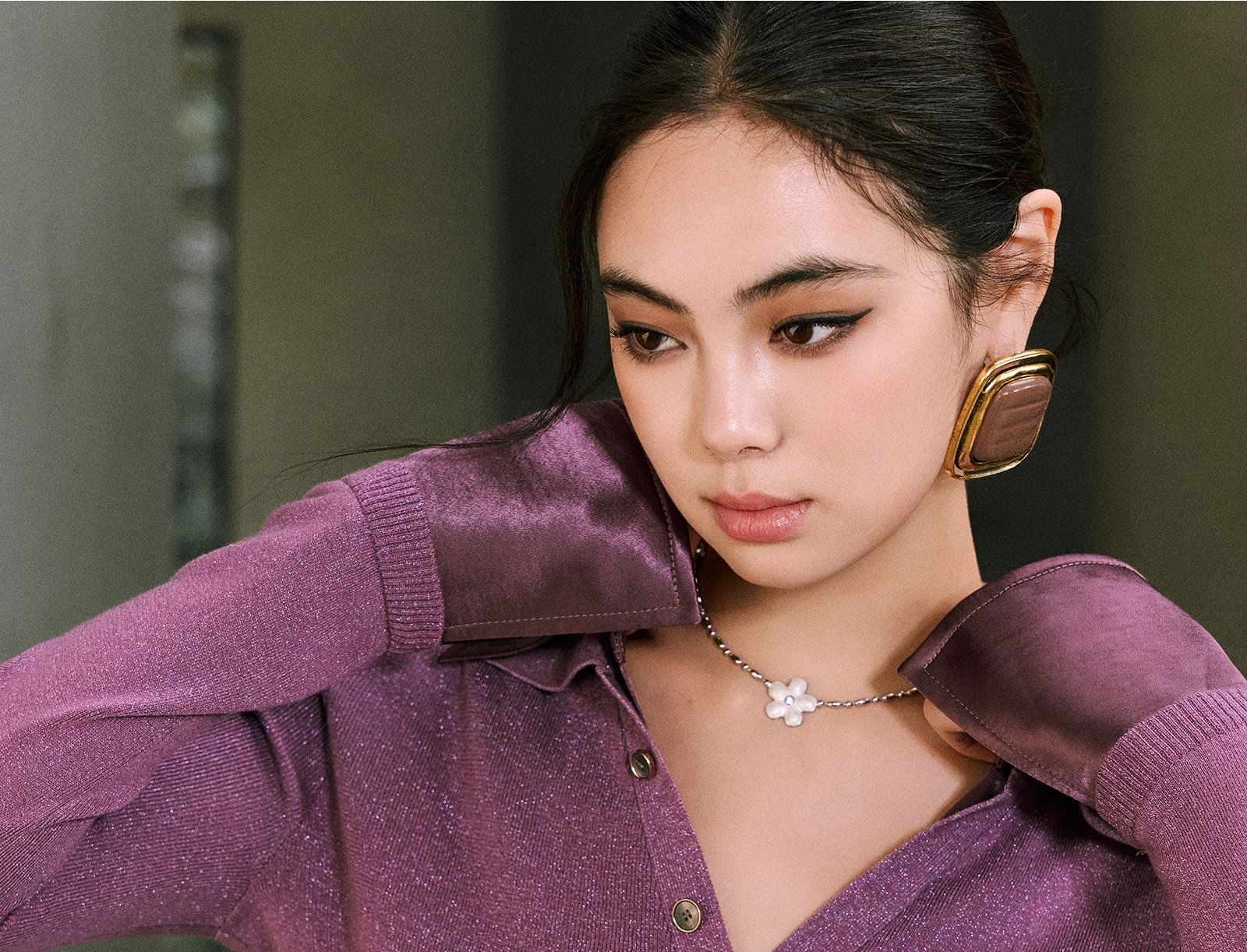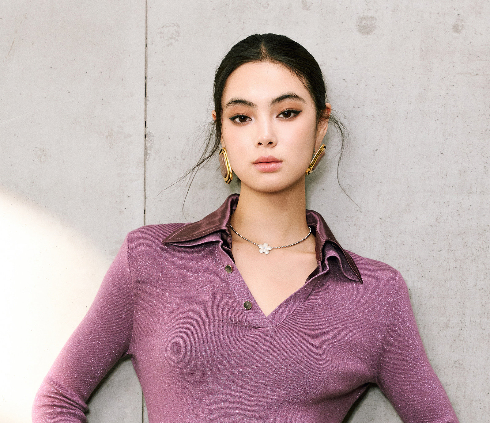 WANGXO|奢雅密闪弹力针织拼接光泽缎面|翻V领层次感假两件上衣