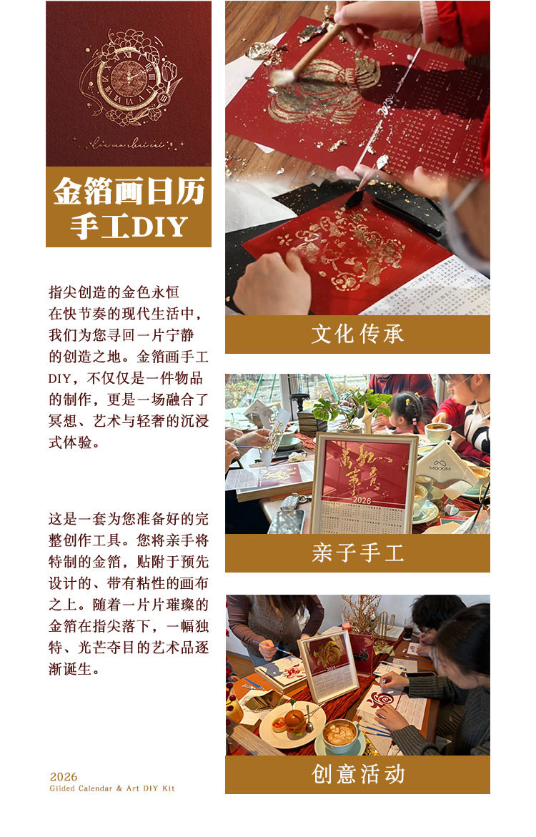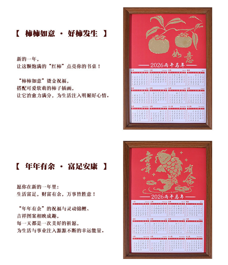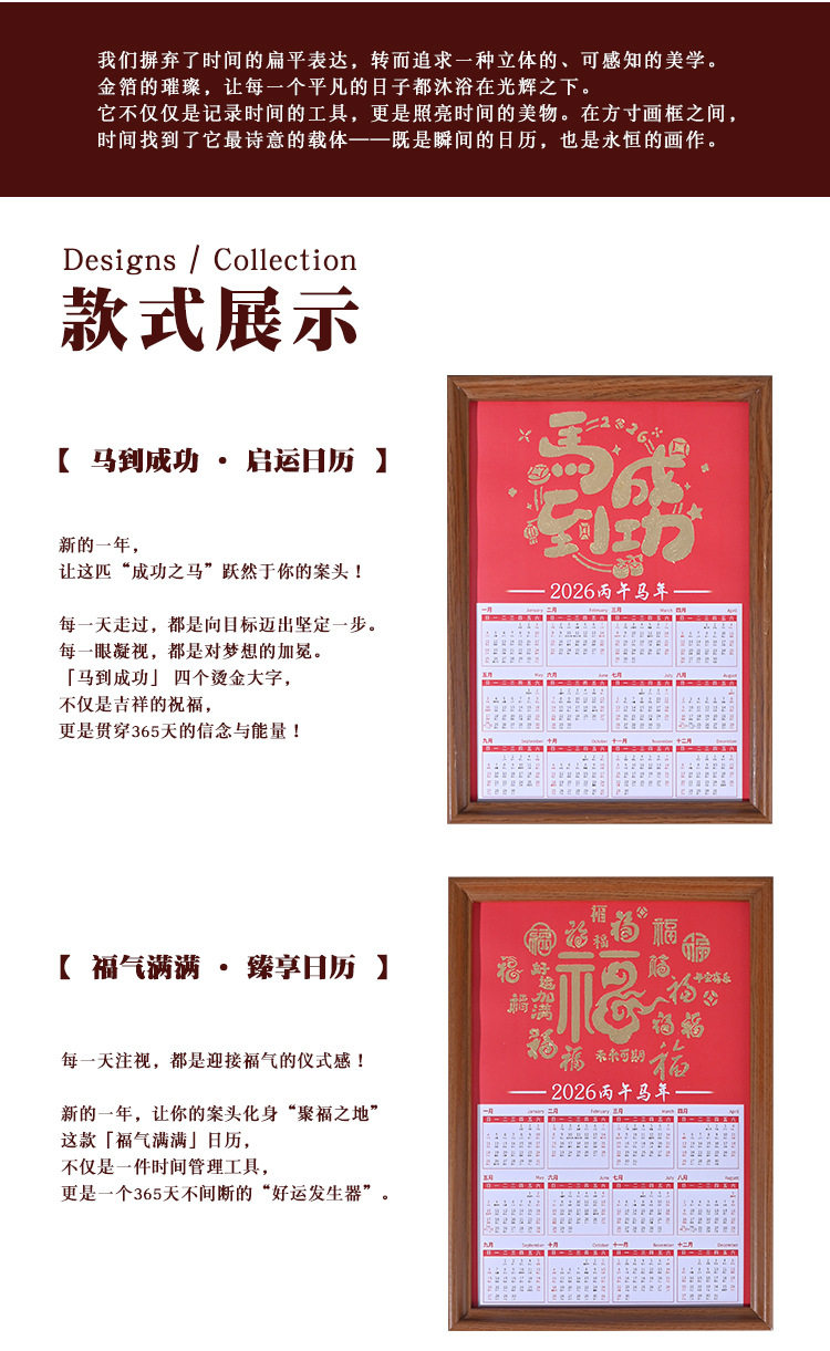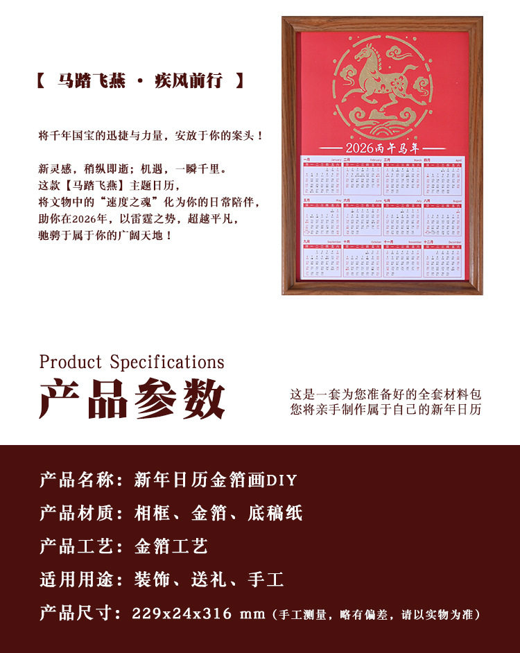 2026 Goldfolien-Malkalender, handgefertigt, DIY-Fotorahmen, gedeckter Tisch, Fu-Charakter, verbrannte Folie, dekorative Malerei, Jahr des Pferdes, kulturelles und kreatives Aufwärmen, handgefertigt