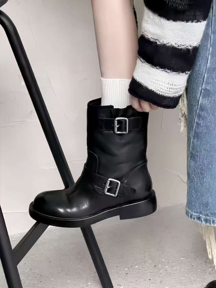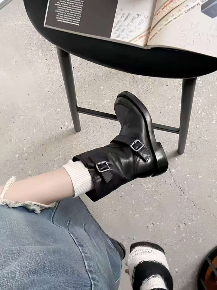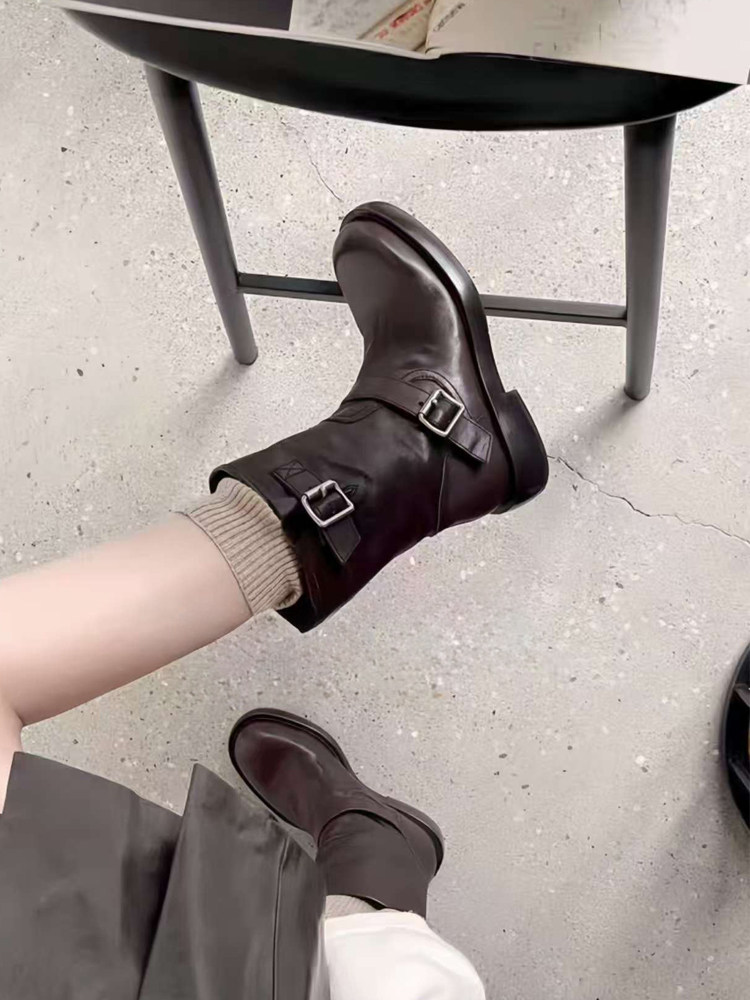 European Genuine Leather Martin Boots for Women, 2025 Autumn and Winter Models, Versatile British Style, Thick-Soled, Height-Increasing, Retro, Slimming Short Boots