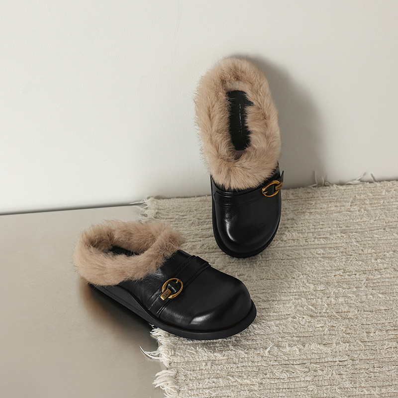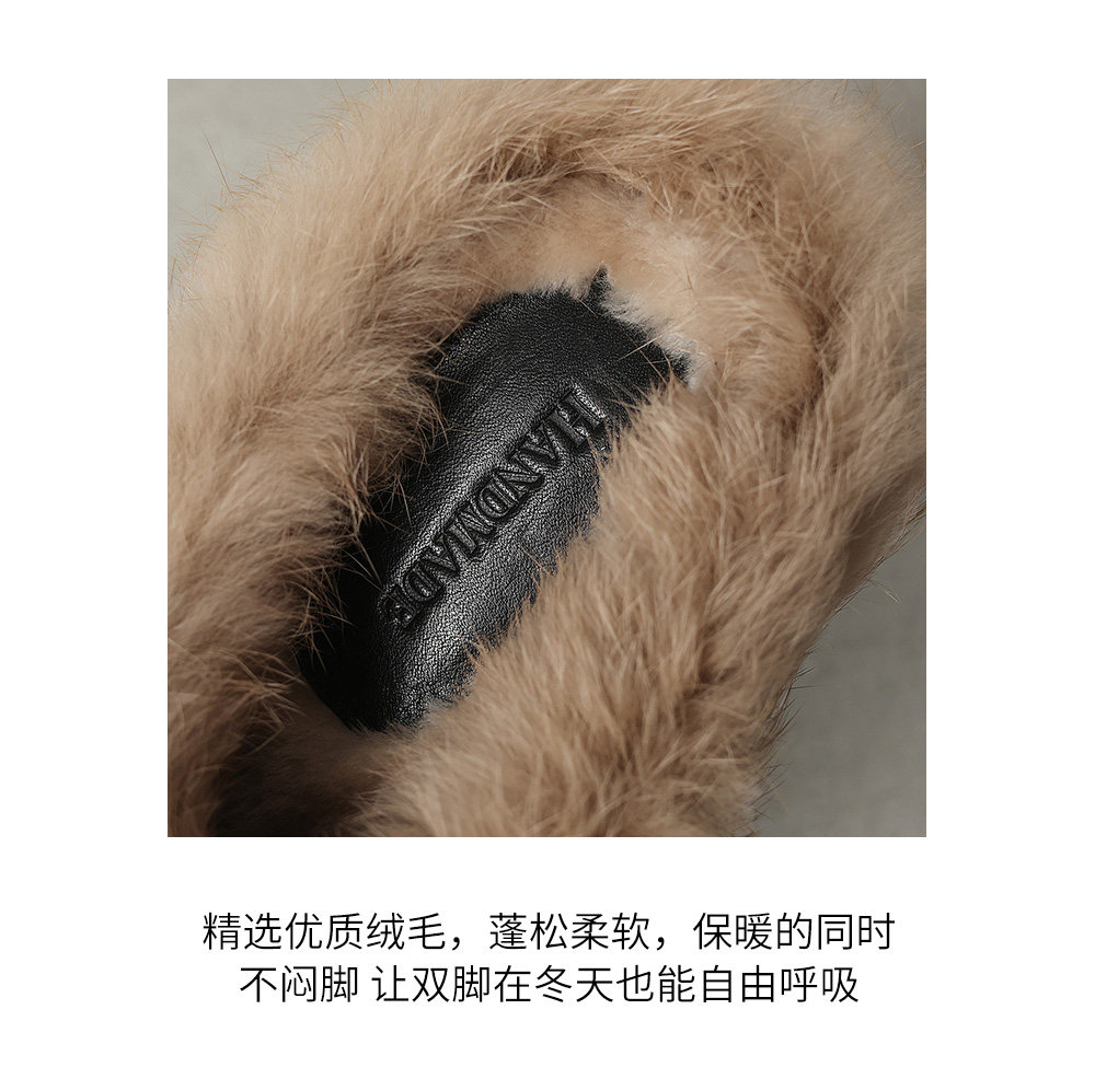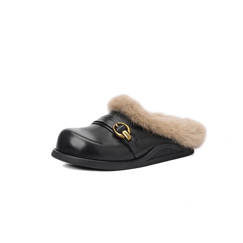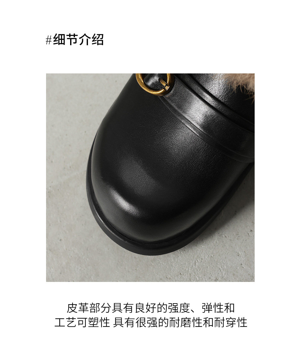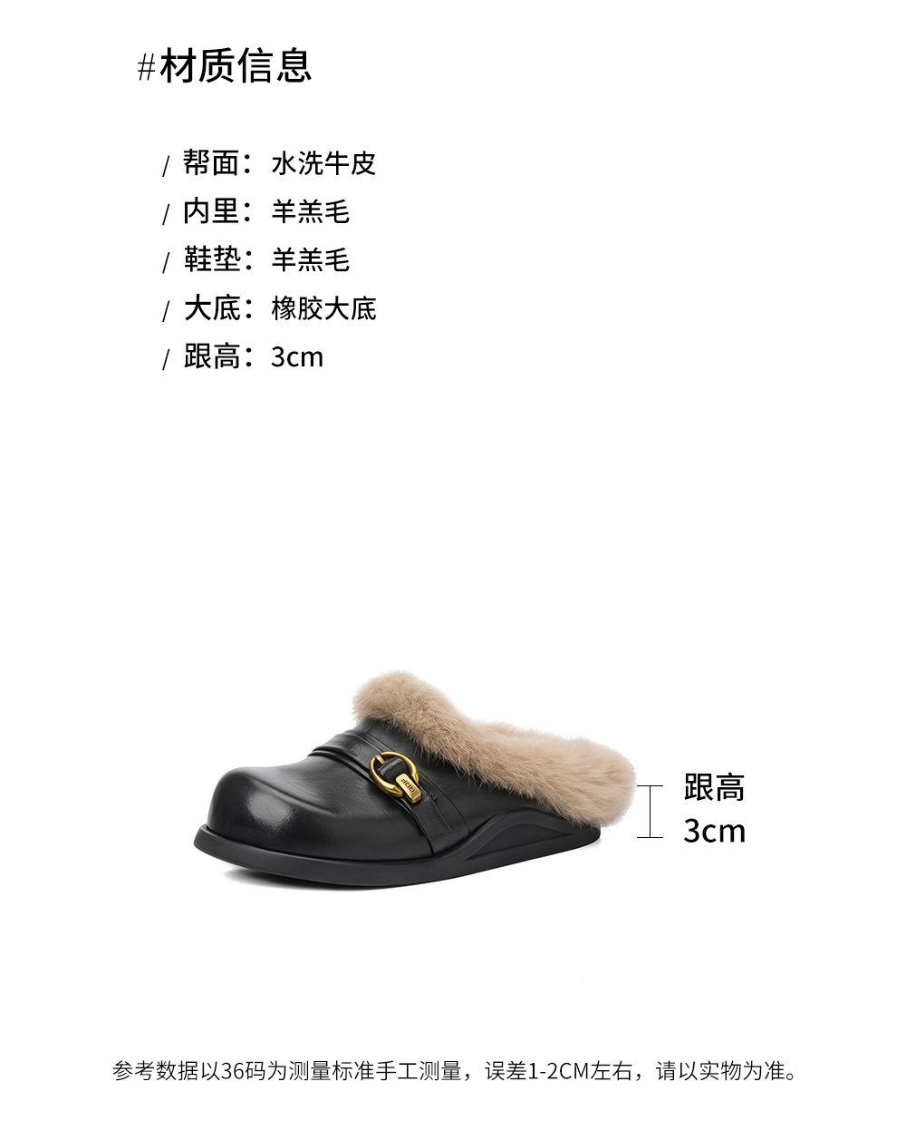 3cm~时光荏苒冬季新款包头拖鞋女外穿时尚加绒勃肯鞋真皮毛毛鞋子