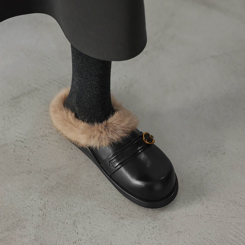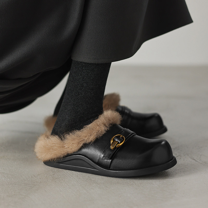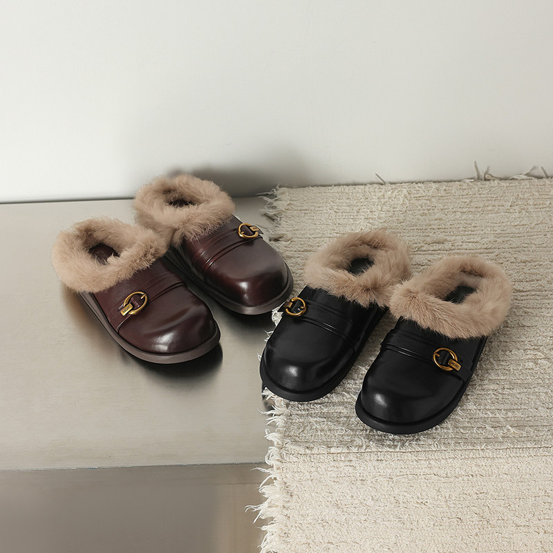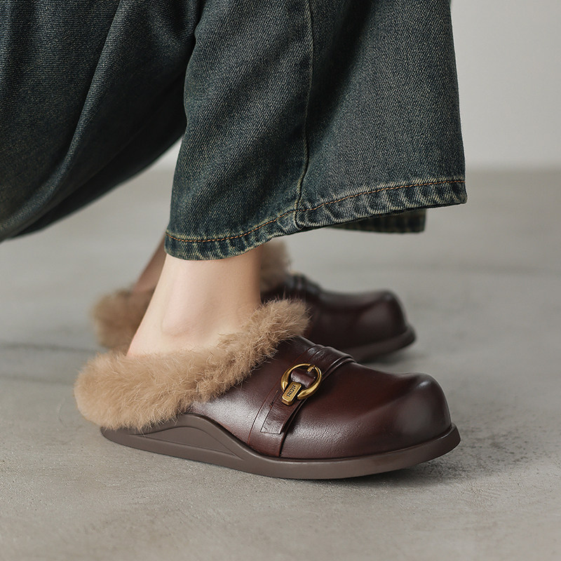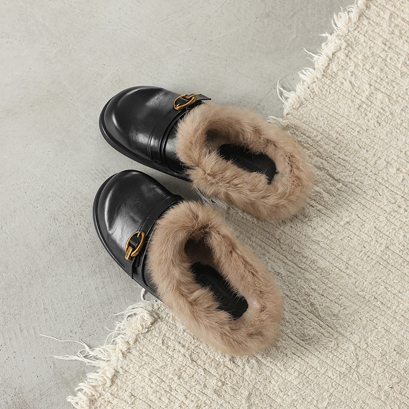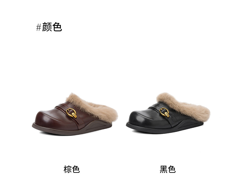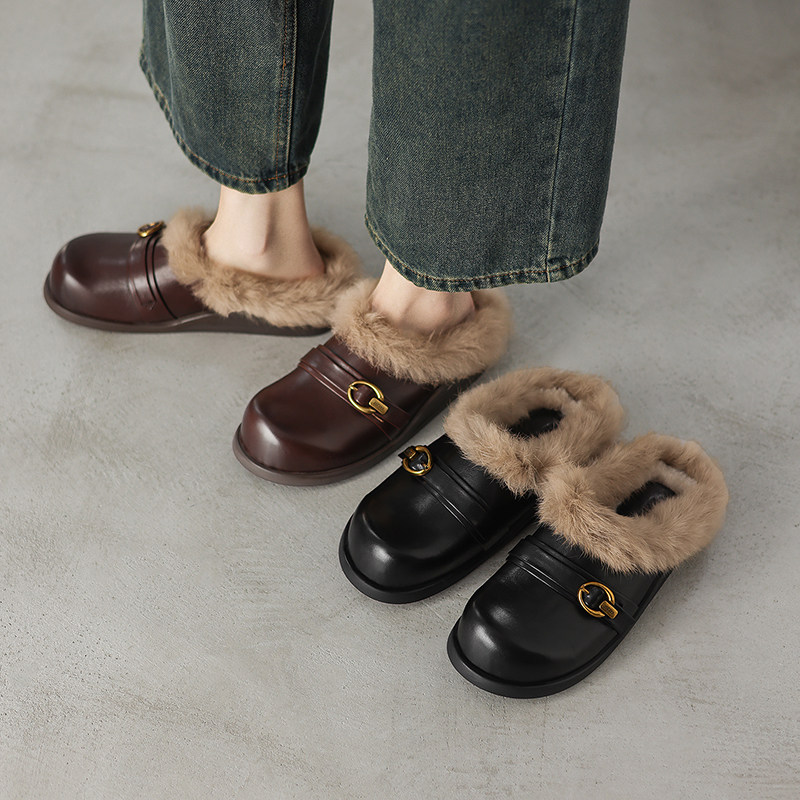 3cm~时光荏苒冬季新款包头拖鞋女外穿时尚加绒勃肯鞋真皮毛毛鞋子