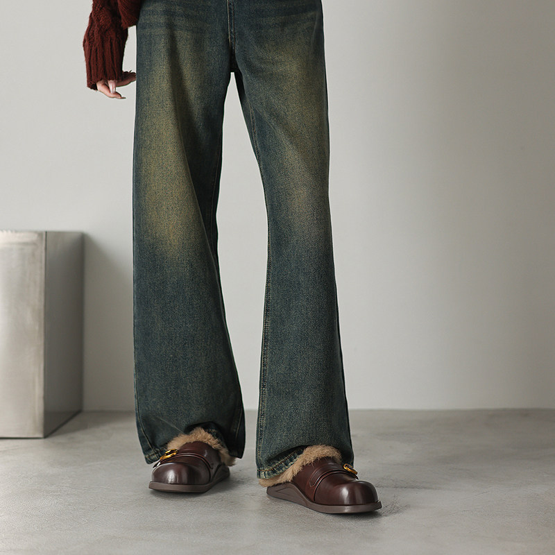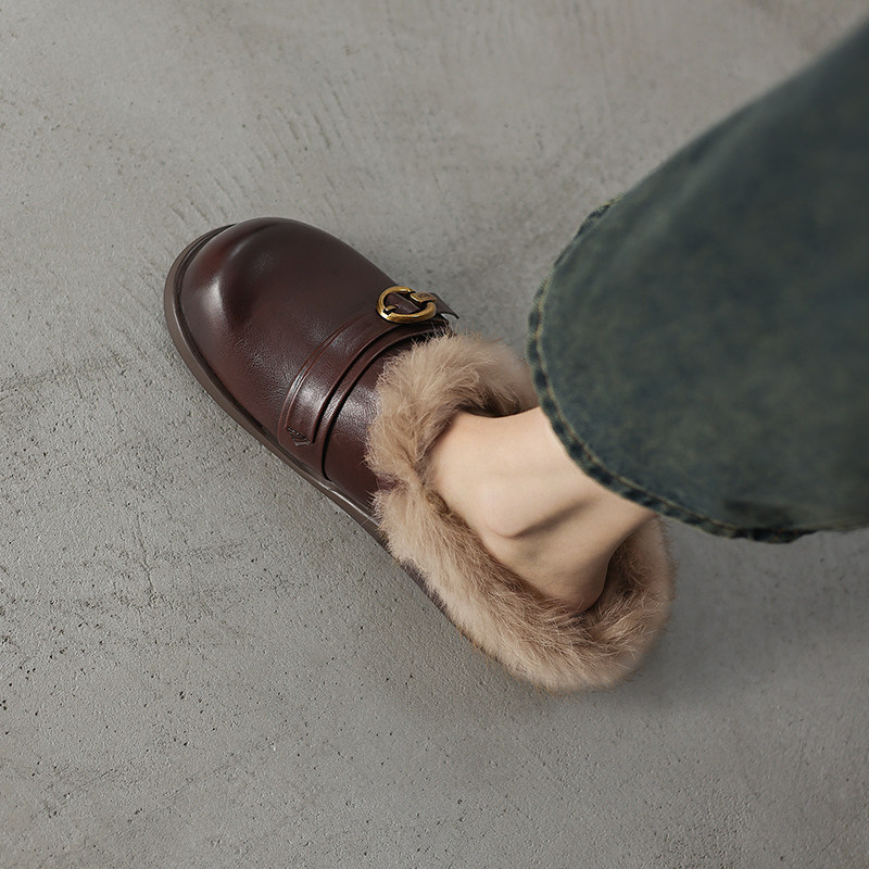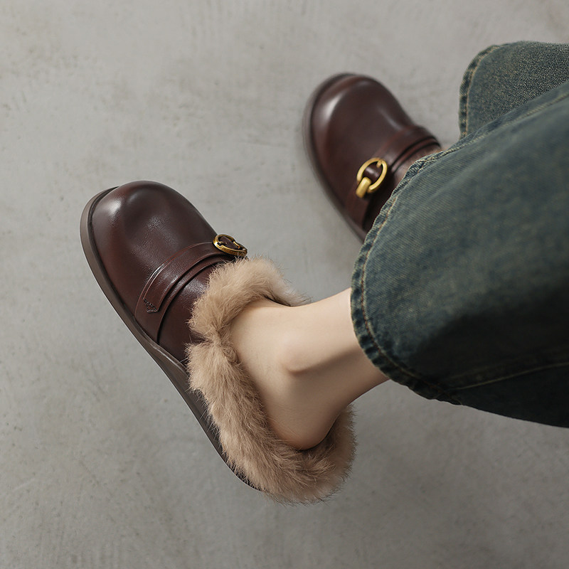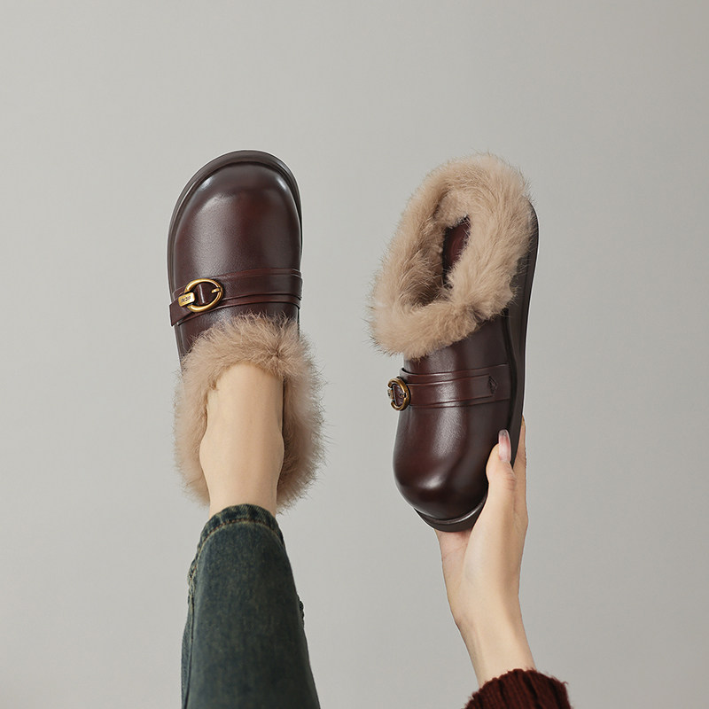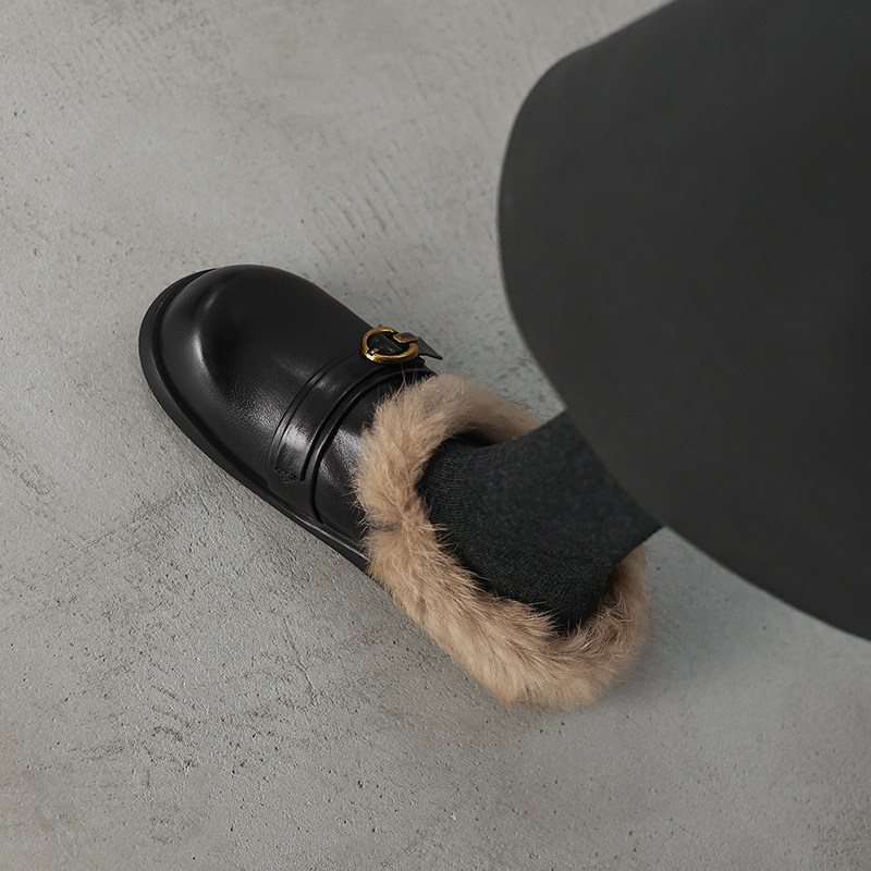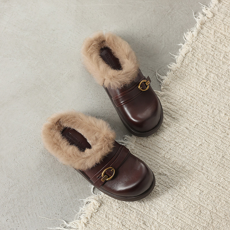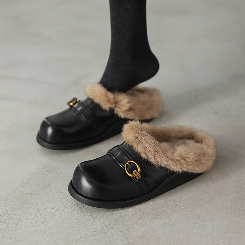 3cm~时光荏苒冬季新款包头拖鞋女外穿时尚加绒勃肯鞋真皮毛毛鞋子