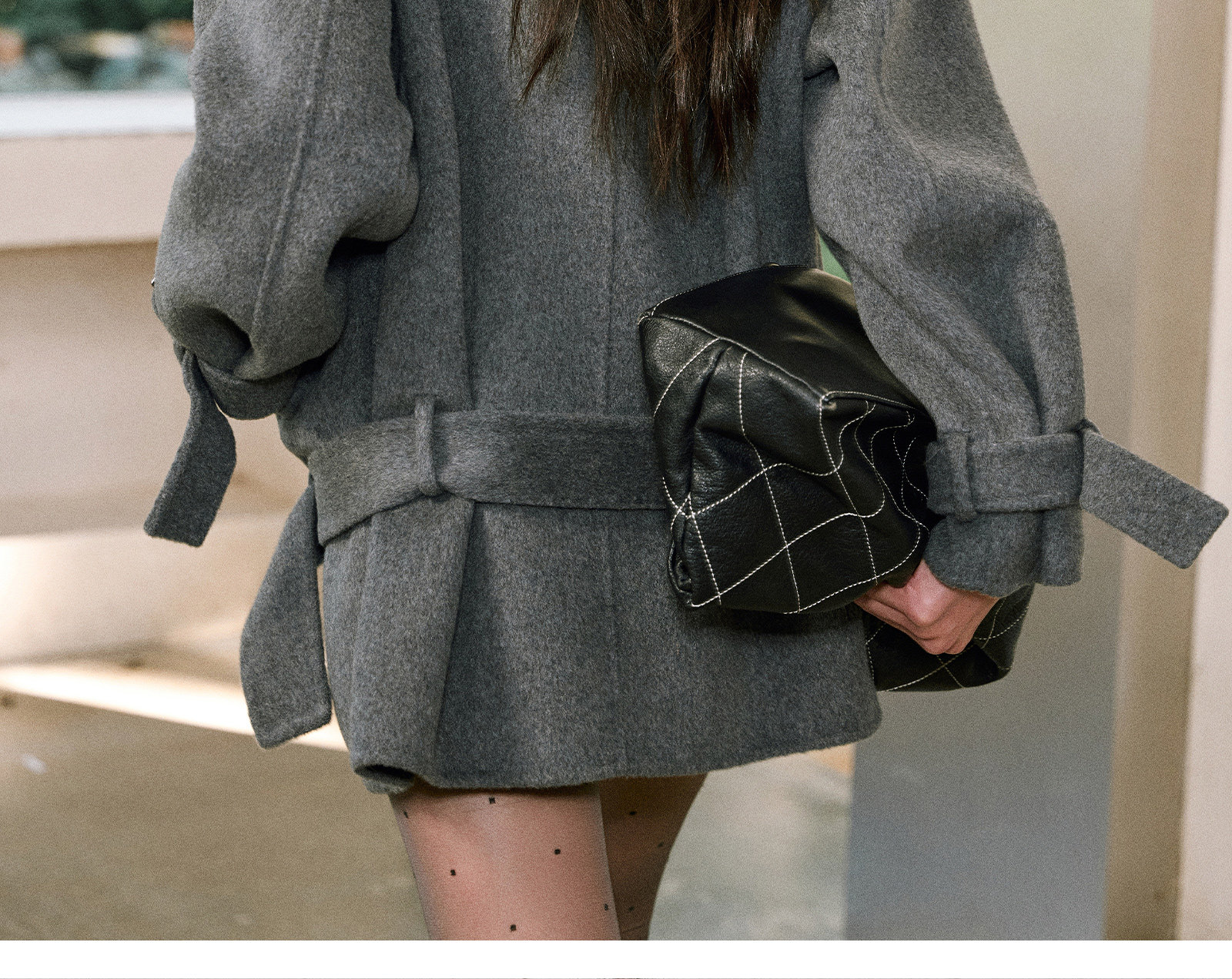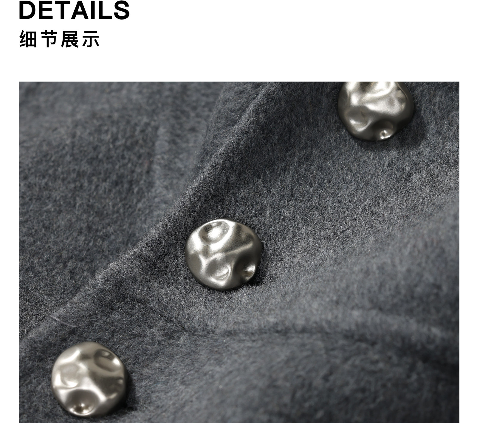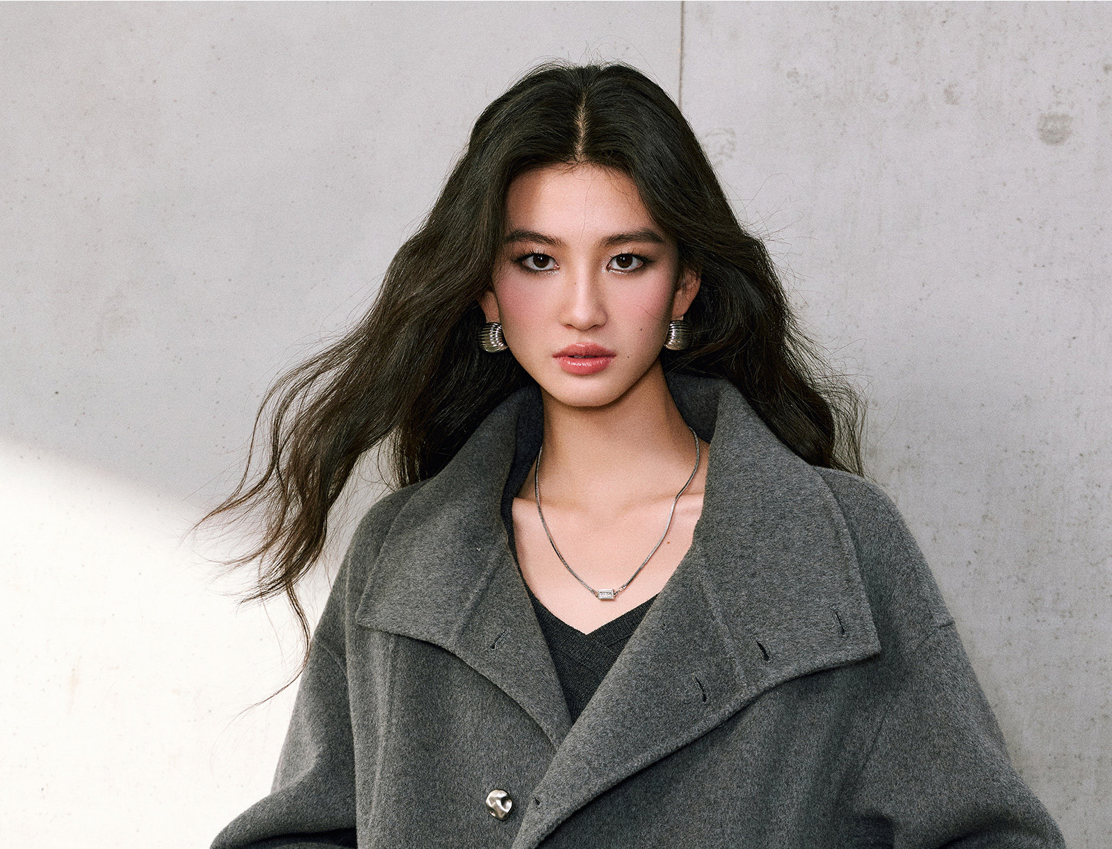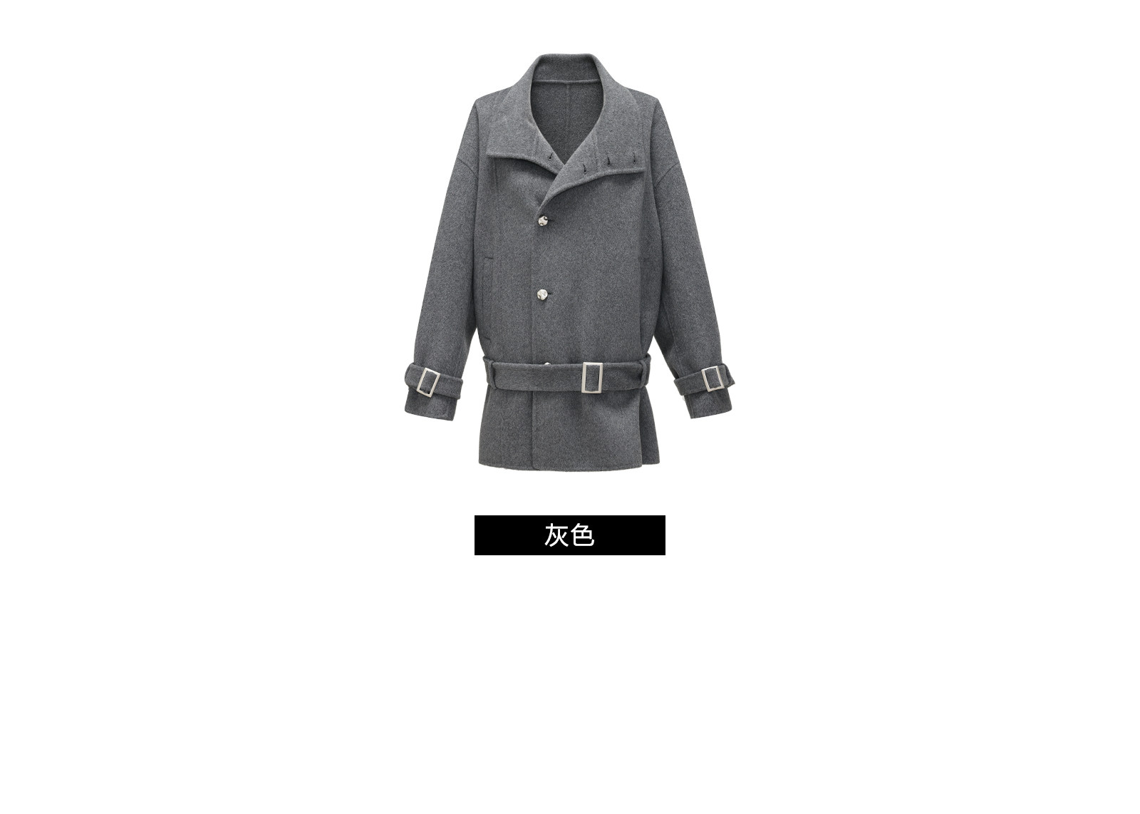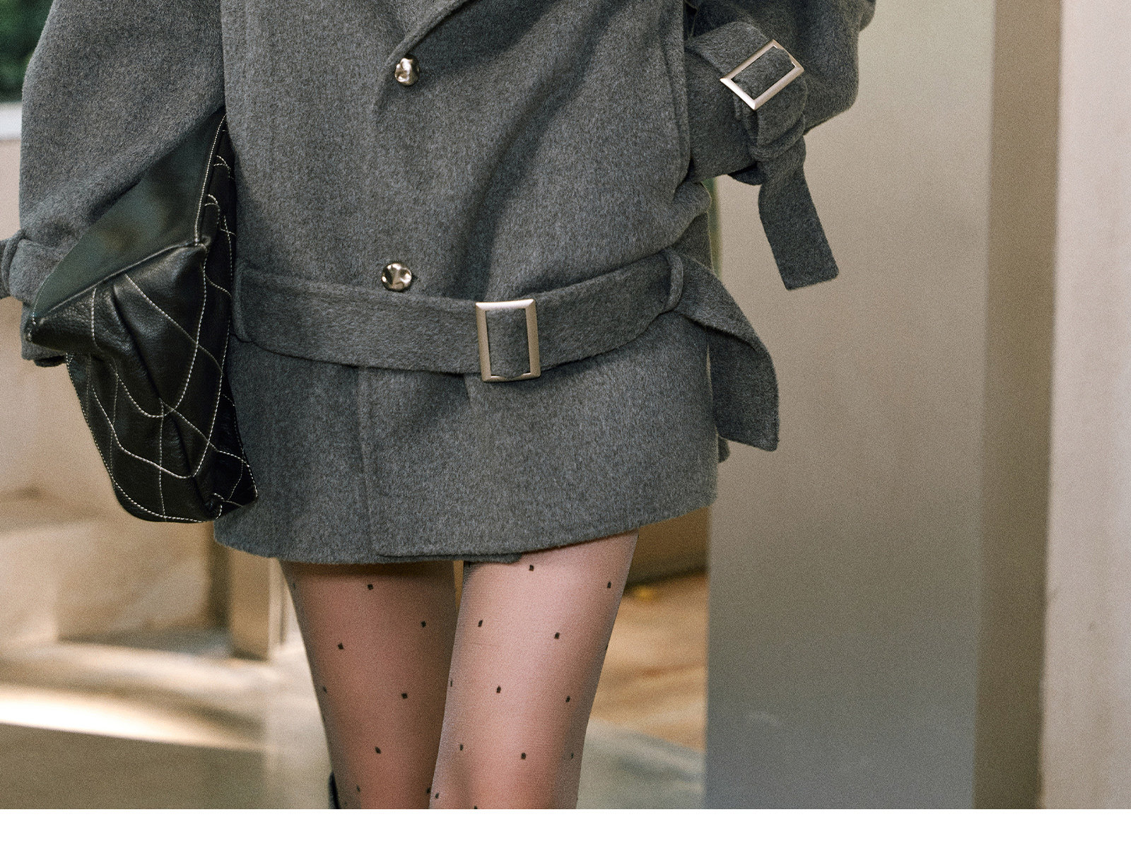 Wangxo|Custom-Spun Wool and Cashmere in the Perfect Golden Ratio|Gray Double-Sided Wool Coat with Large Lapel and Waist-Cinching Belt