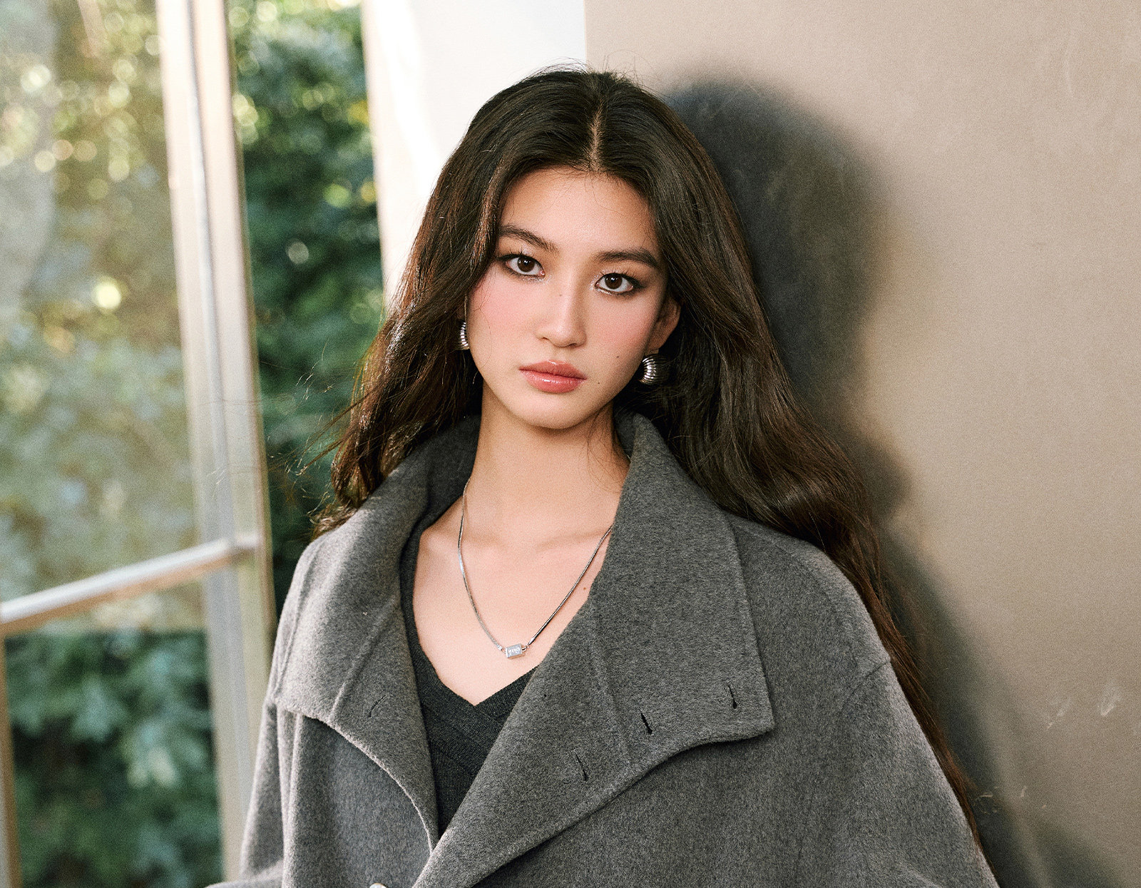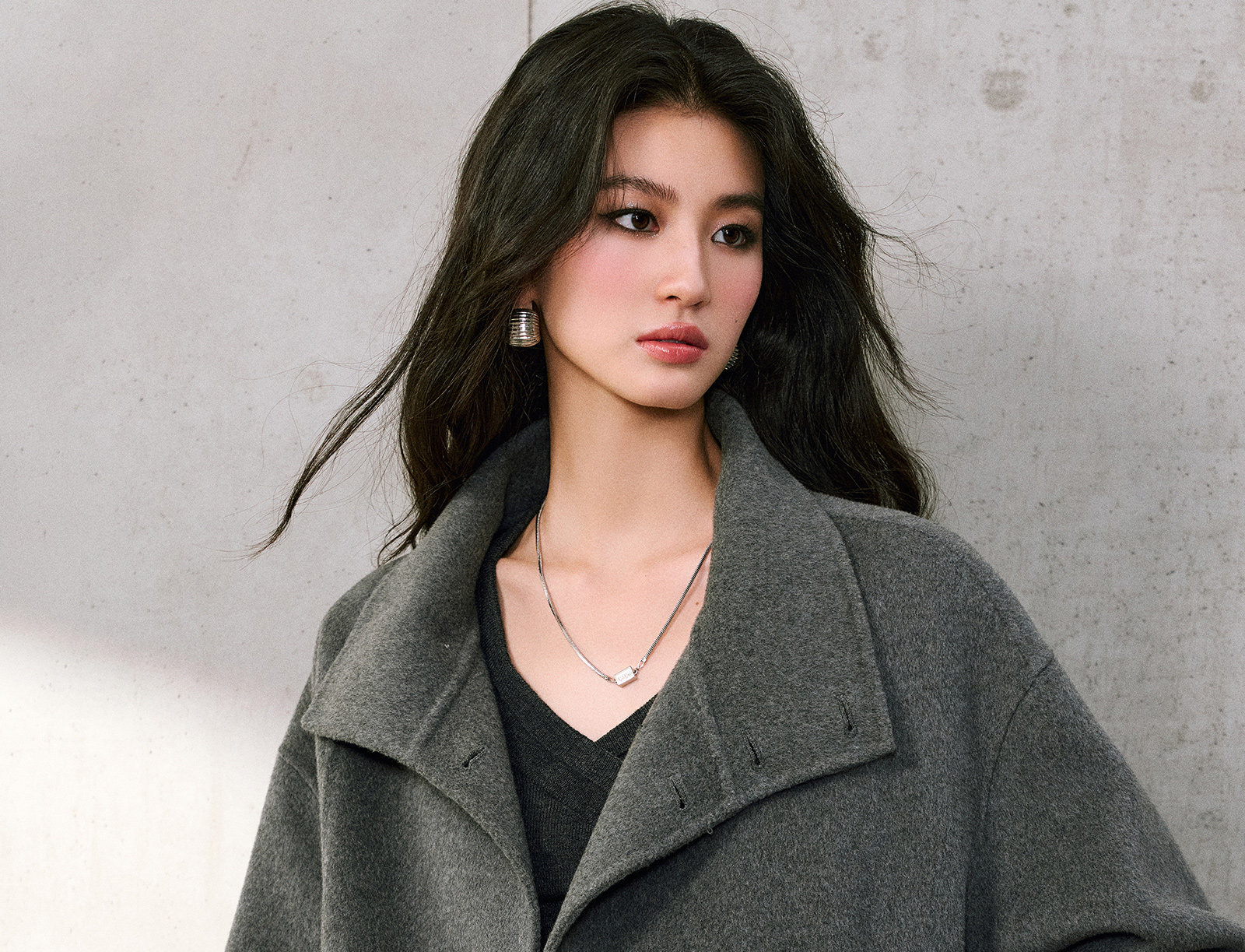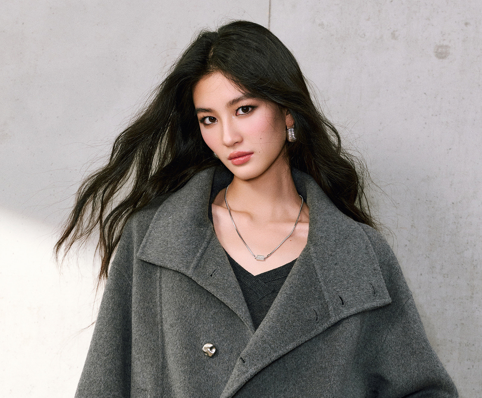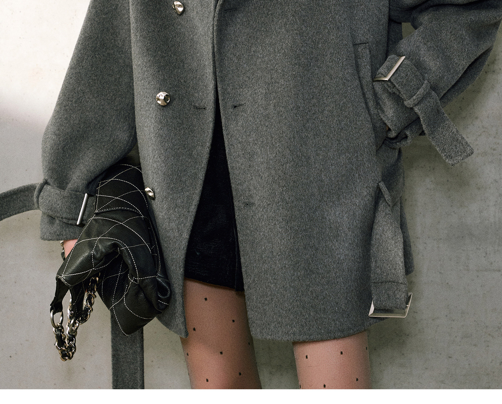 Wangxo|Custom-Spun Wool and Cashmere in the Perfect Golden Ratio|Gray Double-Sided Wool Coat with Large Lapel and Waist-Cinching Belt