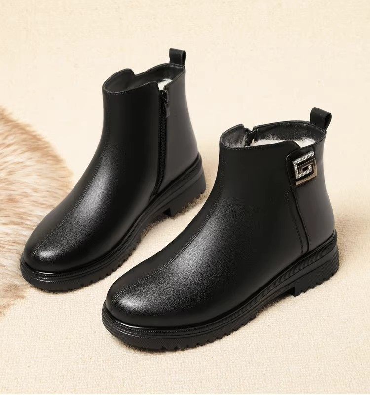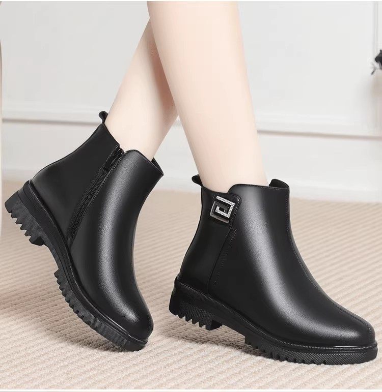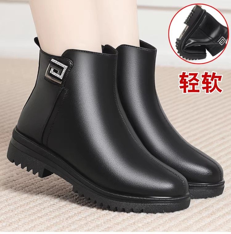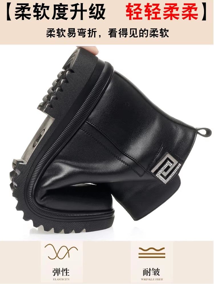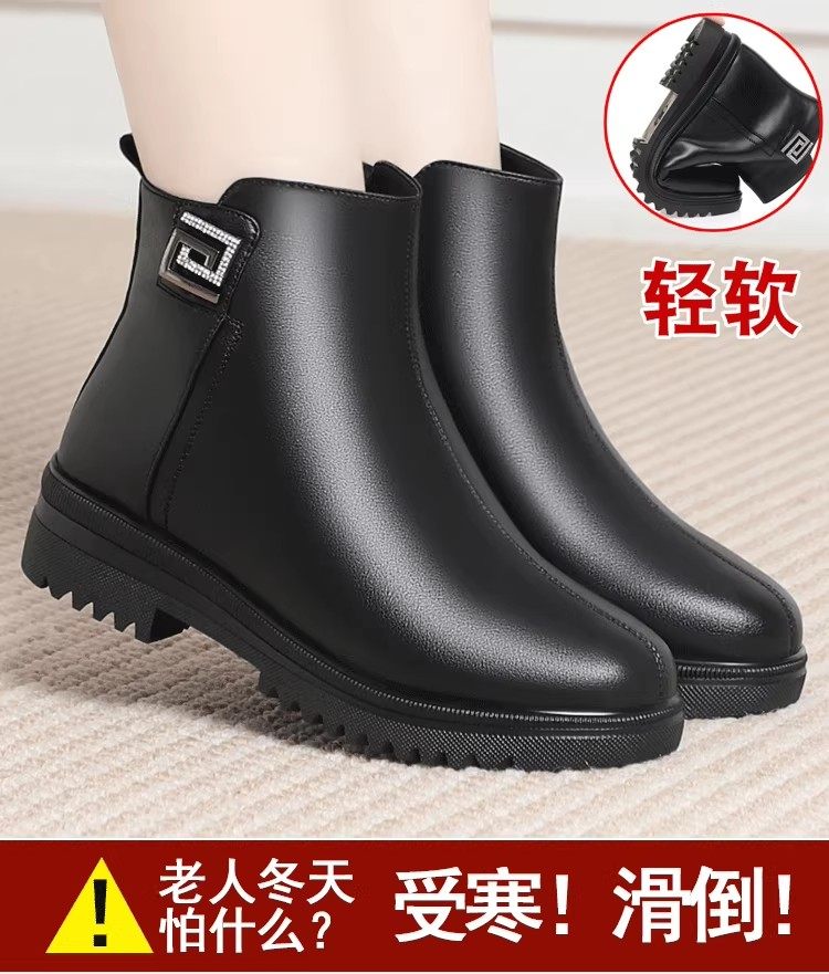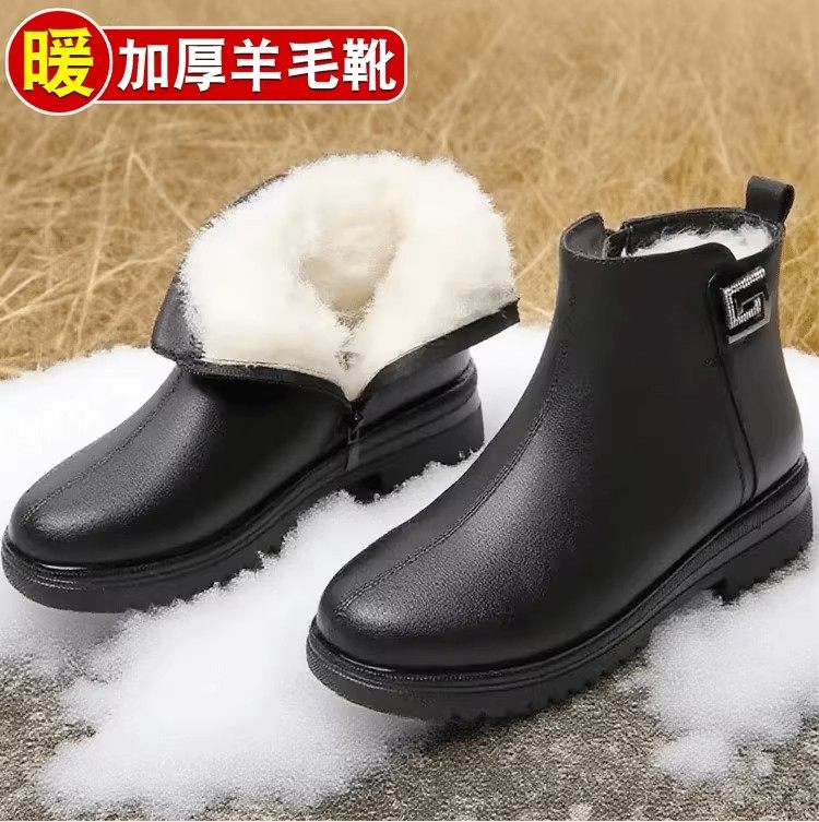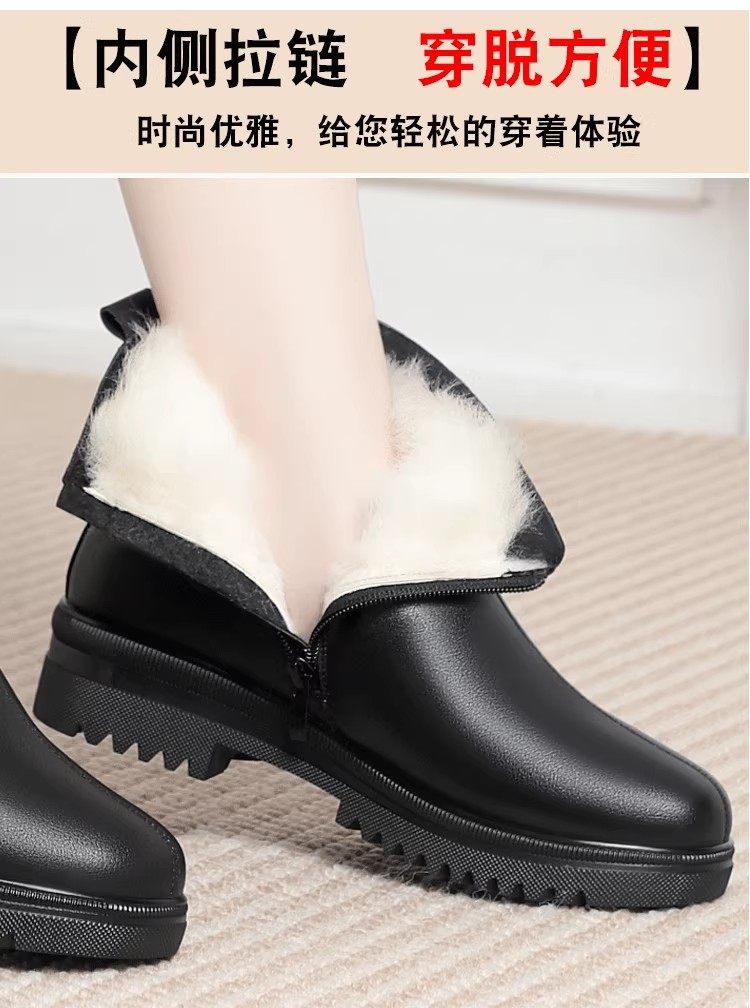 真皮妈妈棉鞋女冬季加绒靴子中老年女鞋软底防滑羊毛皮鞋女士短靴