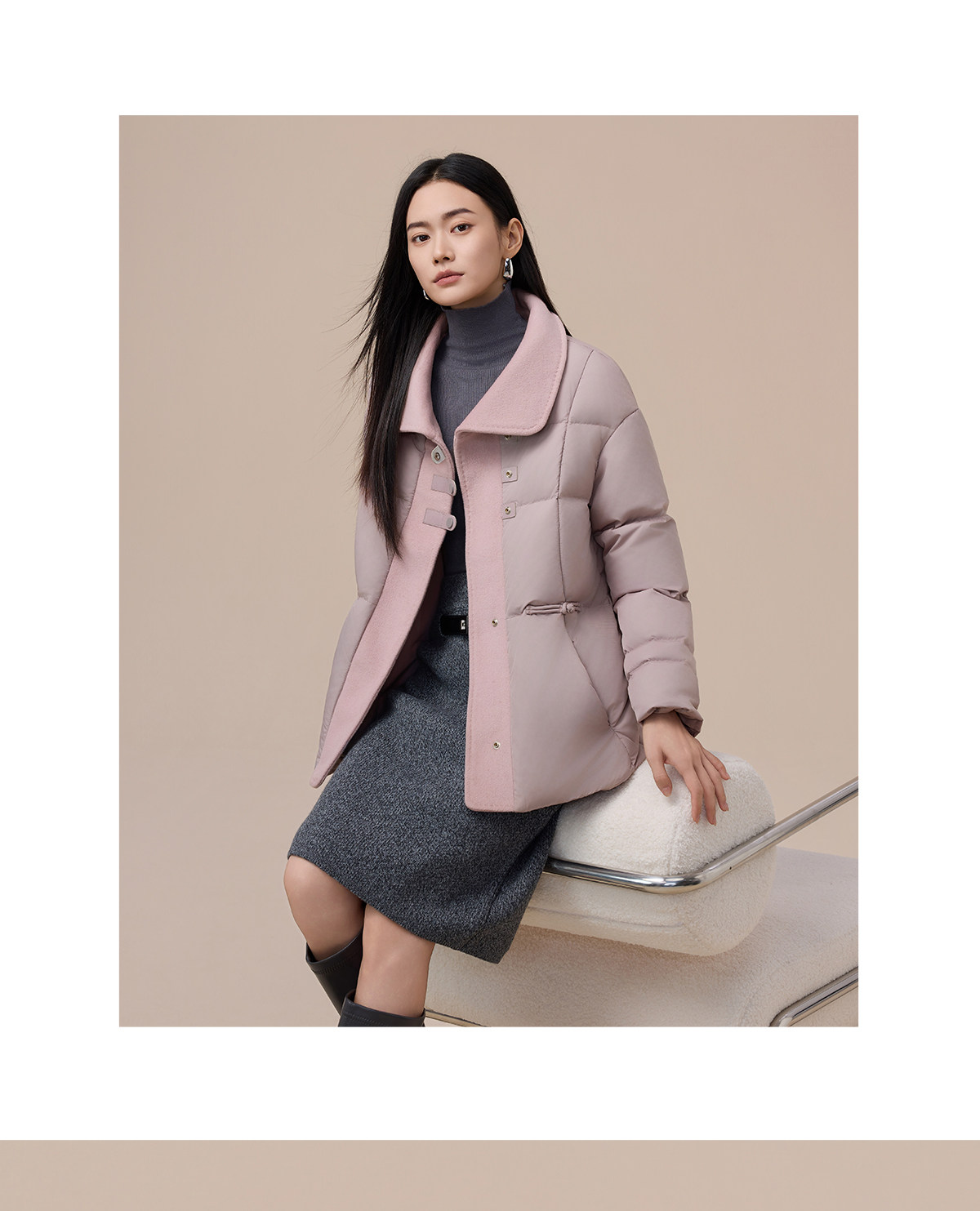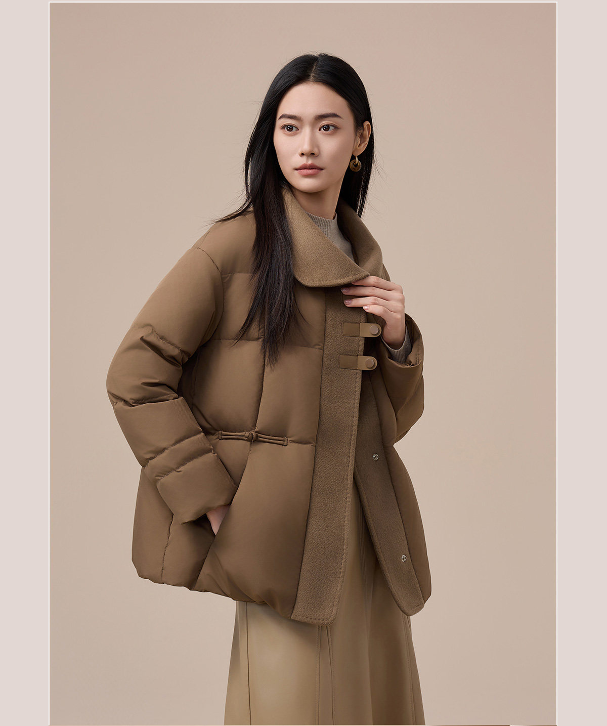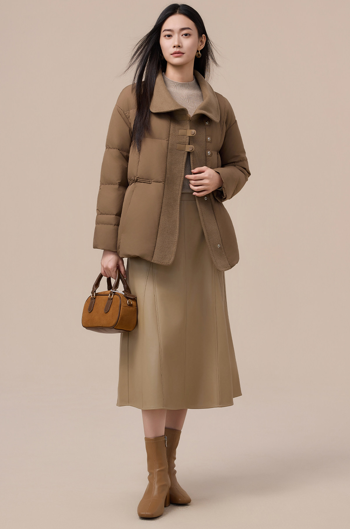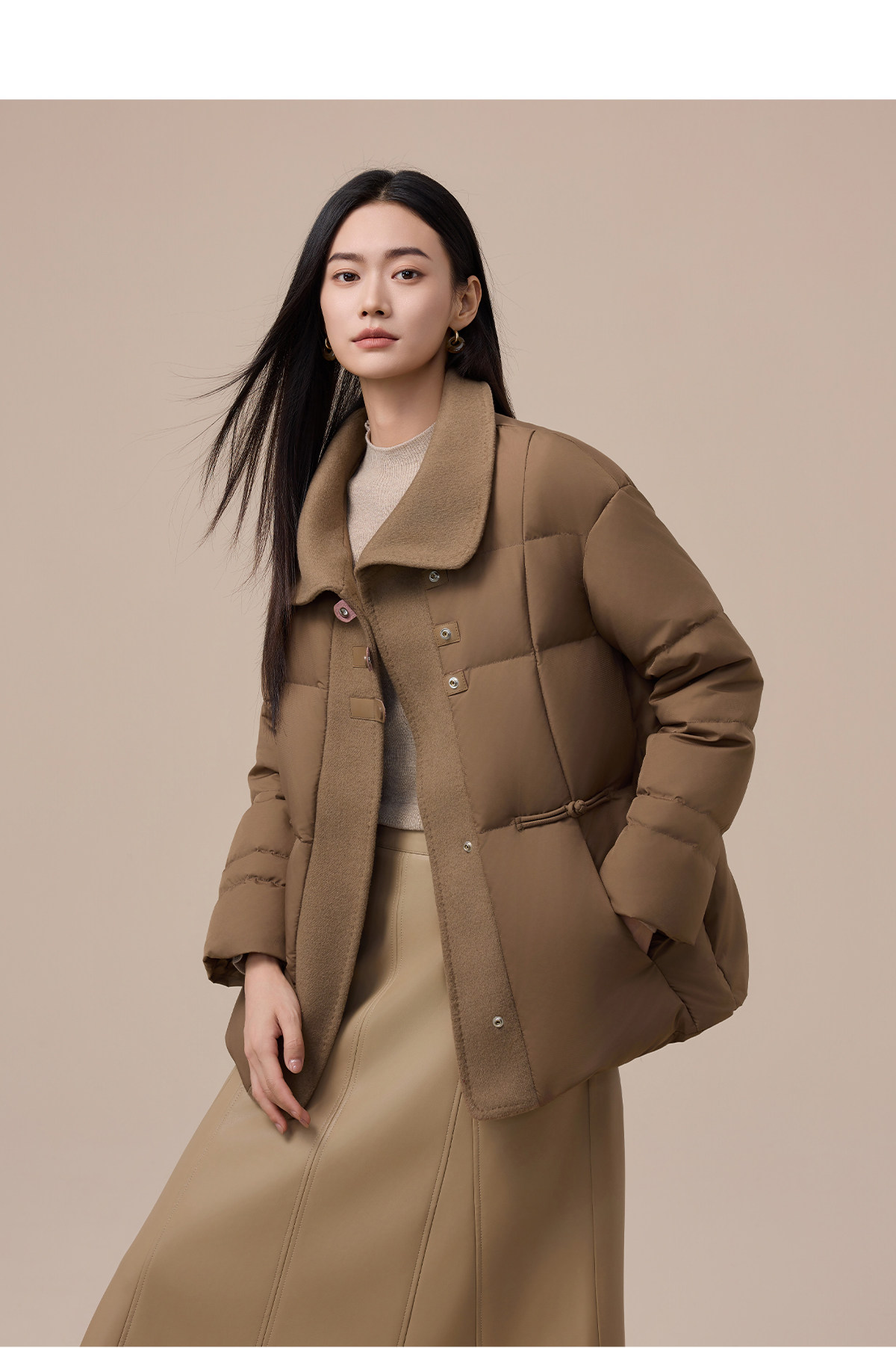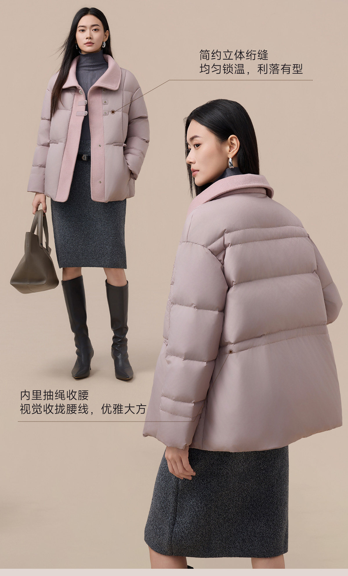 Yalu Short Down Jacket Women's 2025 Winter New Style Small Waist Slimming Spliced Wool Warm Jacket