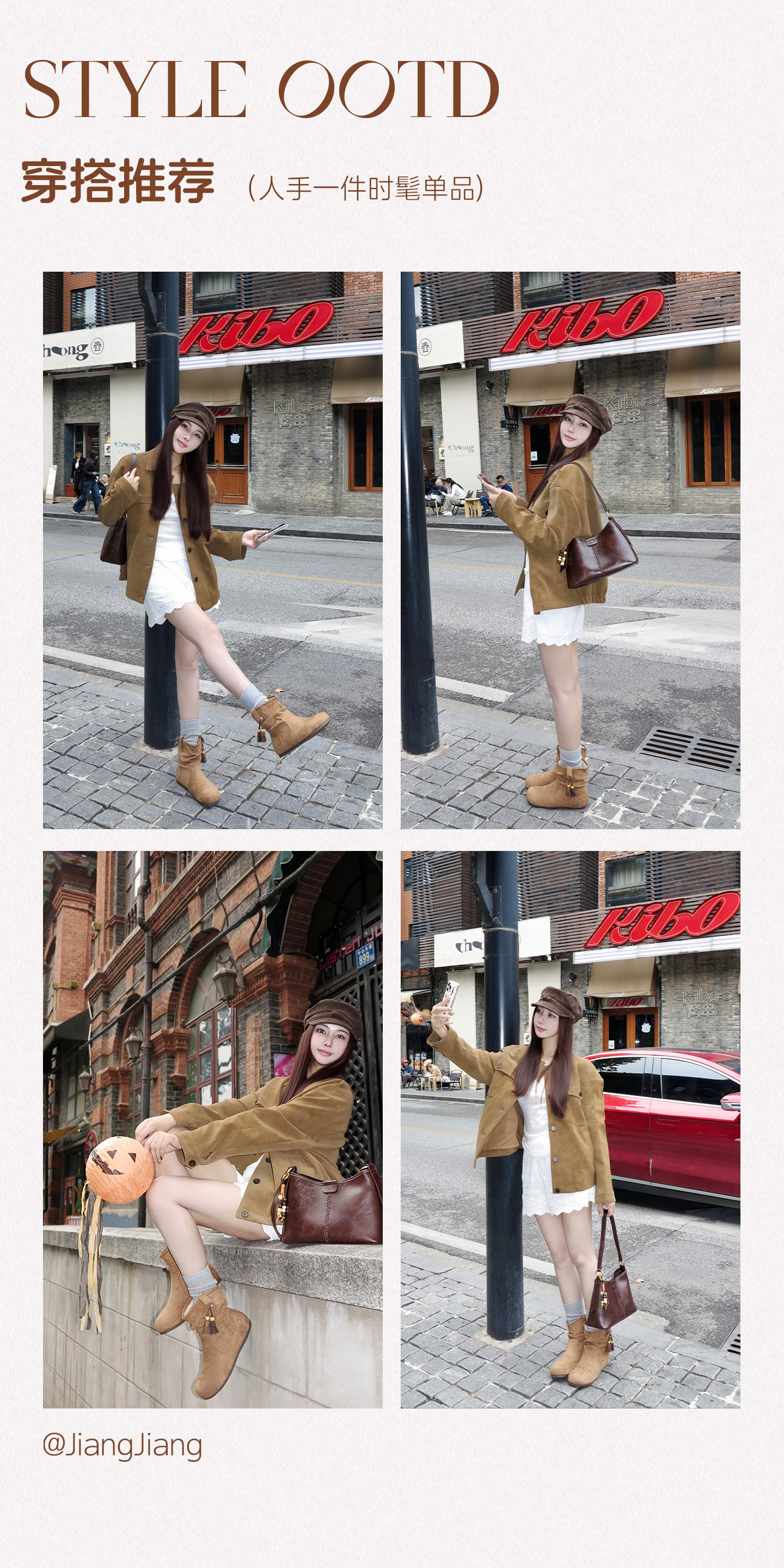 Zhuo Shini Dui Dui Shoes Otoño e Invierno 2025 Botas Cortas pequeñas súper Calientes Botas Retro Birkenstock con Botas de Caballero de Estilo británico aumentadas