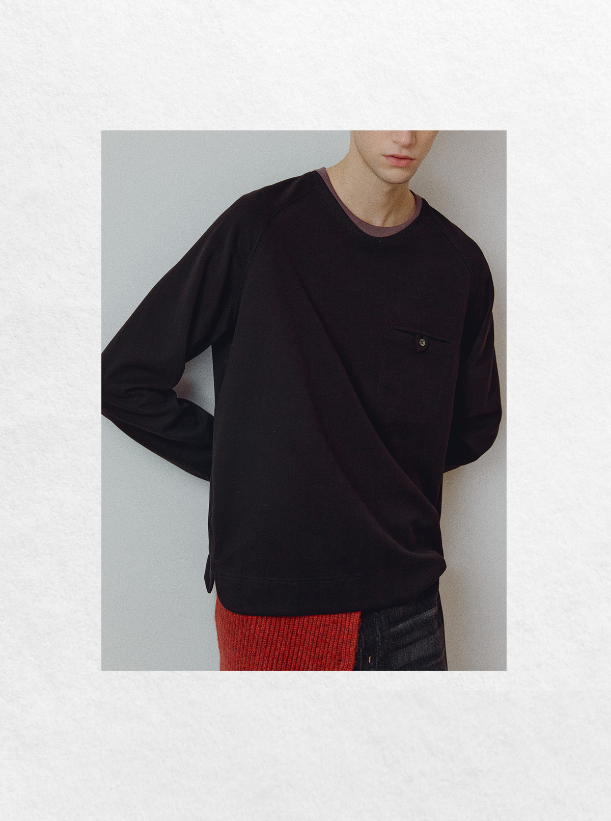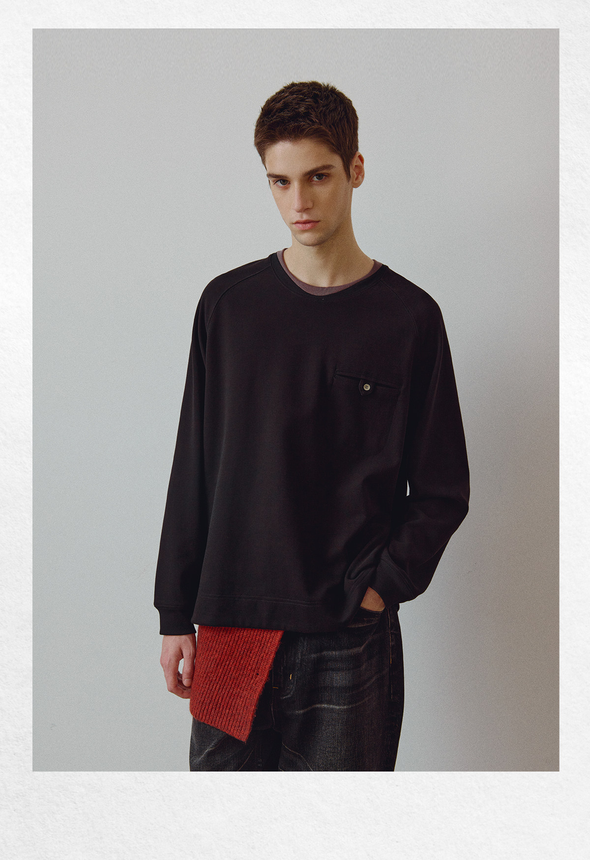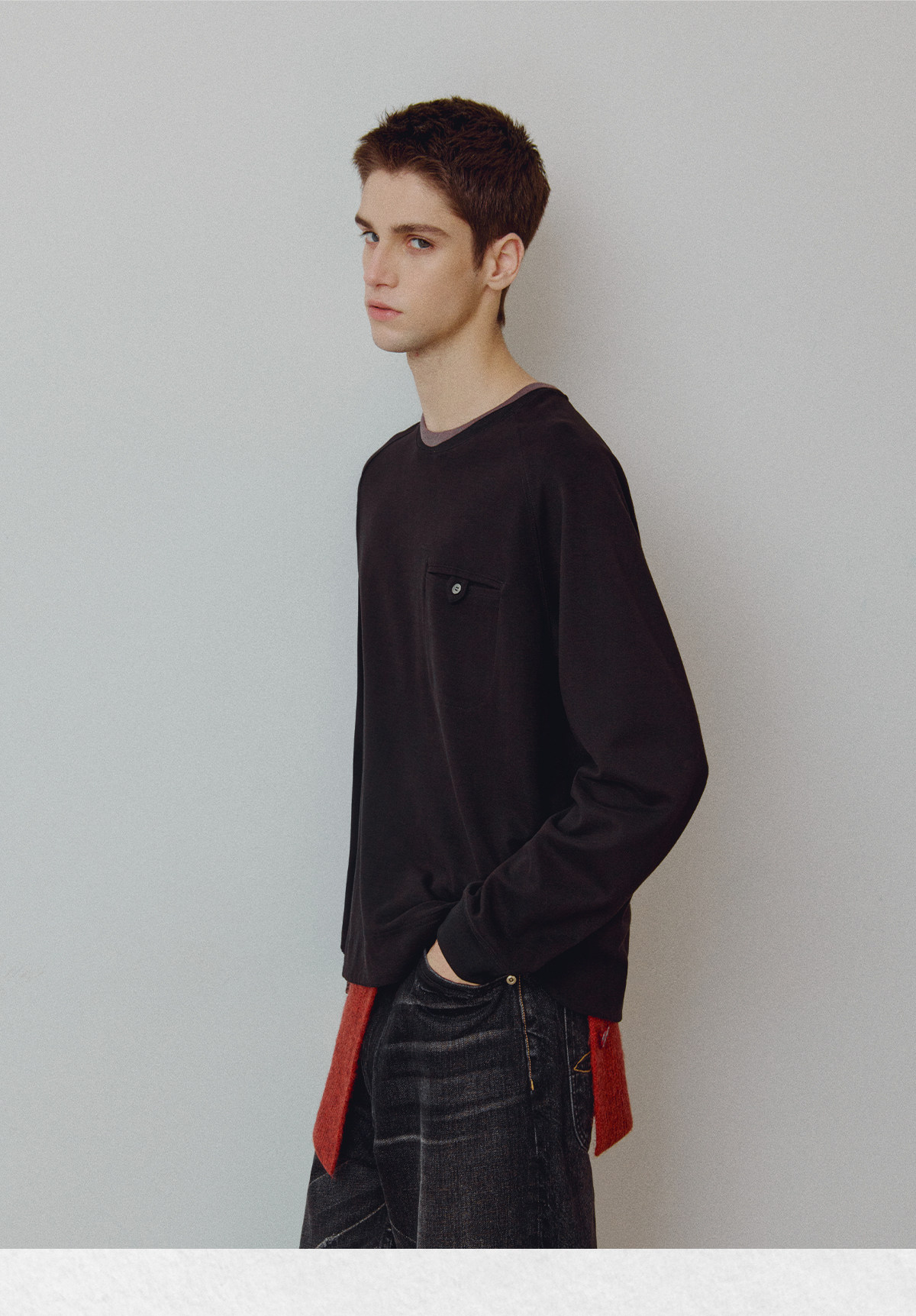 714street高端线 BEHALF 混纺锦棉波纹领贝壳扣 弧形下摆口袋长袖