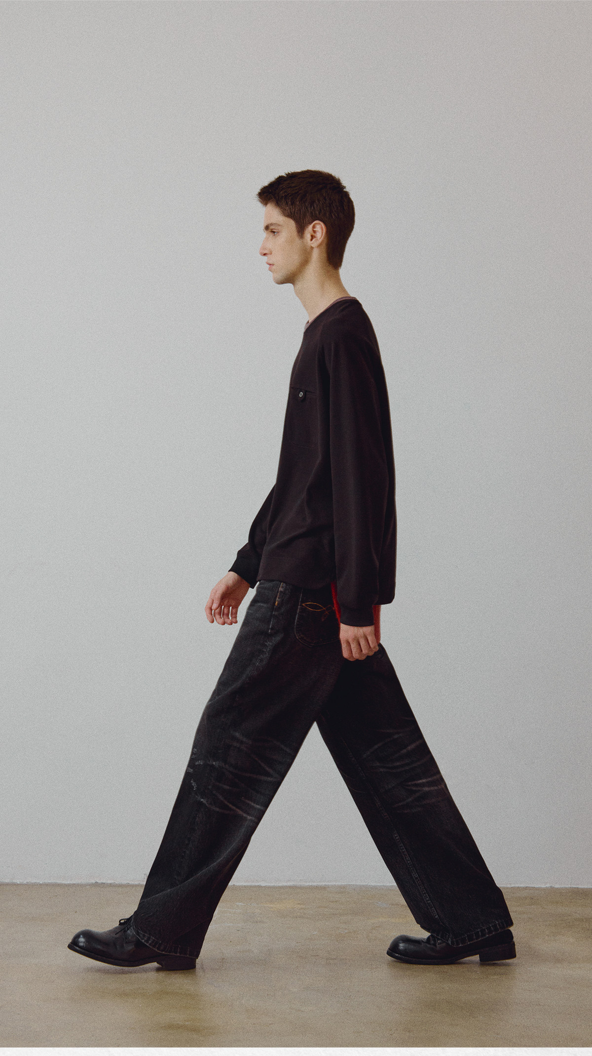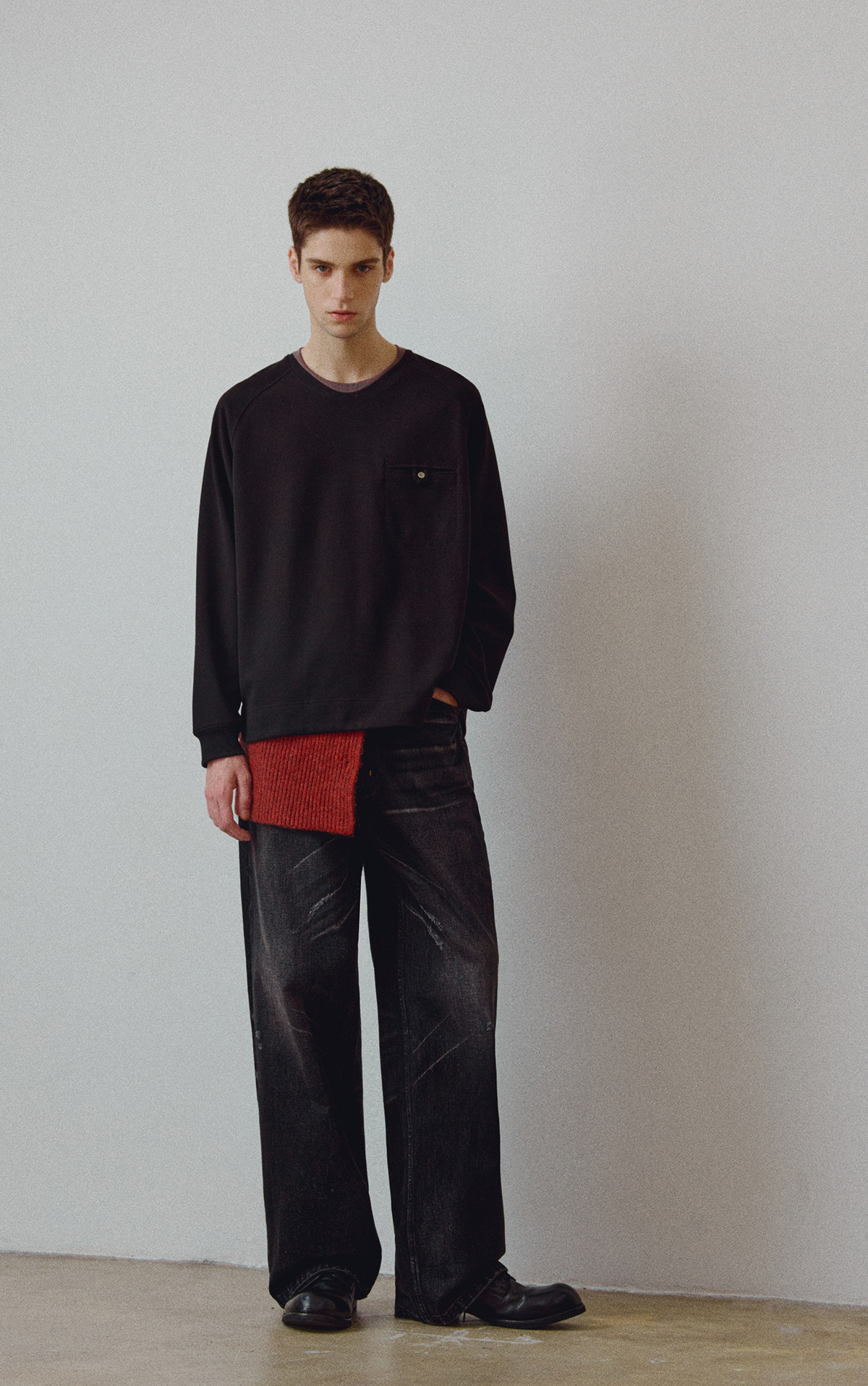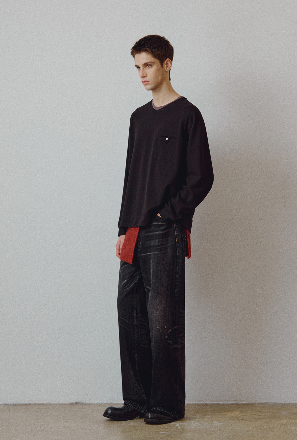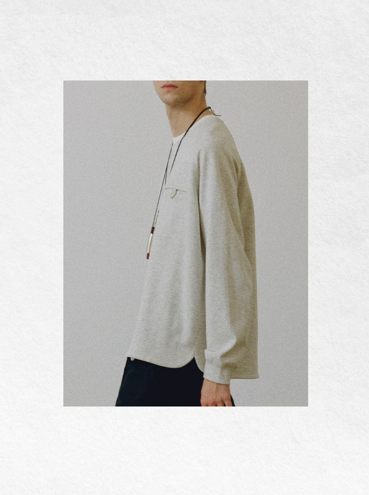 714street高端线 BEHALF 混纺锦棉波纹领贝壳扣 弧形下摆口袋长袖