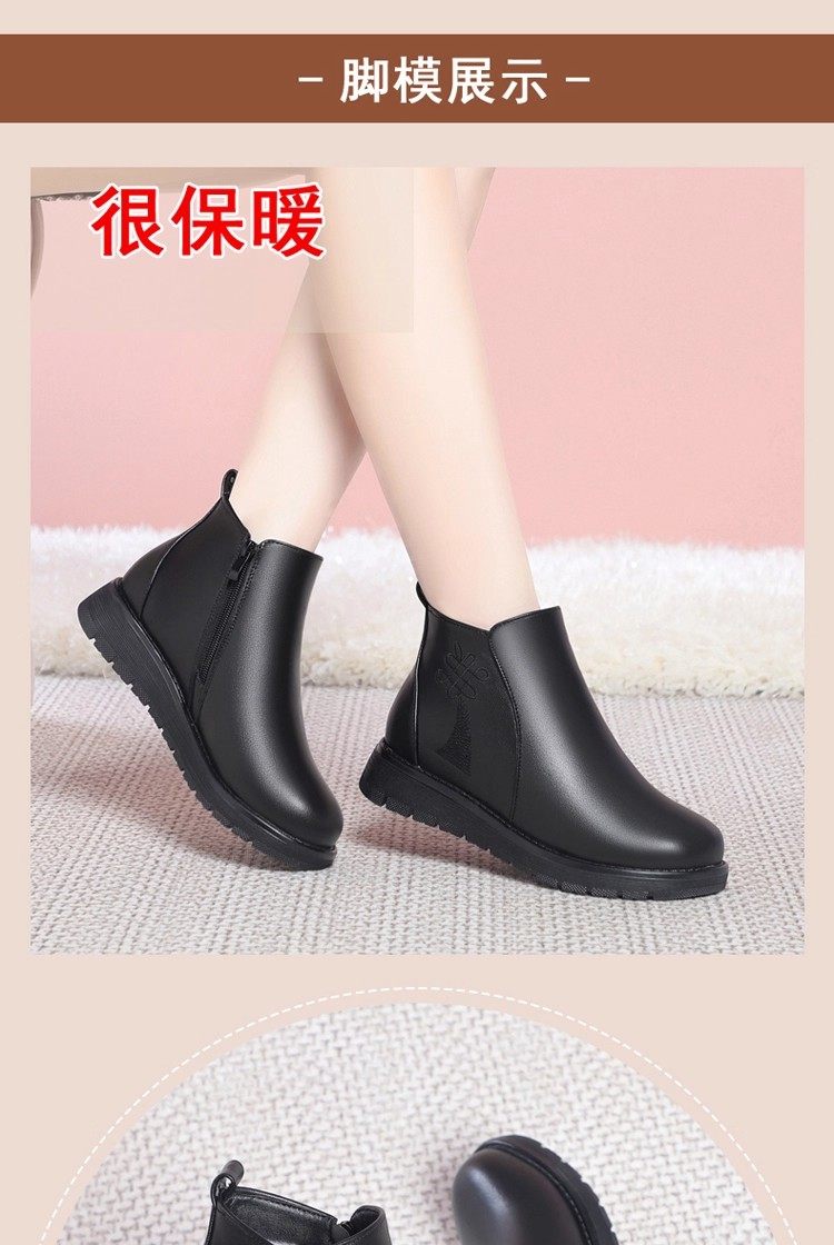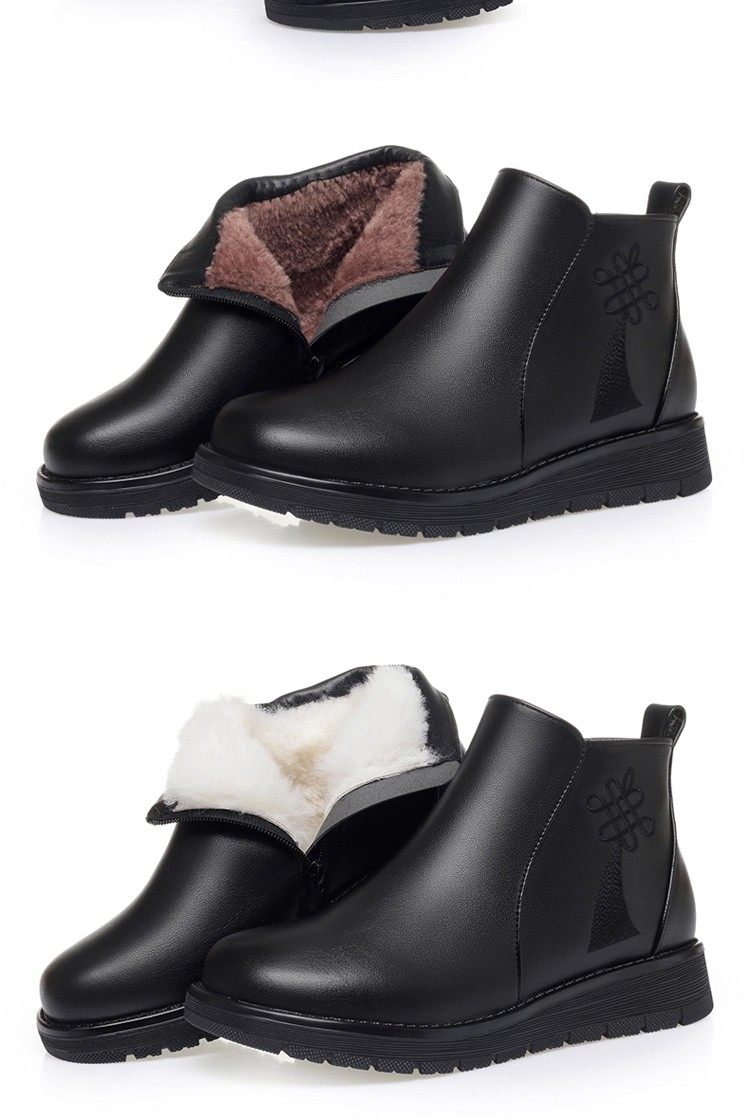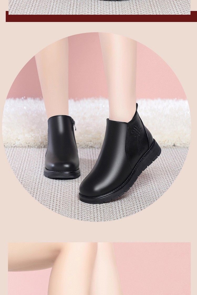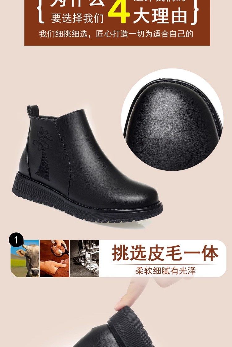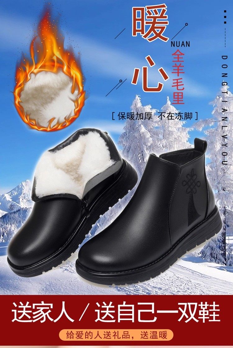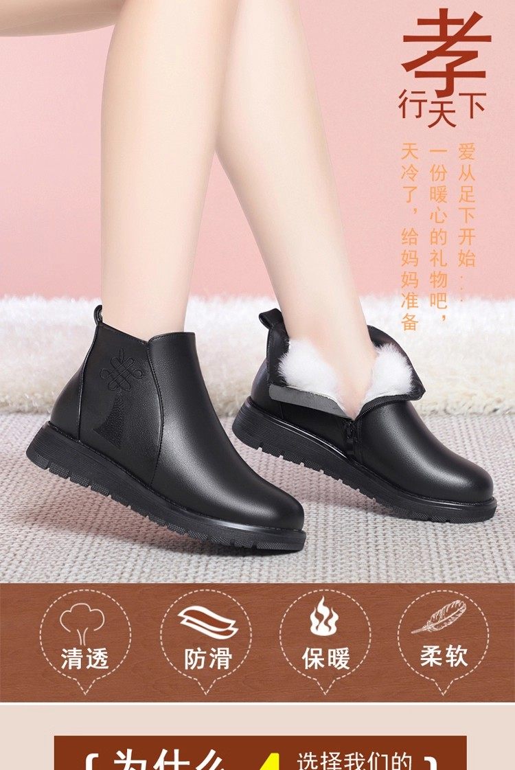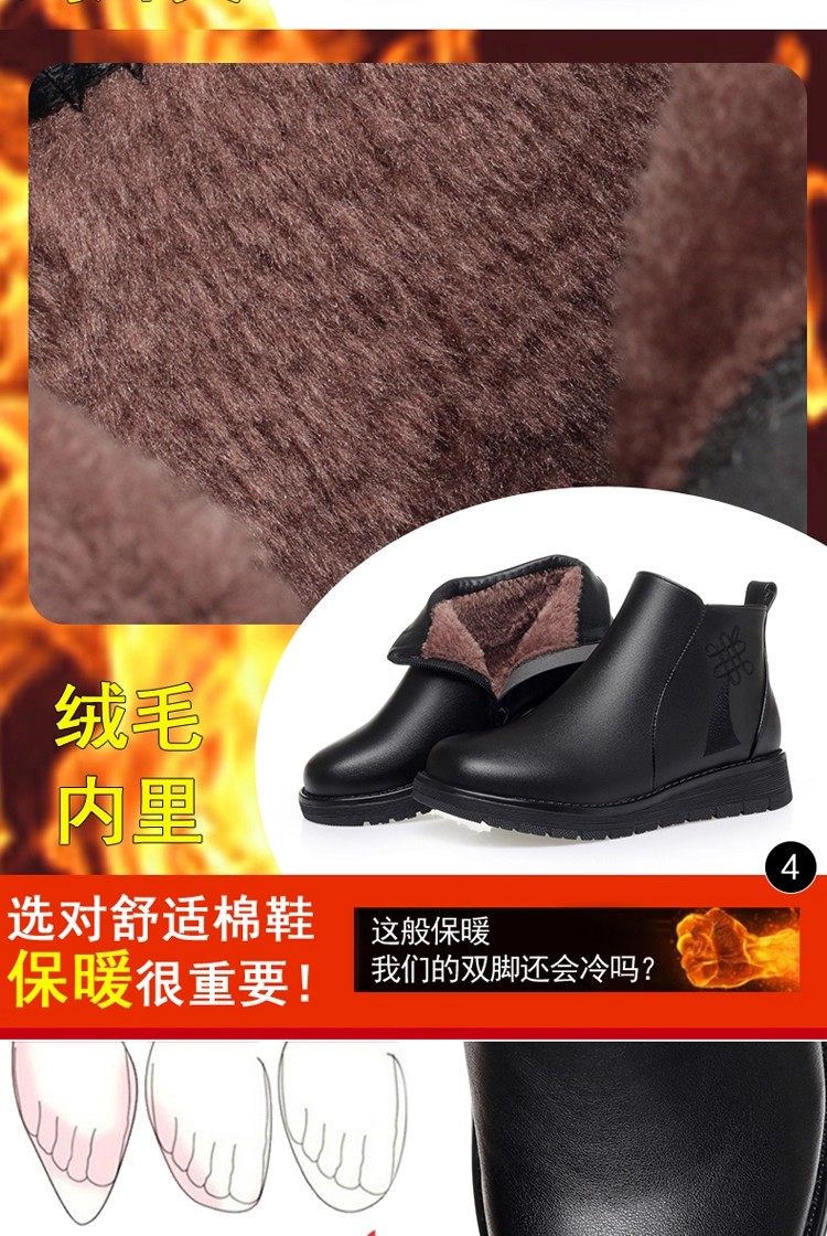 真皮妈妈棉鞋冬季加绒保暖中老年棉鞋加厚羊毛短靴女平底防滑皮鞋