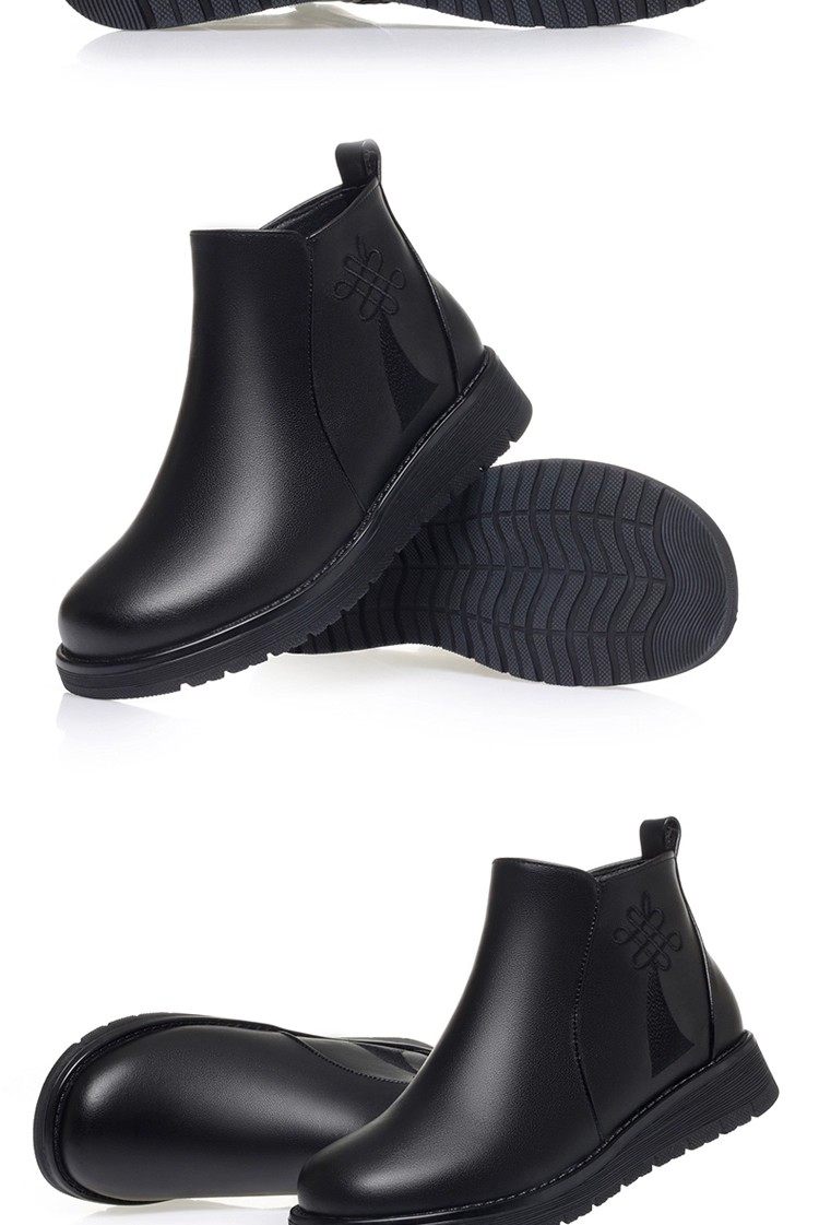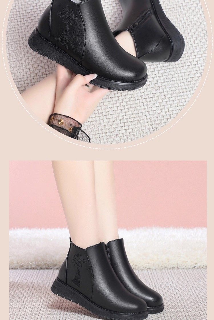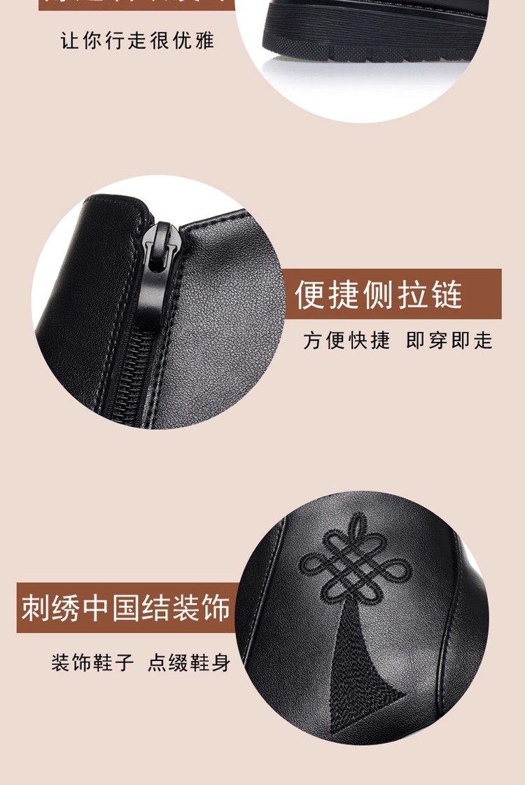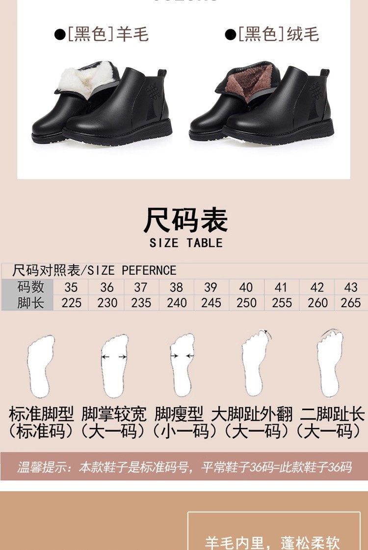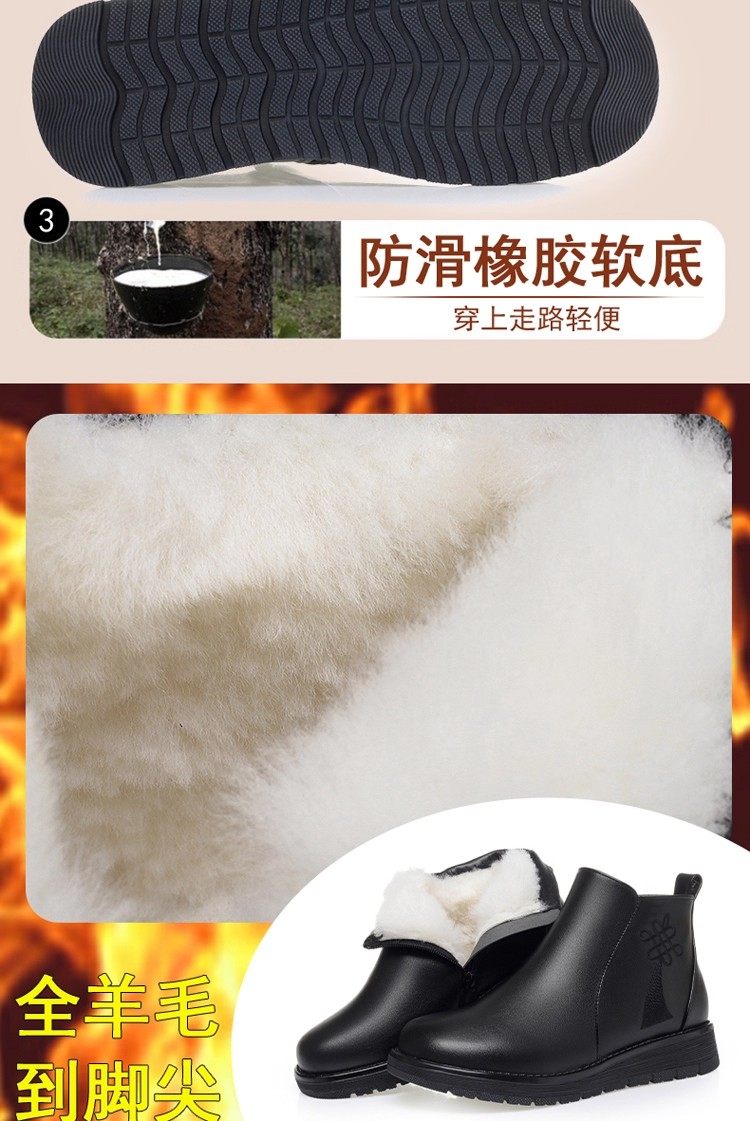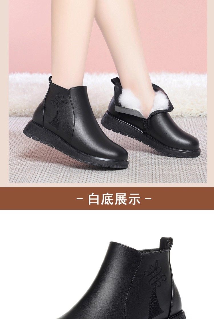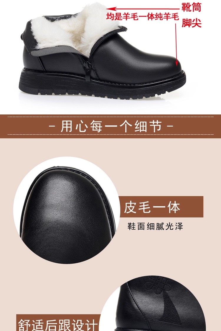 真皮妈妈棉鞋冬季加绒保暖中老年棉鞋加厚羊毛短靴女平底防滑皮鞋