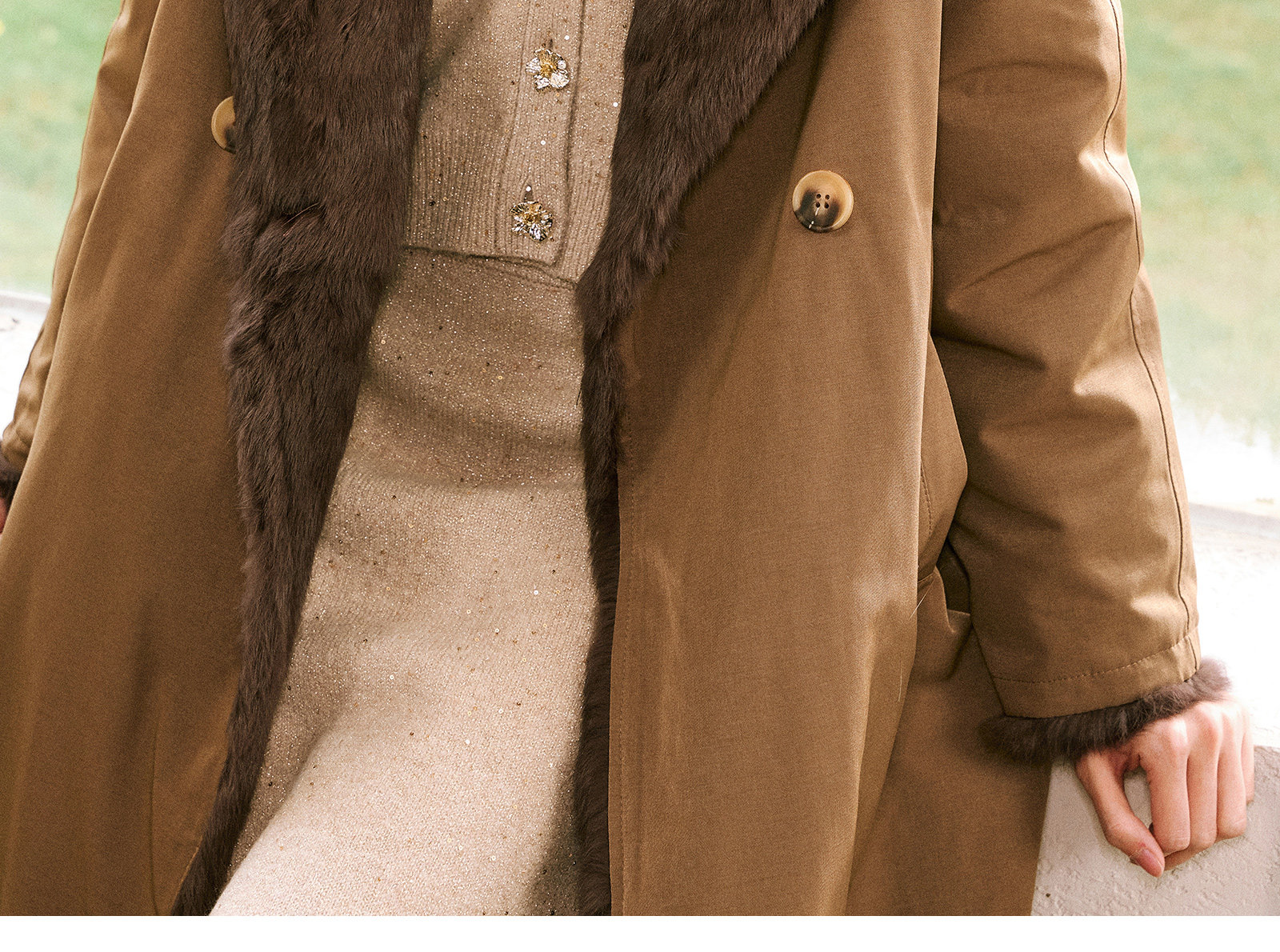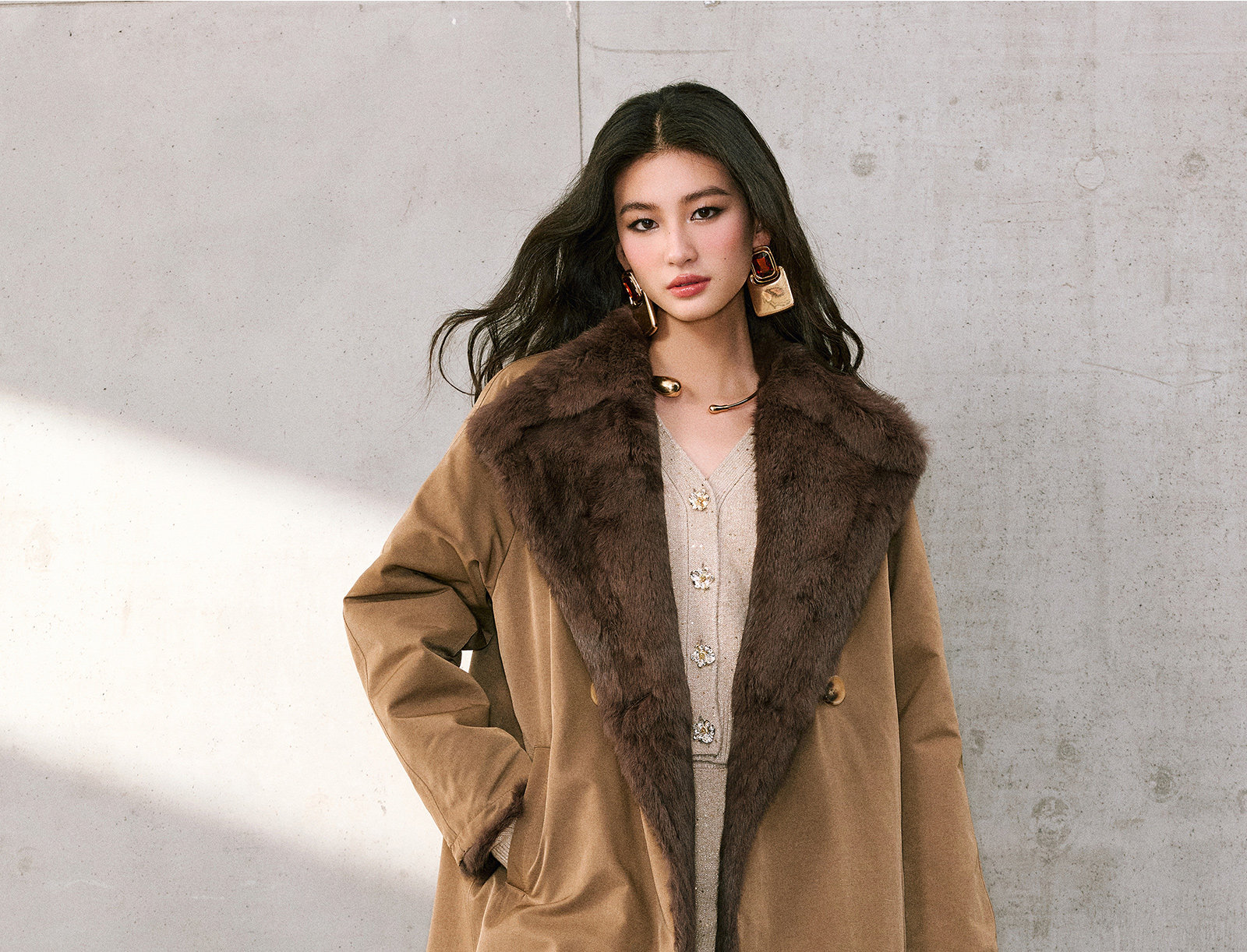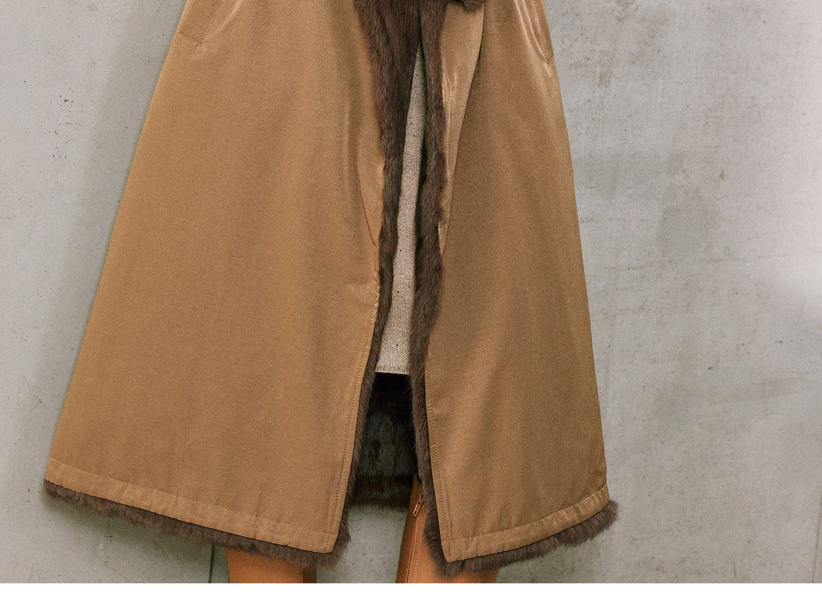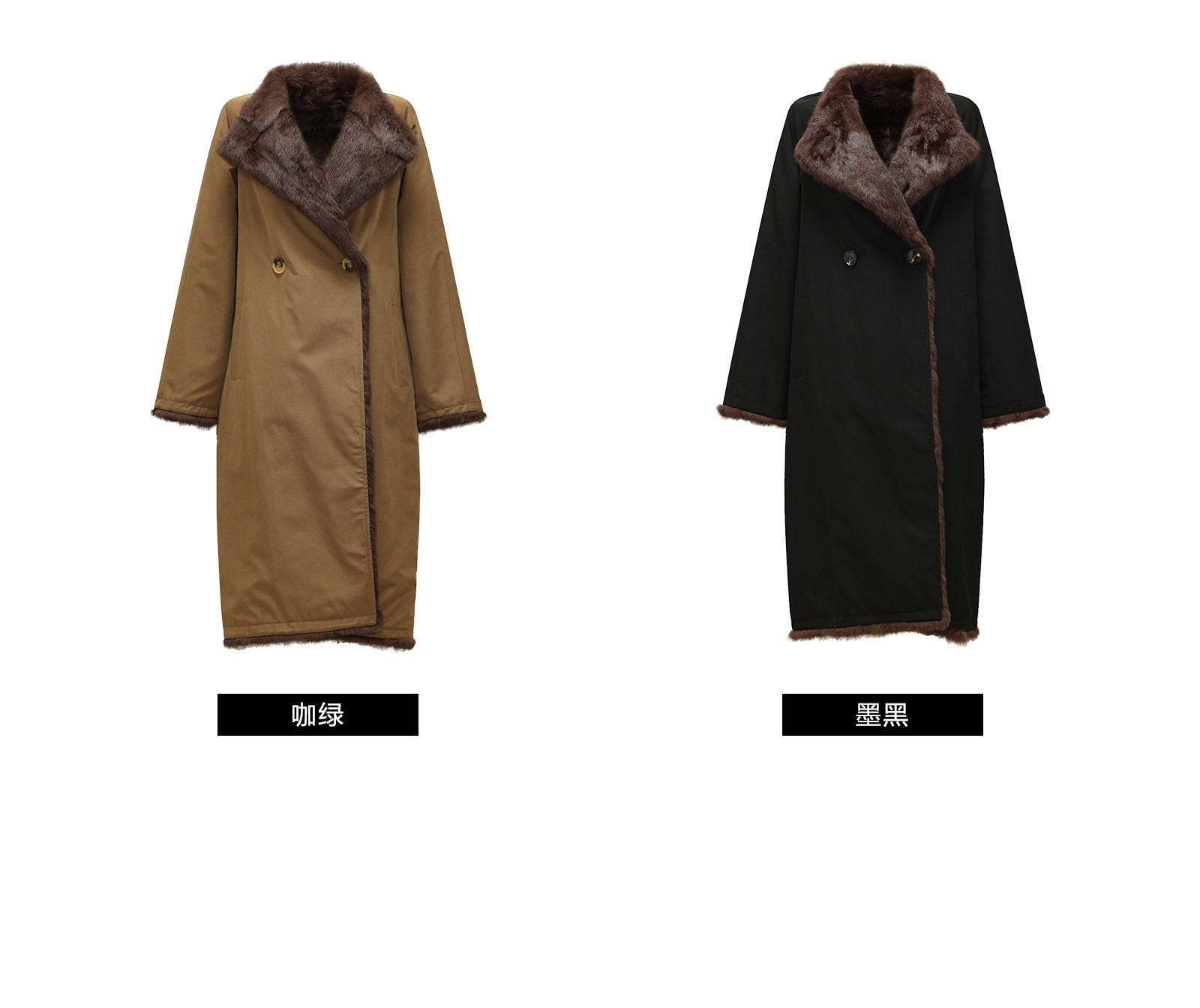 Wangxo|Heavyweight Full-Length Rabbit Fur & Crisp Cotton Material|Reversible Large Lapel Long Fur Coat