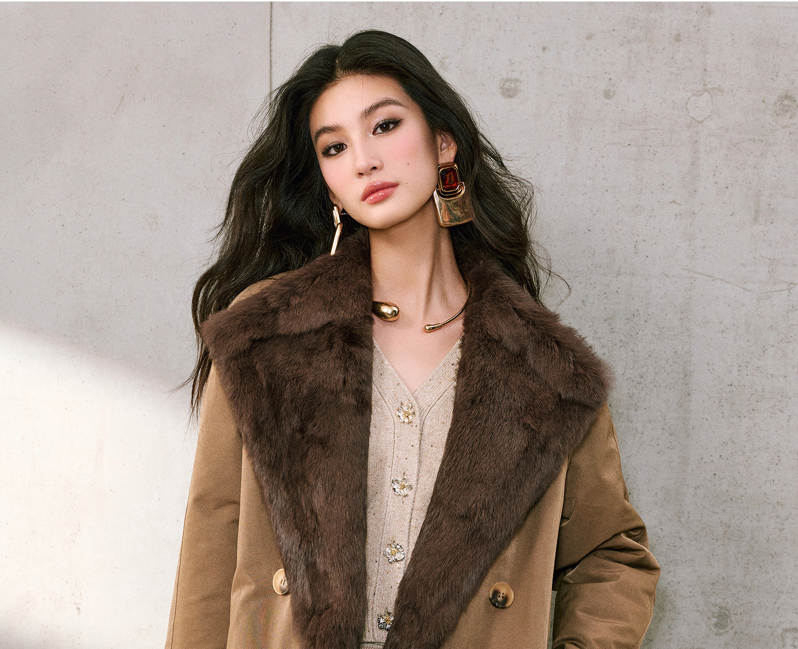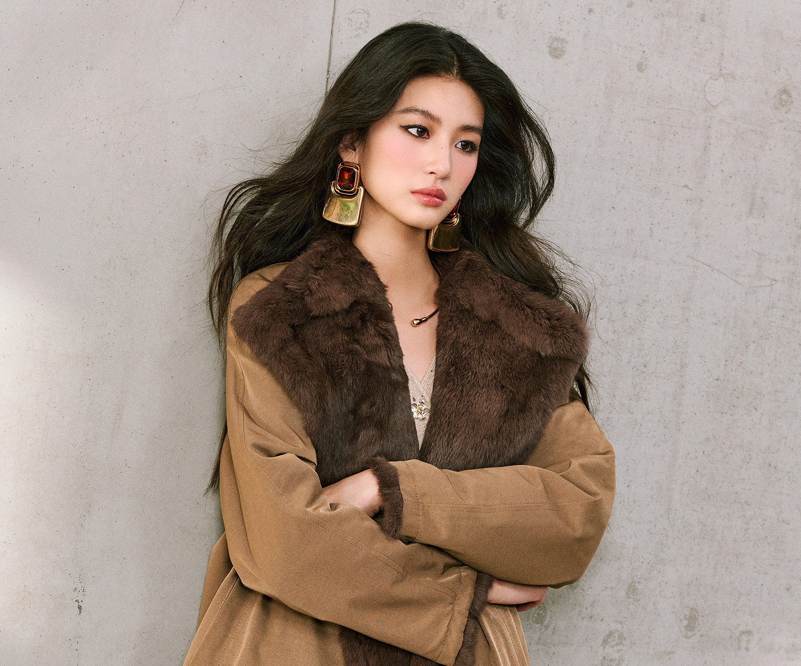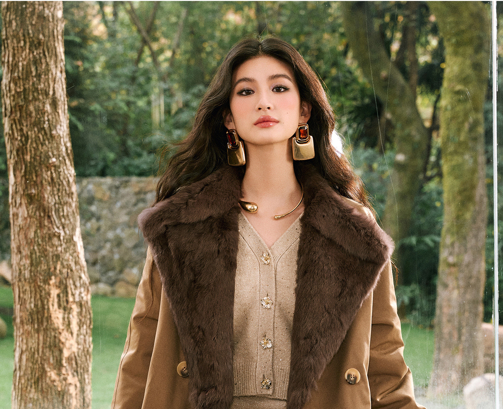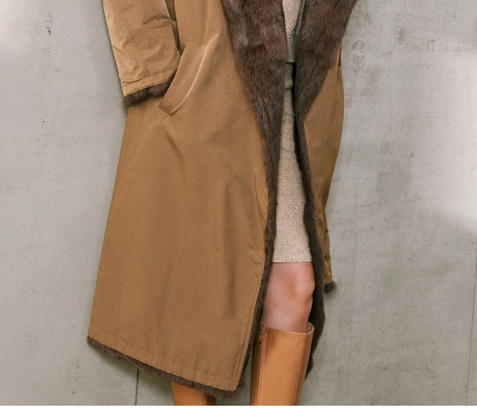 Wangxo|Heavyweight Full-Length Rabbit Fur & Crisp Cotton Material|Reversible Large Lapel Long Fur Coat