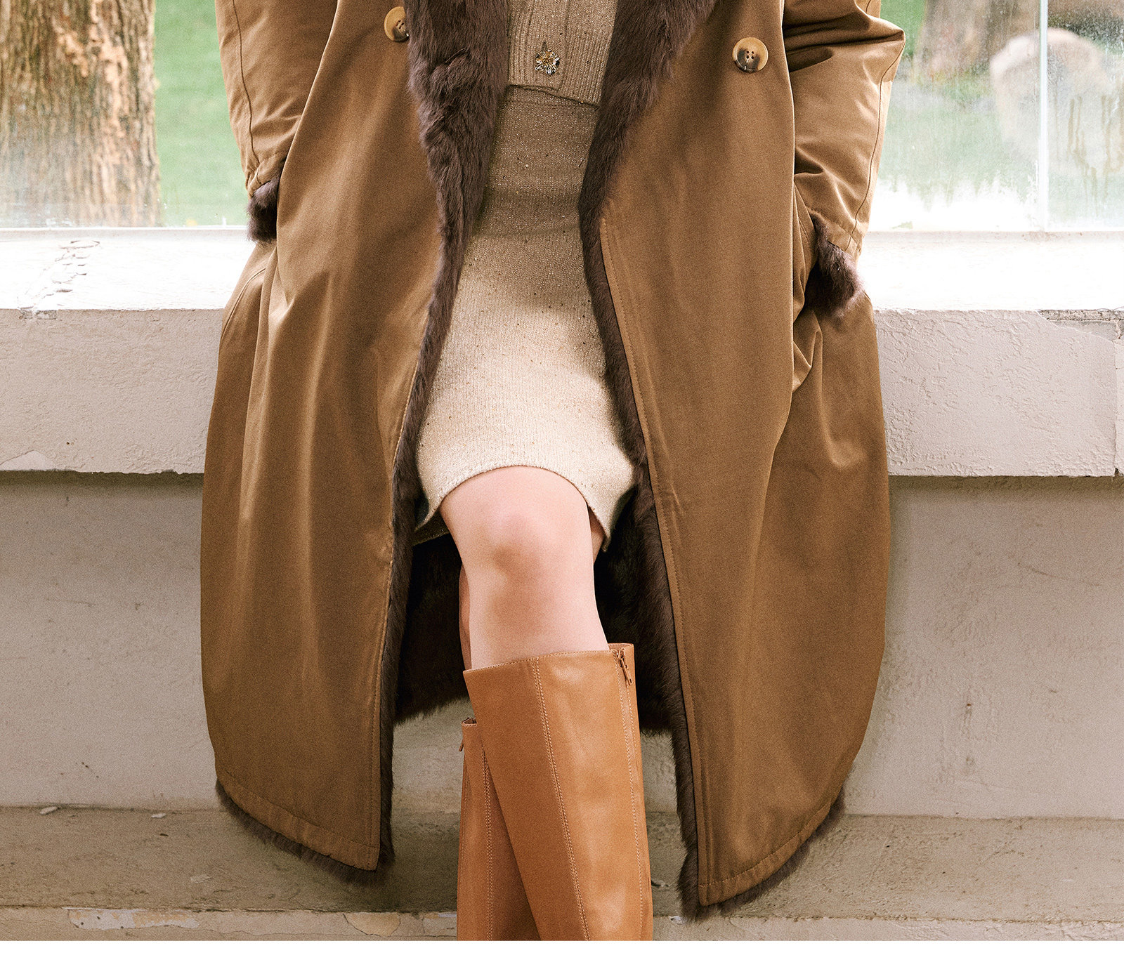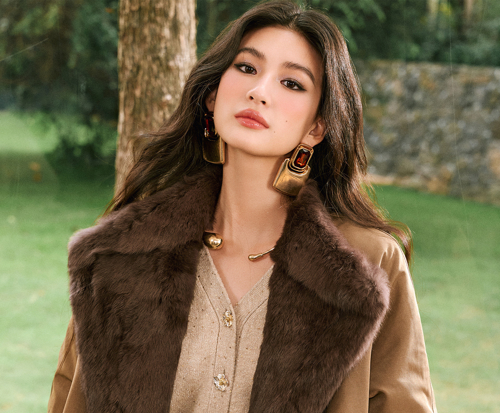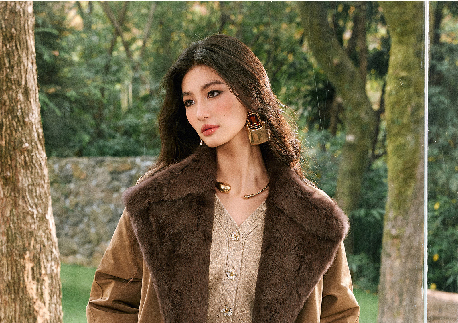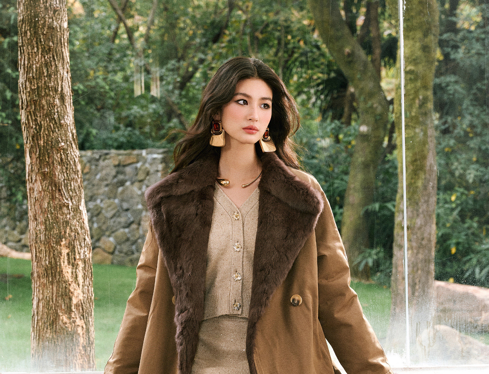 Wangxo|Heavyweight Full-Length Rabbit Fur & Crisp Cotton Material|Reversible Large Lapel Long Fur Coat