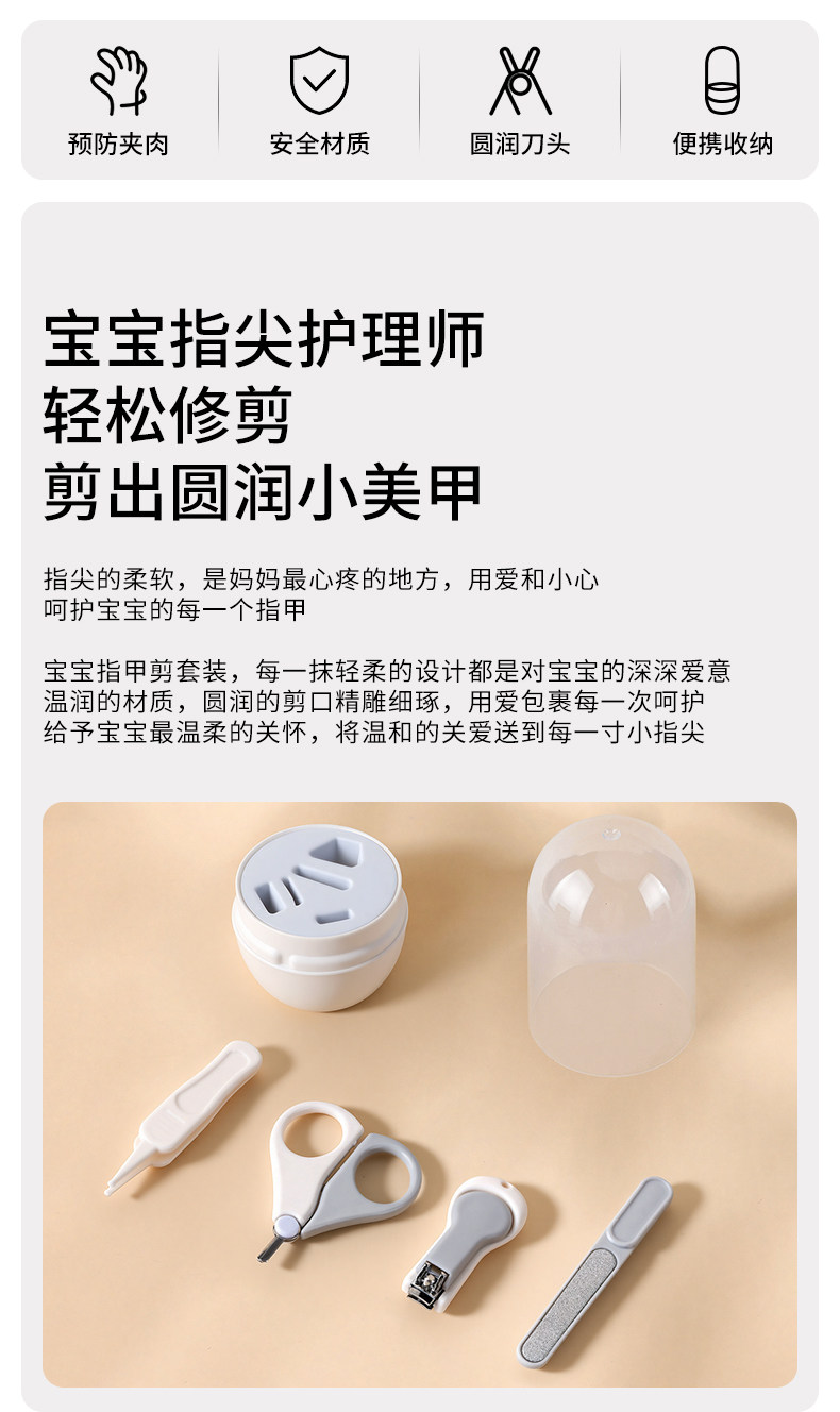 jubinala婴幼儿指甲剪套装新生专用宝宝指甲刀钳安全防夹肉婴儿童