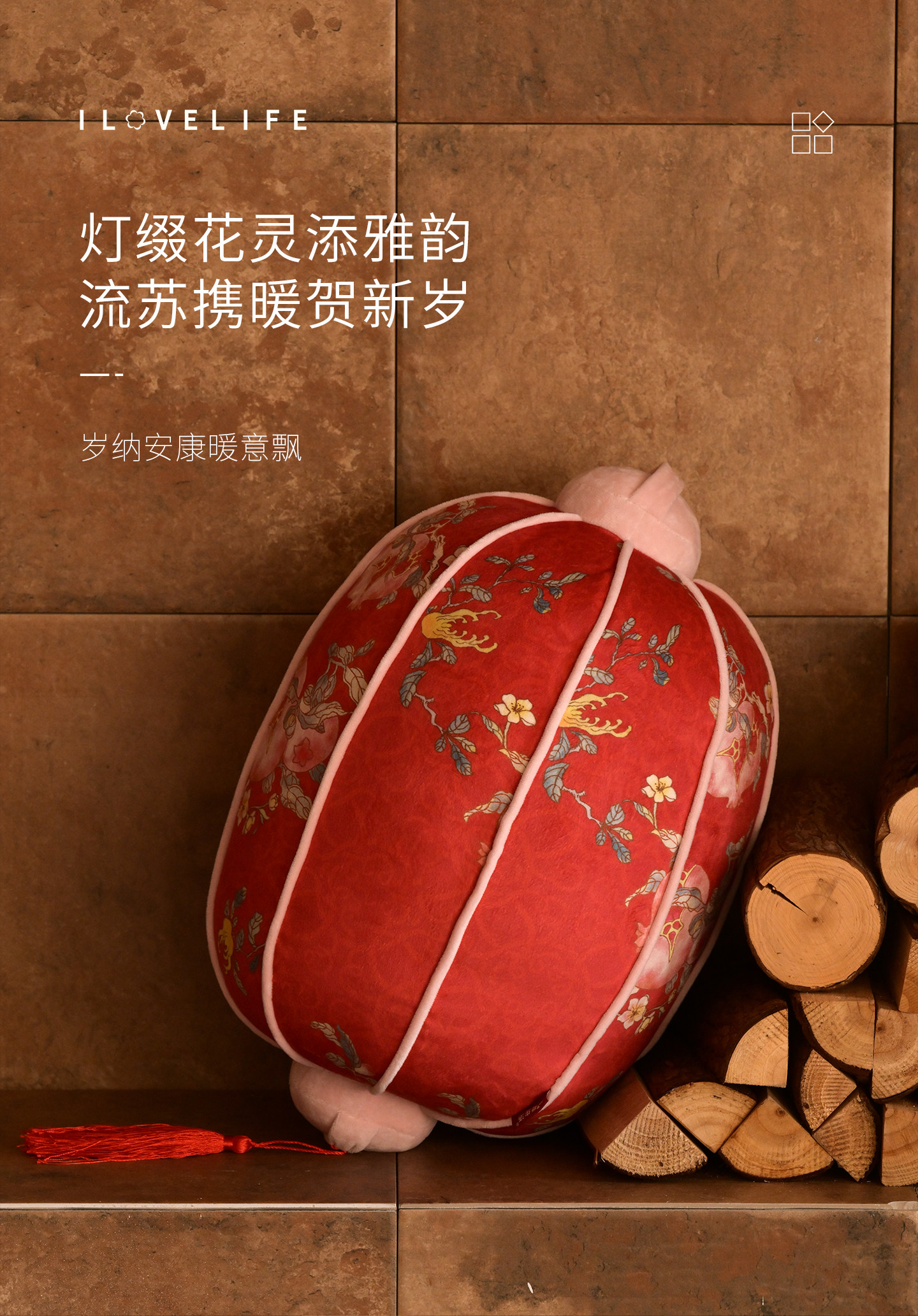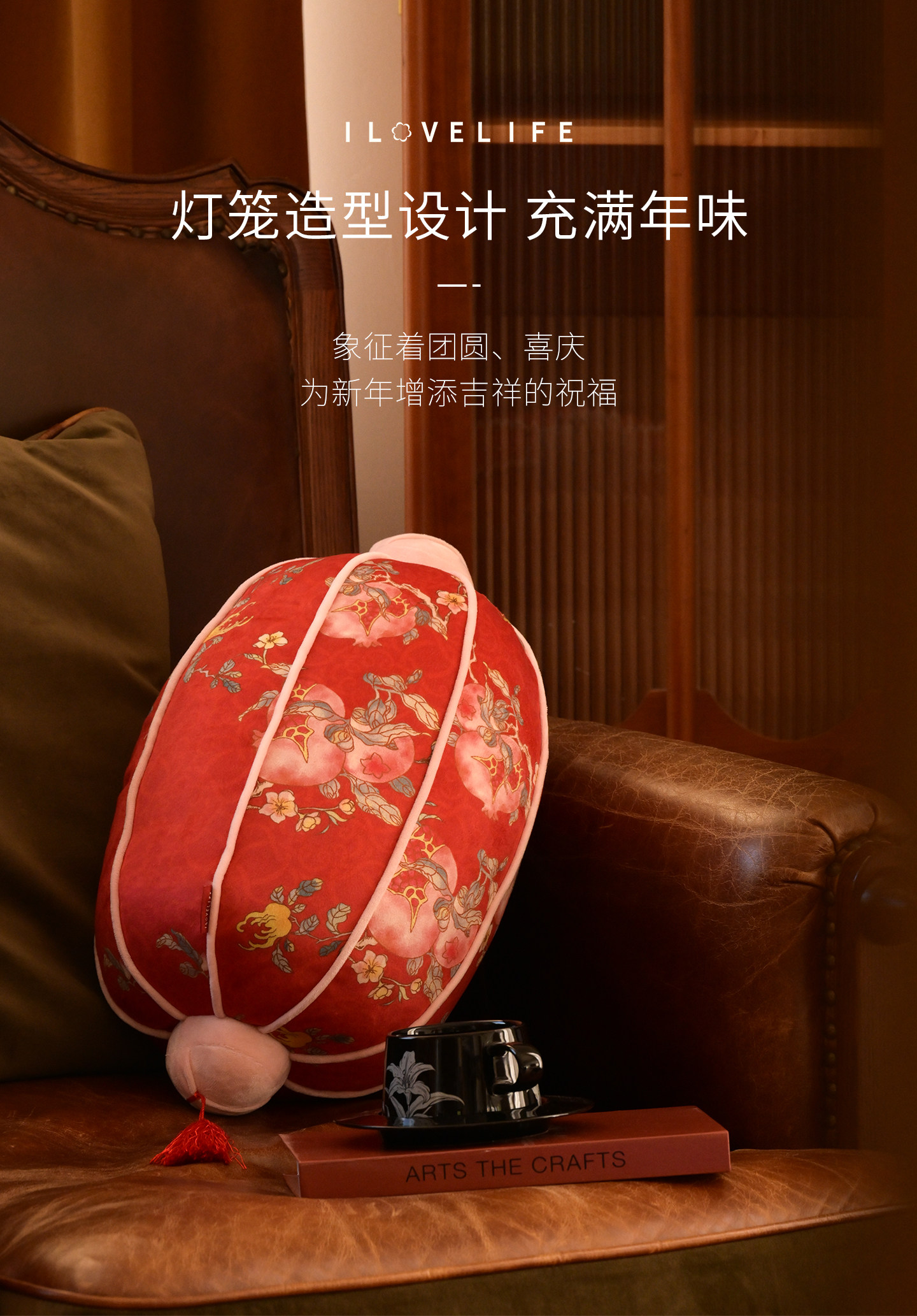 我爱生活灯笼抱枕2026马年新年靠枕创意异形靠背春节装饰布置礼物