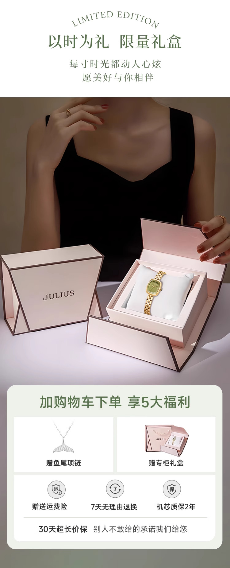 聚利时手表女款女士轻奢小众2025新款方糖小绿表圣诞节礼物送女生