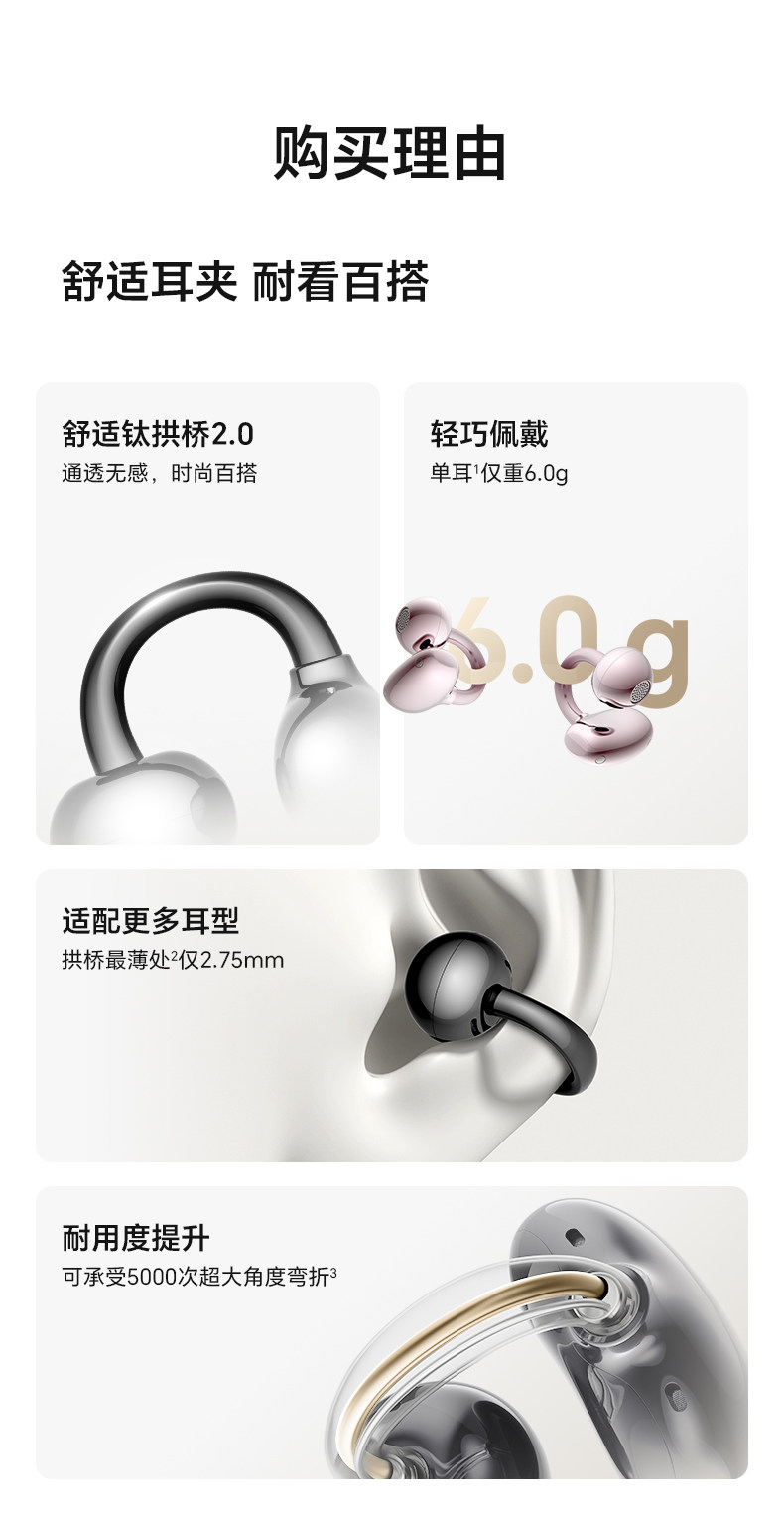 Honor wählt persönlich LCHSE Ear Clip-on Headphones 2 Pro, starke Akkulaufzeit, offene Ohrclip-Kopfhörer für den Sport