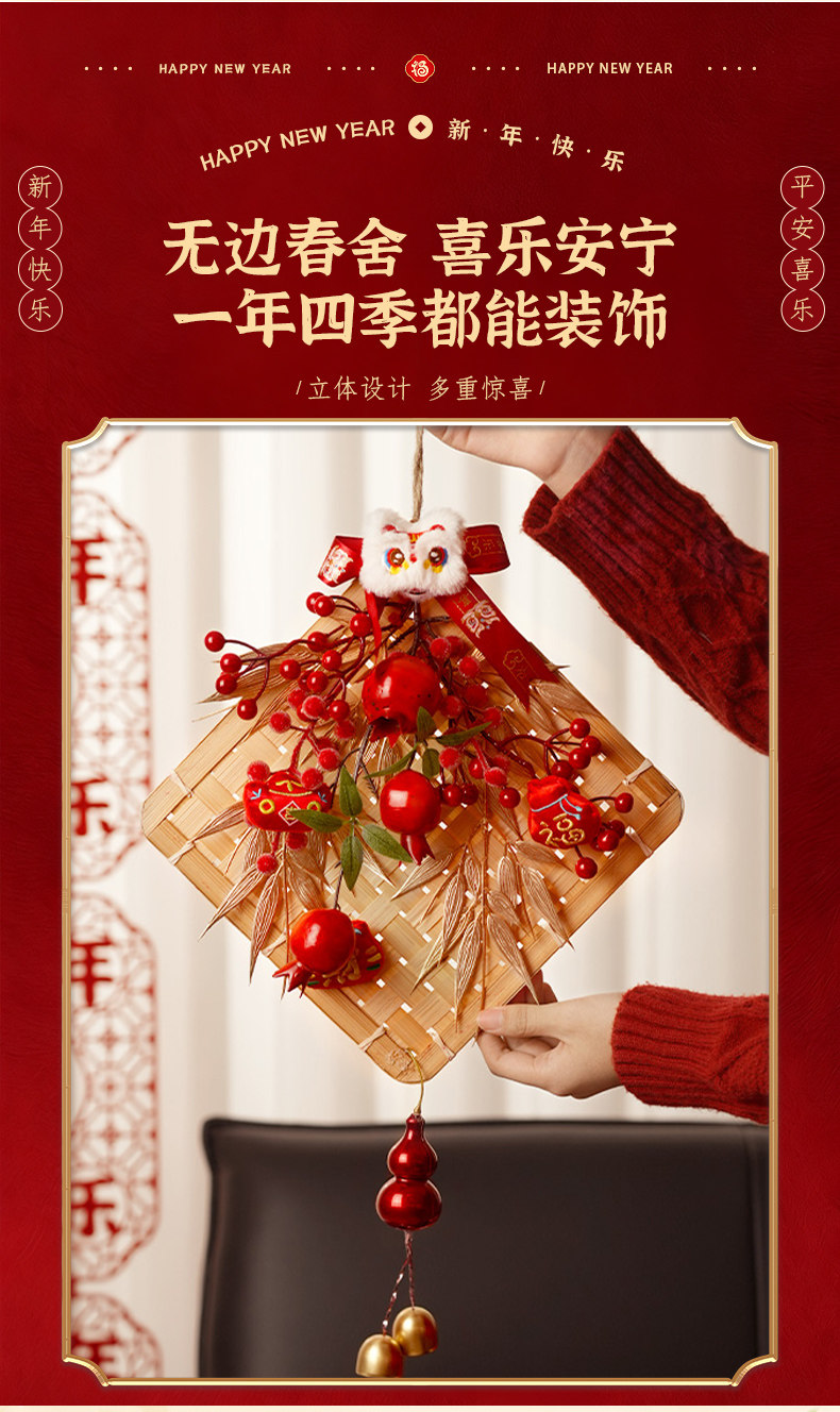 Color Classification Small Wreath [Peace and Joy] (Finished Product Shipped),Small Garland - "Lion Dance Blessings" (Ready-To-Ship),Large Garland "Lion Dance Blessings" (Ready-To-Ship),Large Garland [Blessing from the God of Wealth] (Finished Product Shipped),New Year Bamboo Ornament - "Pomegranate Blessings Abound" (Ready-To-Ship),[Upgraded Version] New Year Bamboo Woven Ornament - "Pomegranate Blessings Abound" (Ready-To-Ship),New Year Bamboo Woven Ornament - "May All Your Wishes Come True" (Ready-To-Ship),[Upgraded Version] New Year Bamboo Woven Ornament - "May All Your Wishes Come True" (Ready-To-Ship),New Year's Handmade Knitted Ornament - "Pomegranate Blessings Abound" (Ready-To-Ship),[Upgraded Version] Handmade Knitted New Year Ornament - "Pomegranate Blessings Abound" (Ready-To-Ship),New Year's Handmade Woven Ornament - "May All Your Wishes Come True" (Ready-To-Ship),[Upgraded Version] New Year Handmade Woven Ornament - "May All Your Wishes Come True" (Ready-To-Ship)