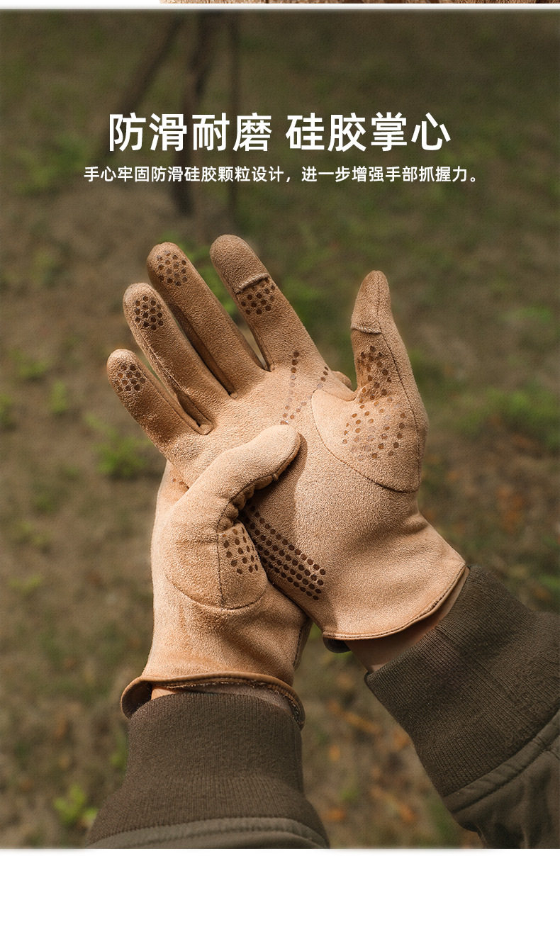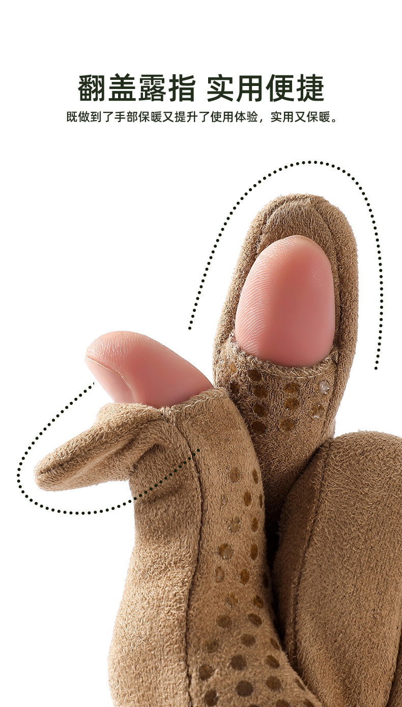 Men's and Women's Winter Outdoor Photography Suede Gloves with Fleece Lining, Thickened for Warmth, Flip-Top Design, Non-Slip Touchscreen Gloves