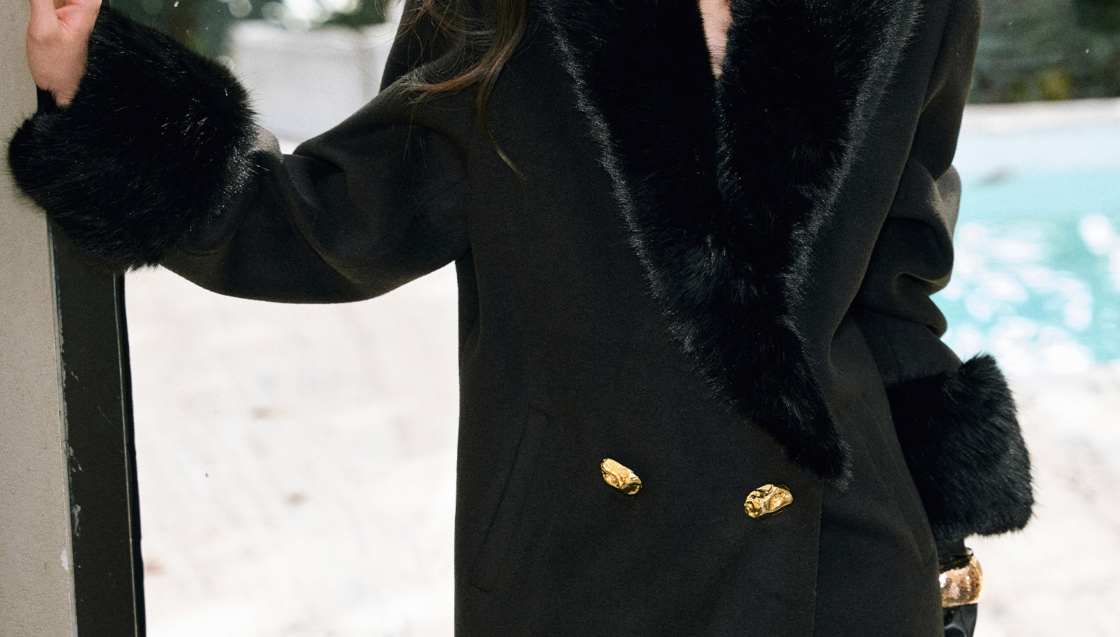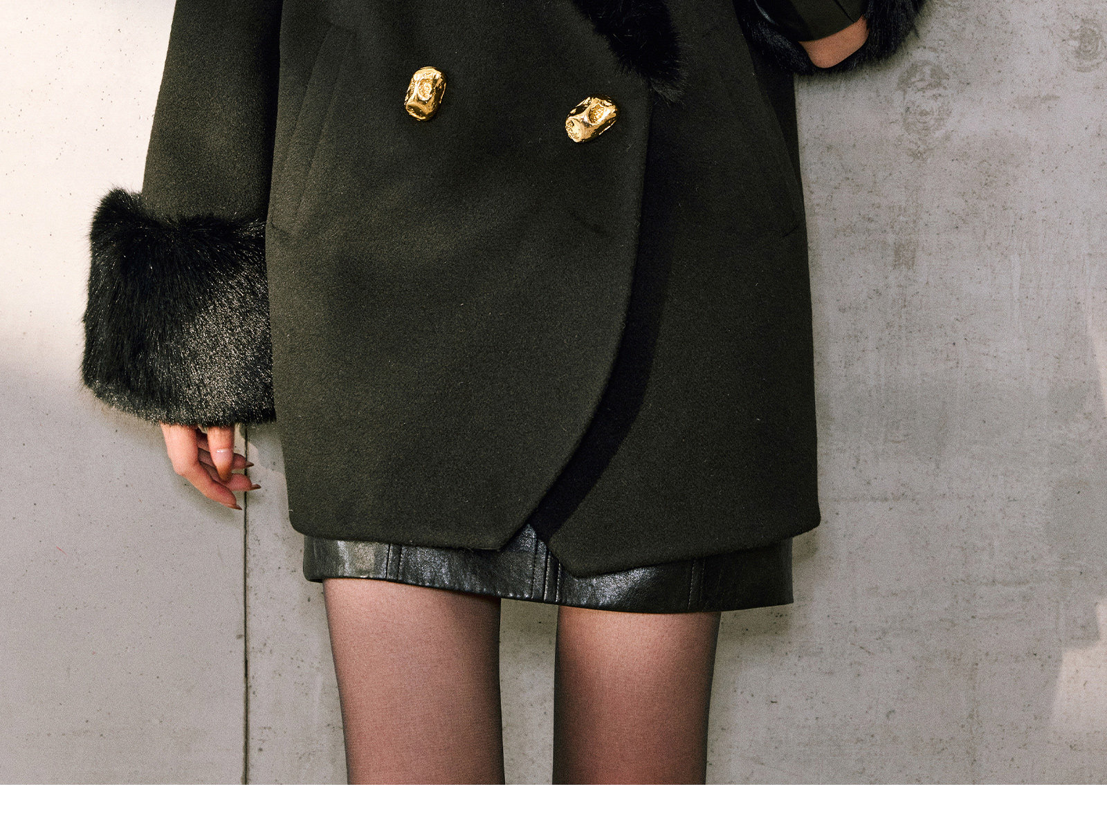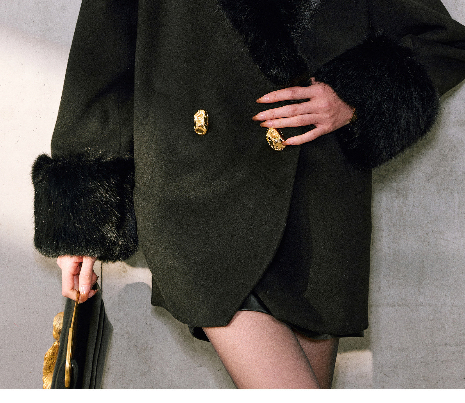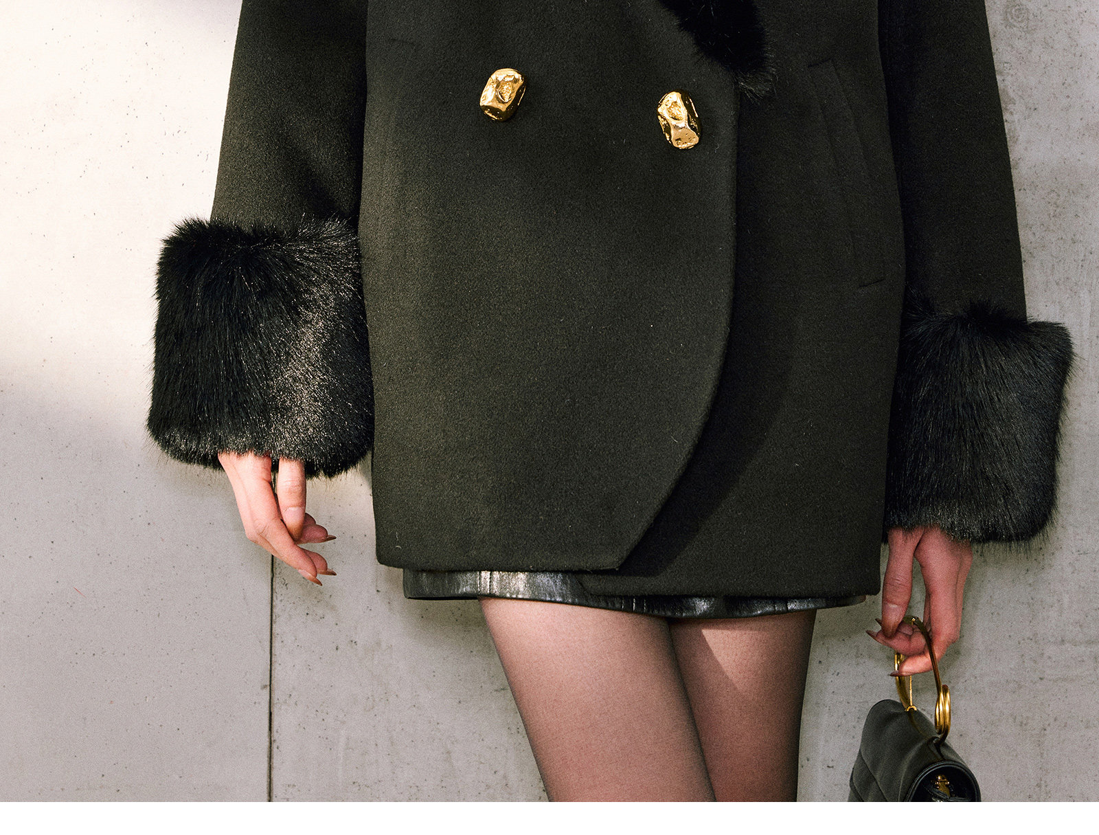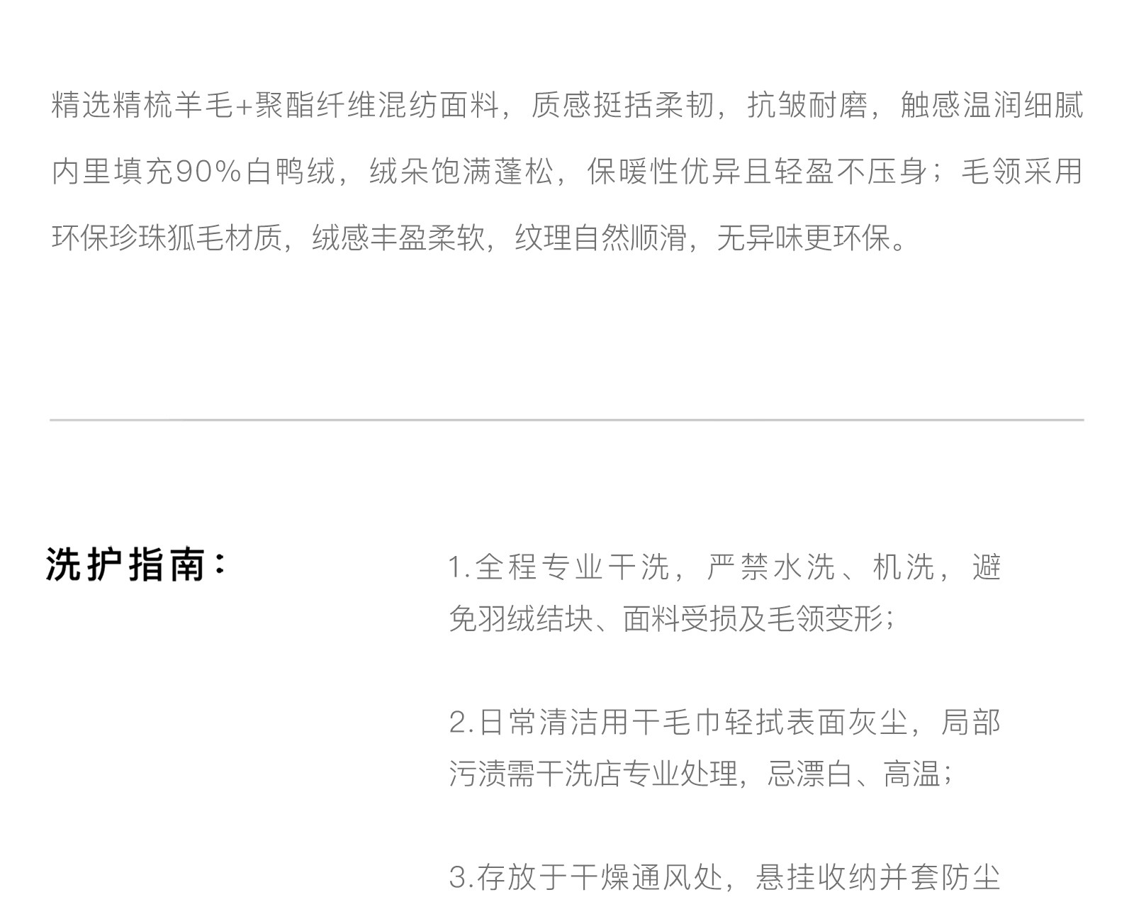 WANGXO|挺括精梳羊毛天丝|环保珍珠狐毛领90白鸭绒茧型羽绒外套