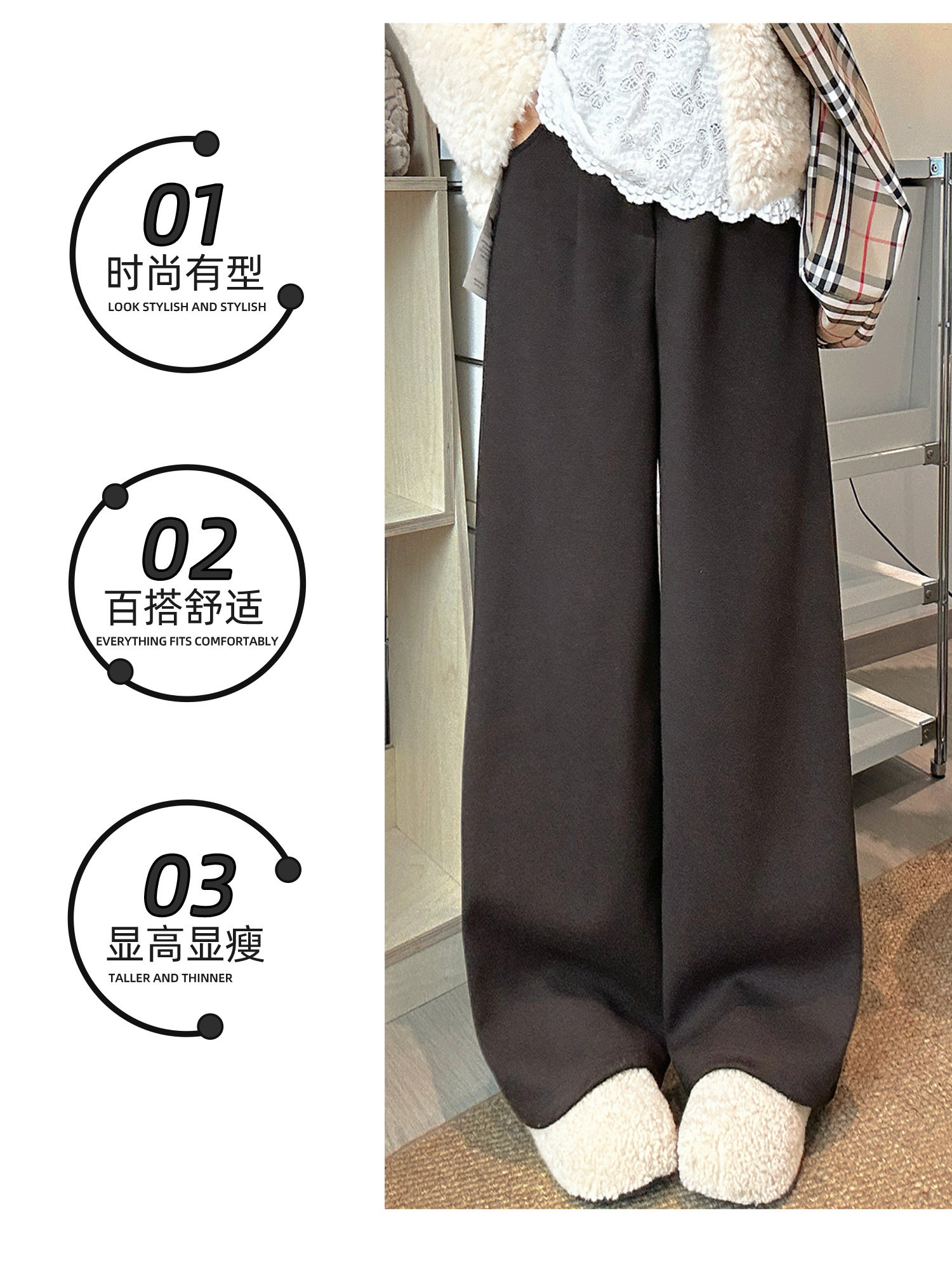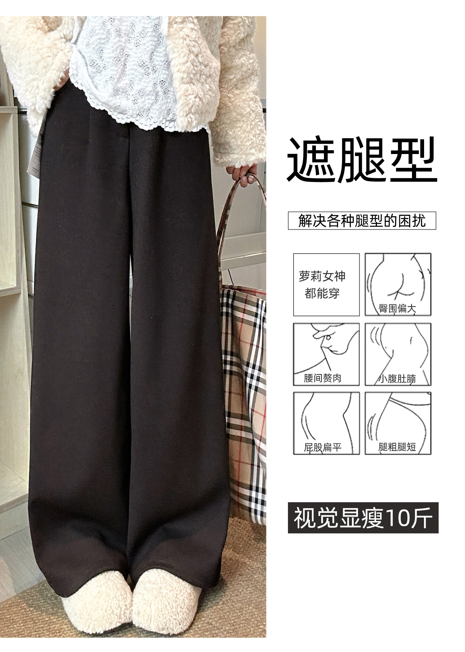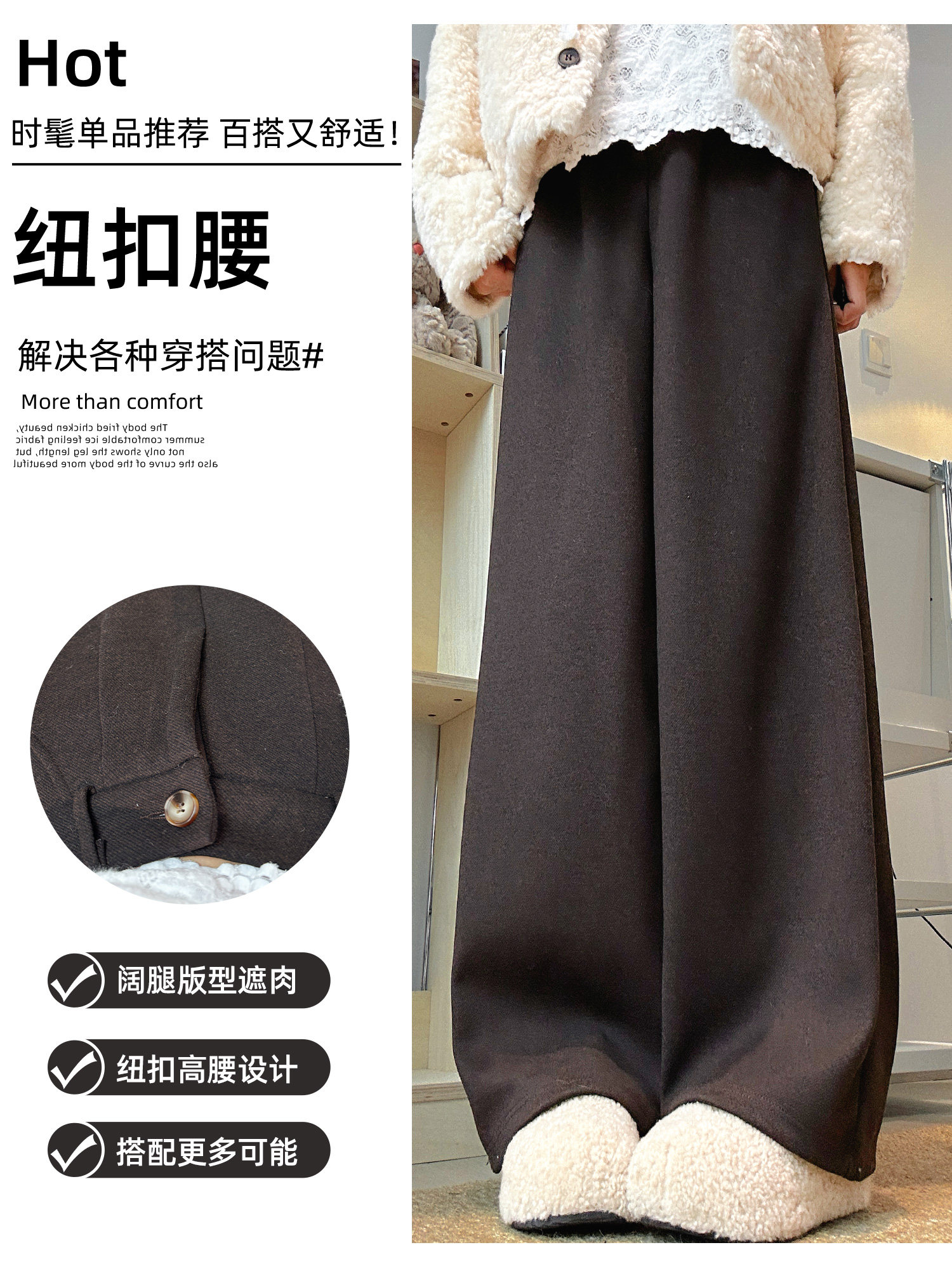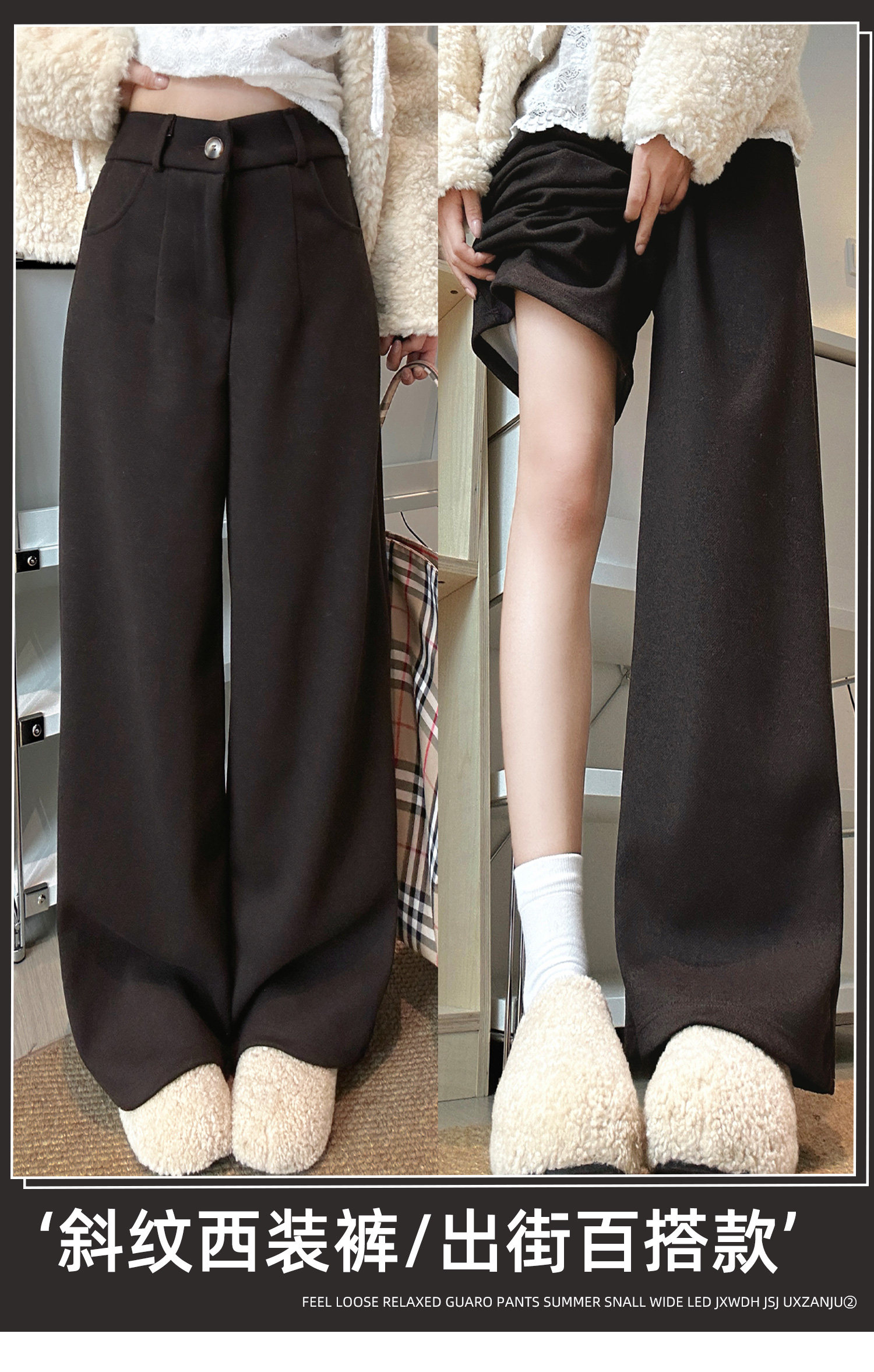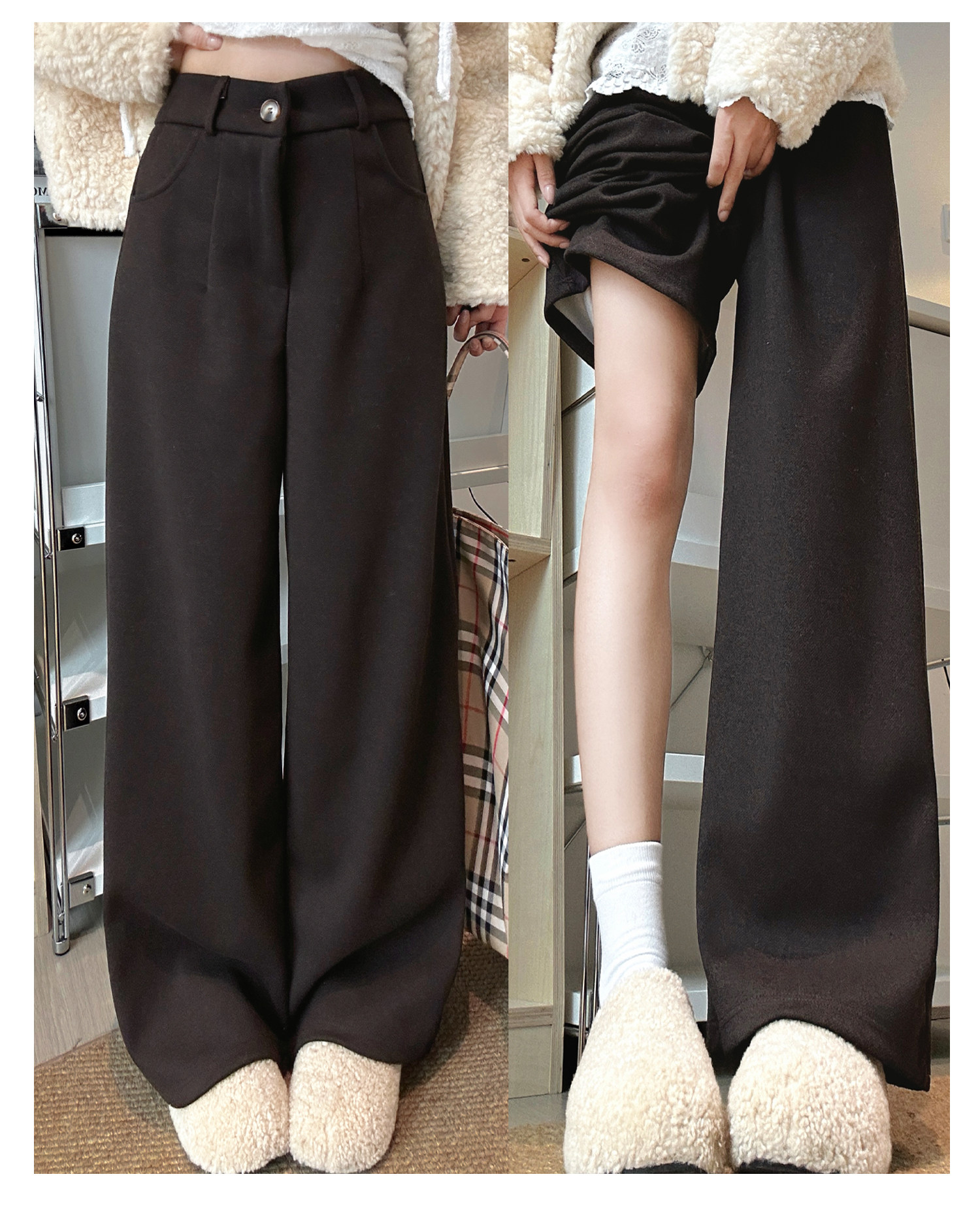 Pantalones de traje de sarga de estilo retro marrón para mujer Otoño e Invierno 2025 Pantalones rectos gruesos adelgazantes de cintura alta para personas pequeñas