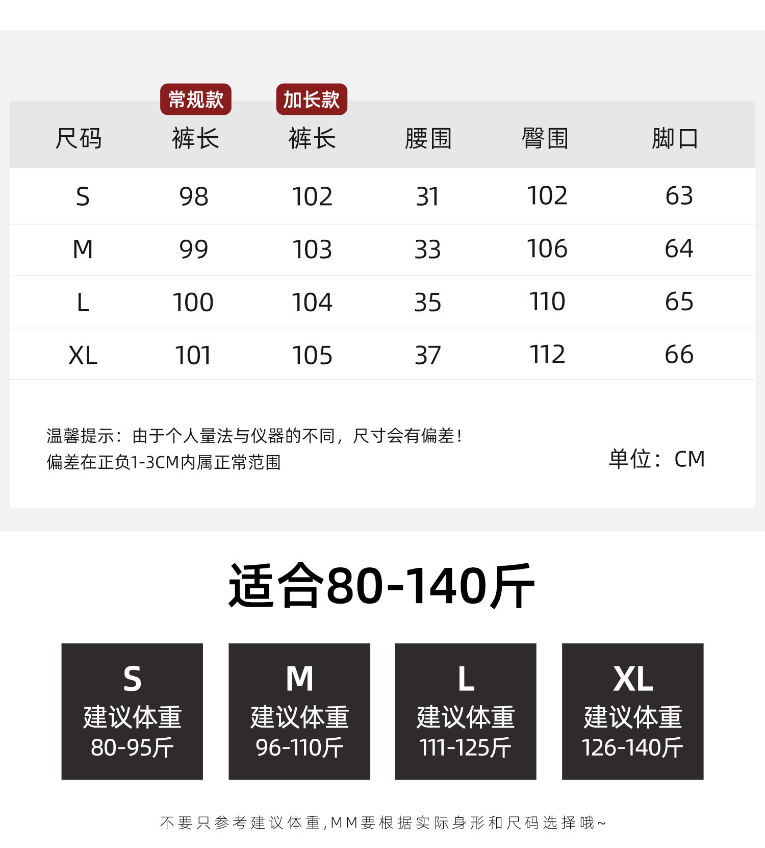 Outseam (cm) 99 cm 101.5 cm 104 cm 106.5 cm 109 cm