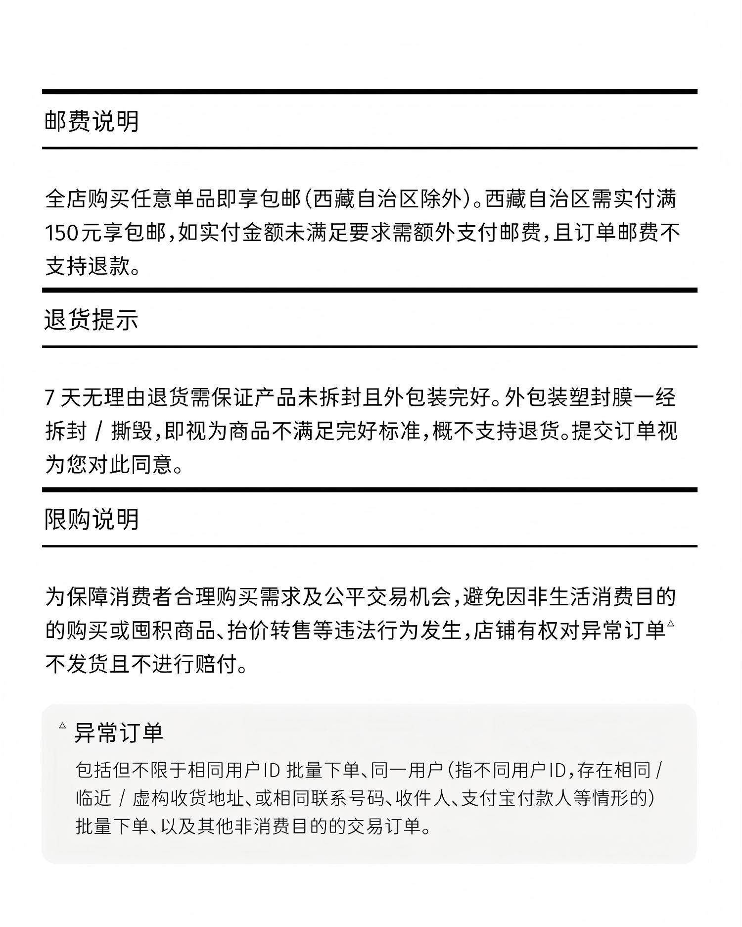 2)运费通常按每0.5公斤收费。因此,如果你购买的产品只有0.1公斤,那么你可以考虑一次购买2-3件,这不会增加你订单的运费。