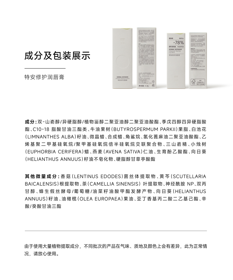 至本特安修护润唇膏 长效保湿滋润密集舒缓干燥深度呵护敏感唇