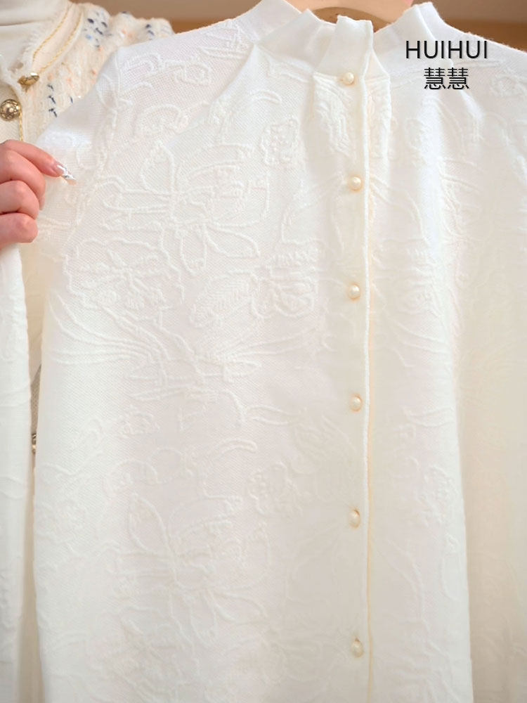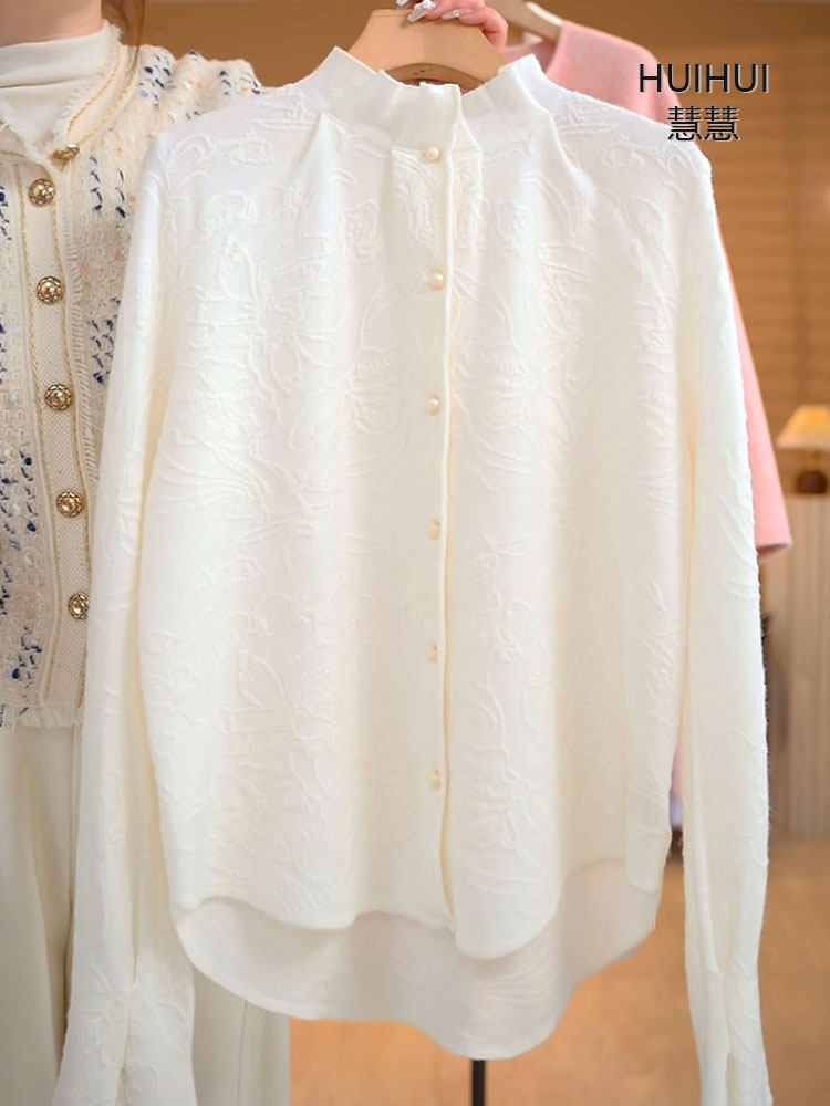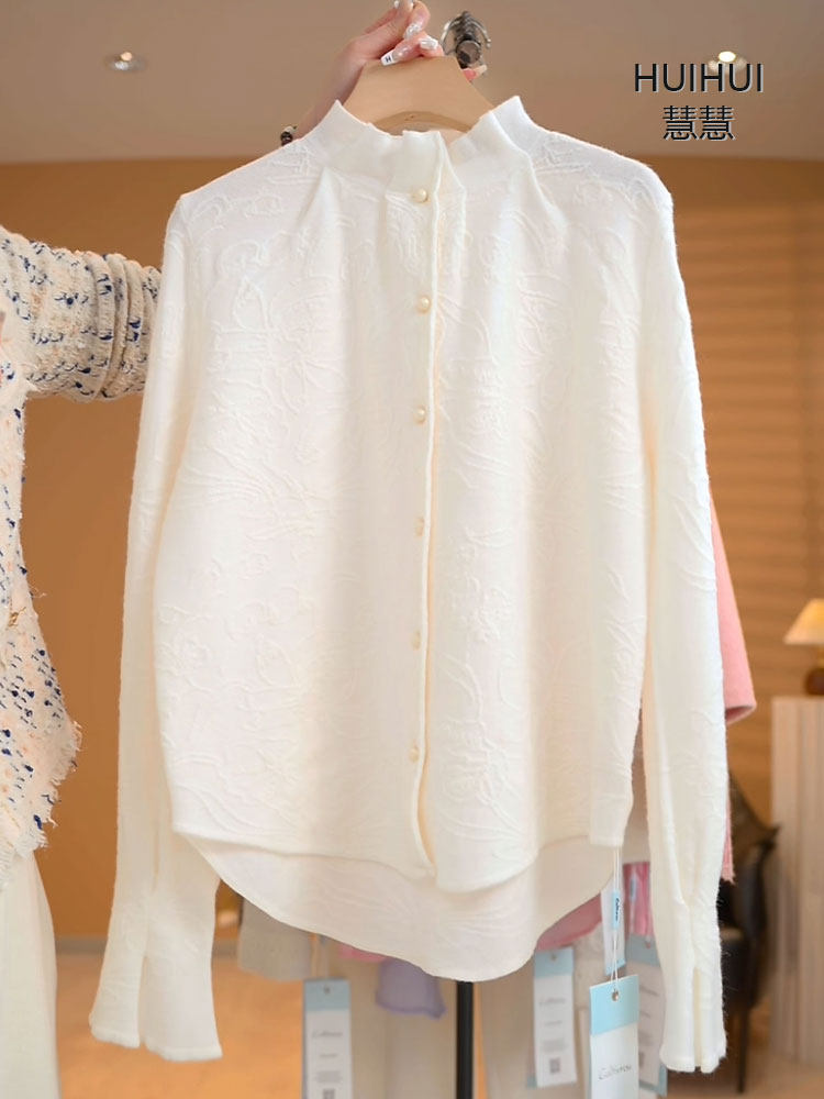 Three-Dimensional Jacquard Wool Shirt with Elaborate Ruffled Bell Sleeves, Versatile Sweater, Cardigan, and Knit Top