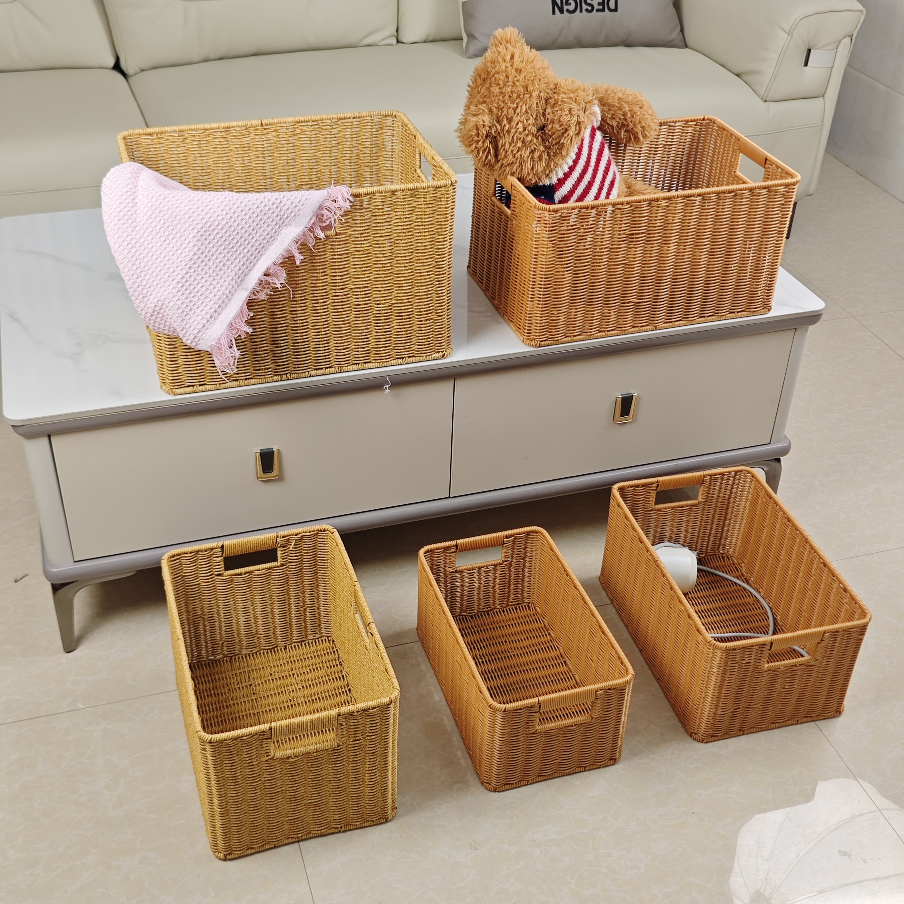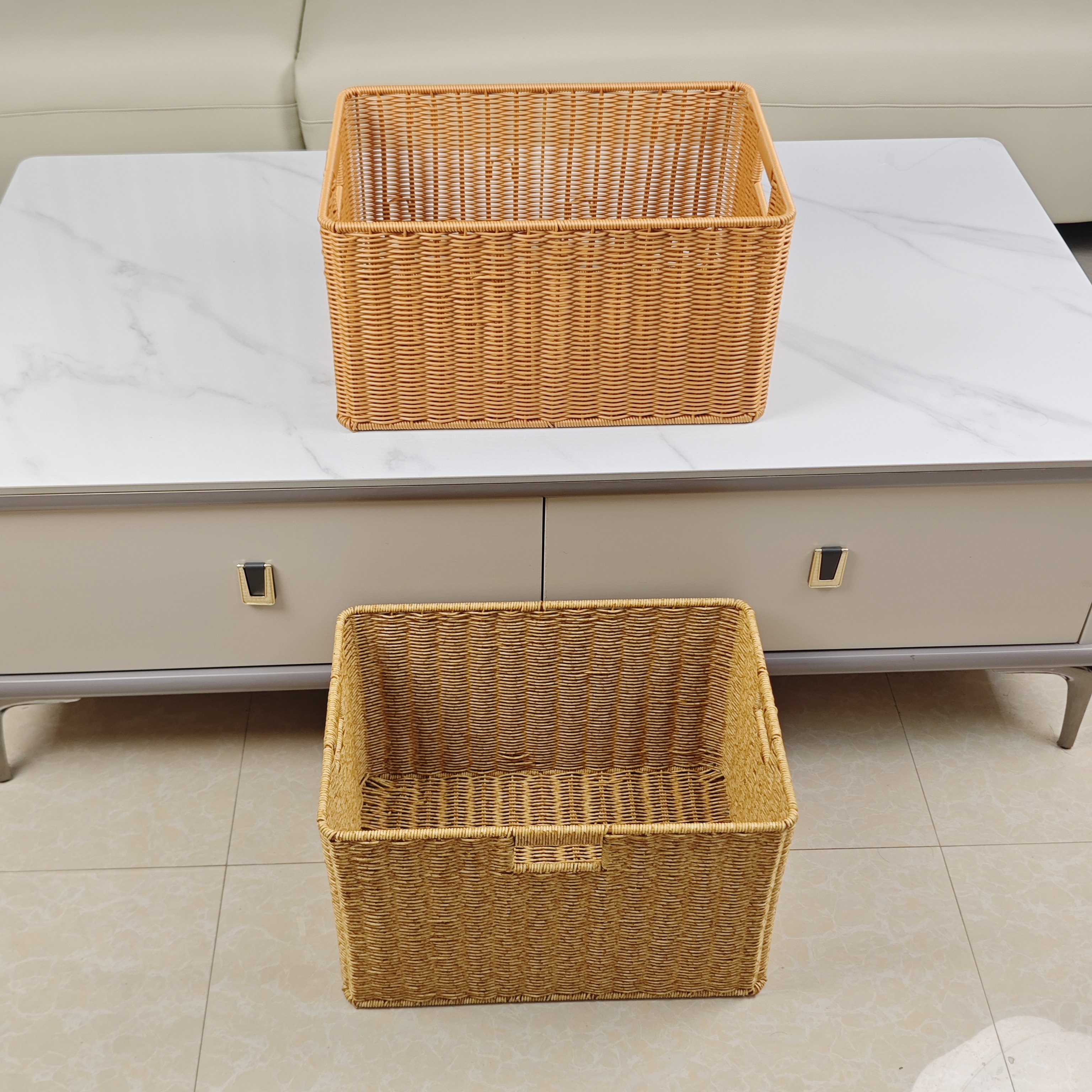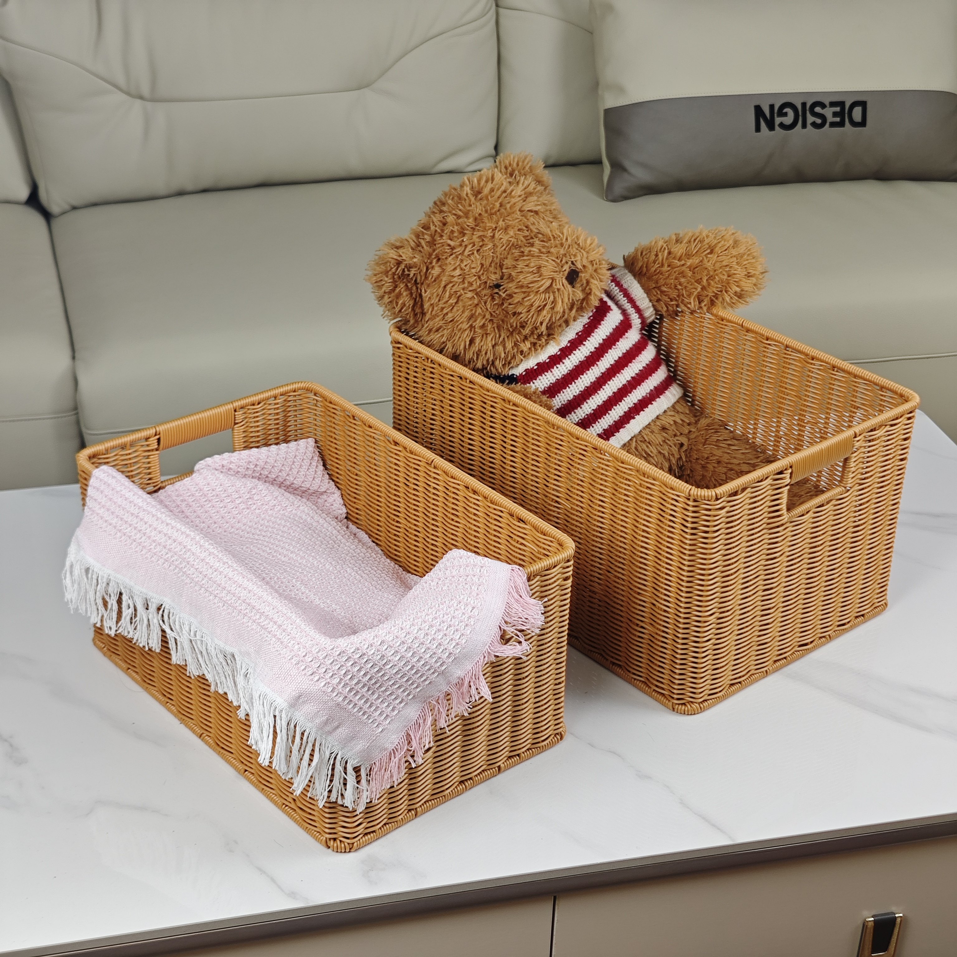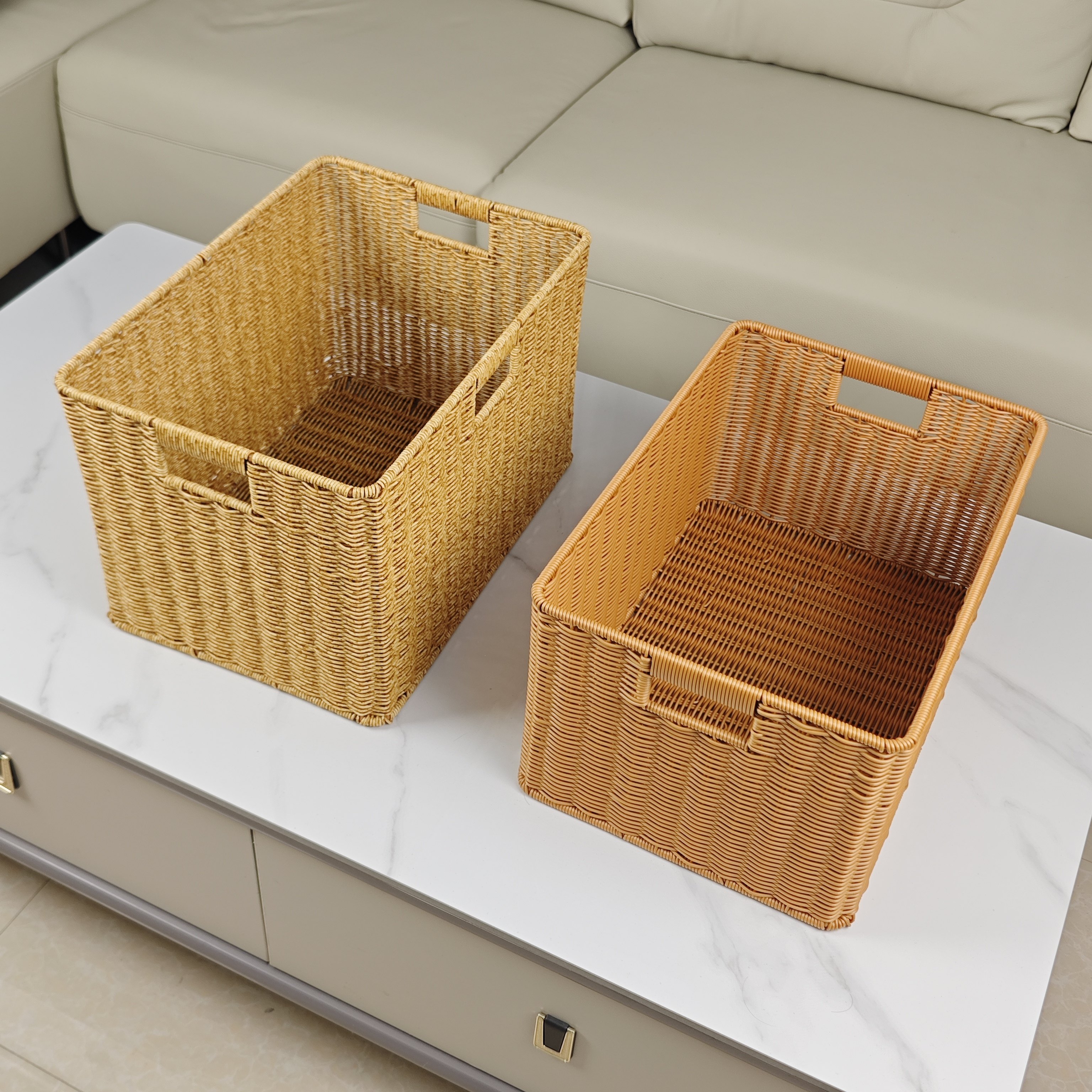 Panier de rangement en treillis imitation rotin, panier de rangement pour vêtements sales, armoire de maison, panier de rangement pour vêtements, salon, boîte de rangement pour jouets et articles divers