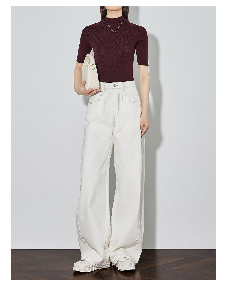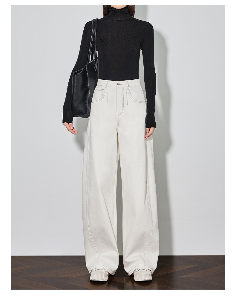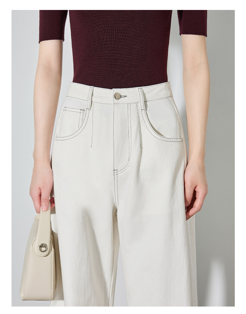 Женские широкие джинсовые брюки FAESSLIN белого цвета, весенне-осенние, удлиненные, с высокой талией, утягивающие, свободные повседневные брюки.