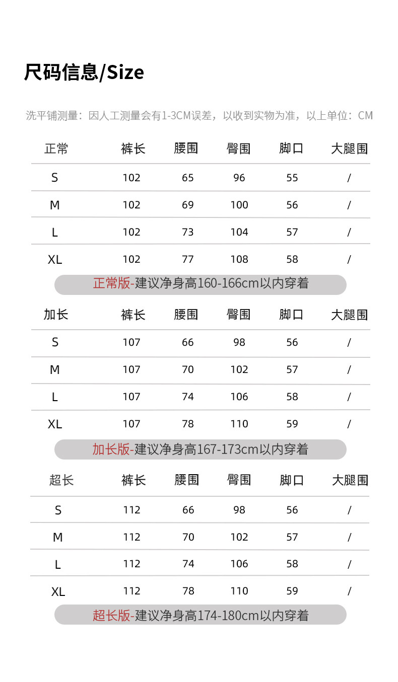 Outseam (cm) 99 cm 101.5 cm 104 cm 106.5 cm 109 cm