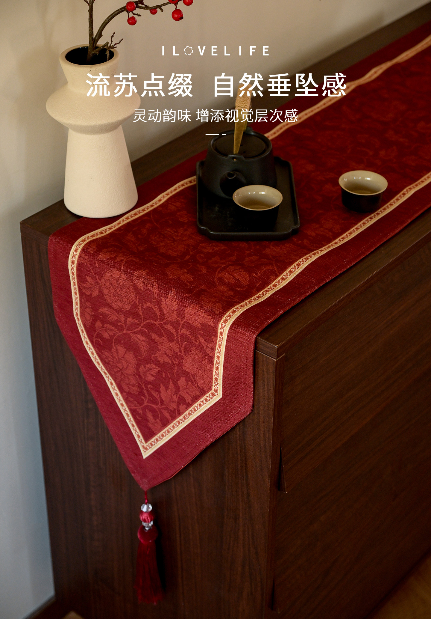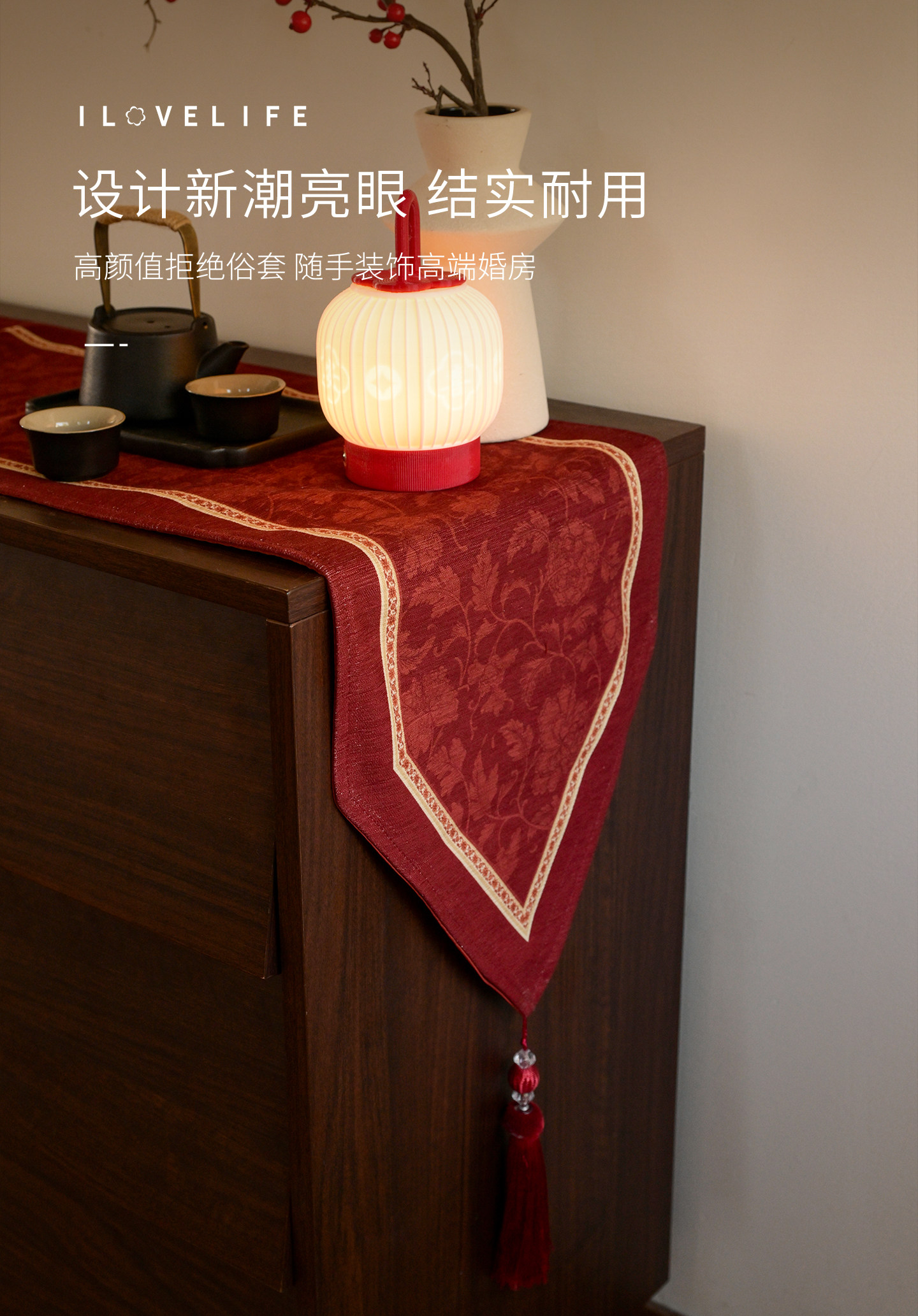 New Year Wedding Table Runner 2026 New Luxury High-End Spring Festival Tablecloth Long Red Bed Runner Chinese Coffee Table Mat