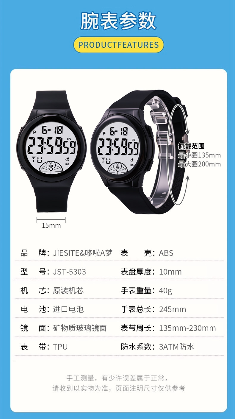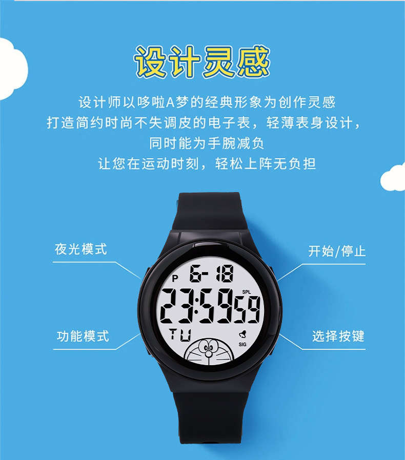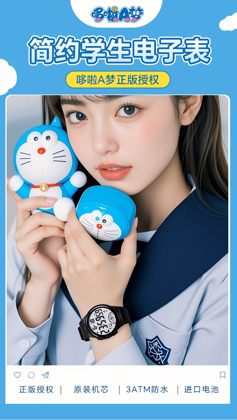 哆啦a梦联名手表男款初高中学生女叮当猫儿童男生青少年运动电子