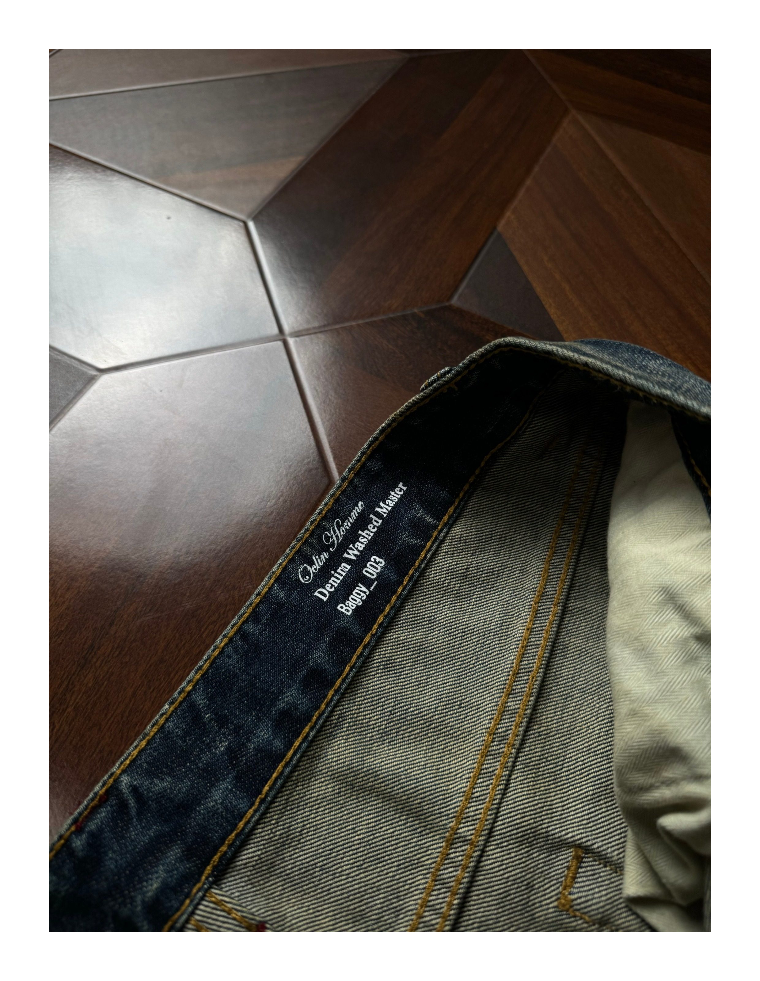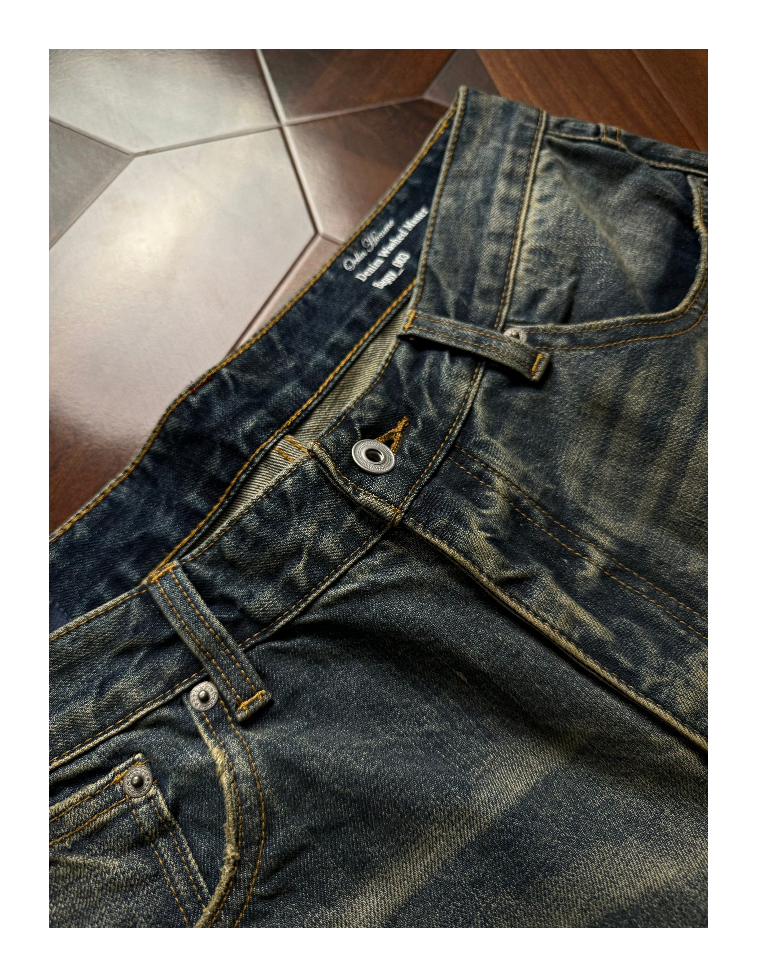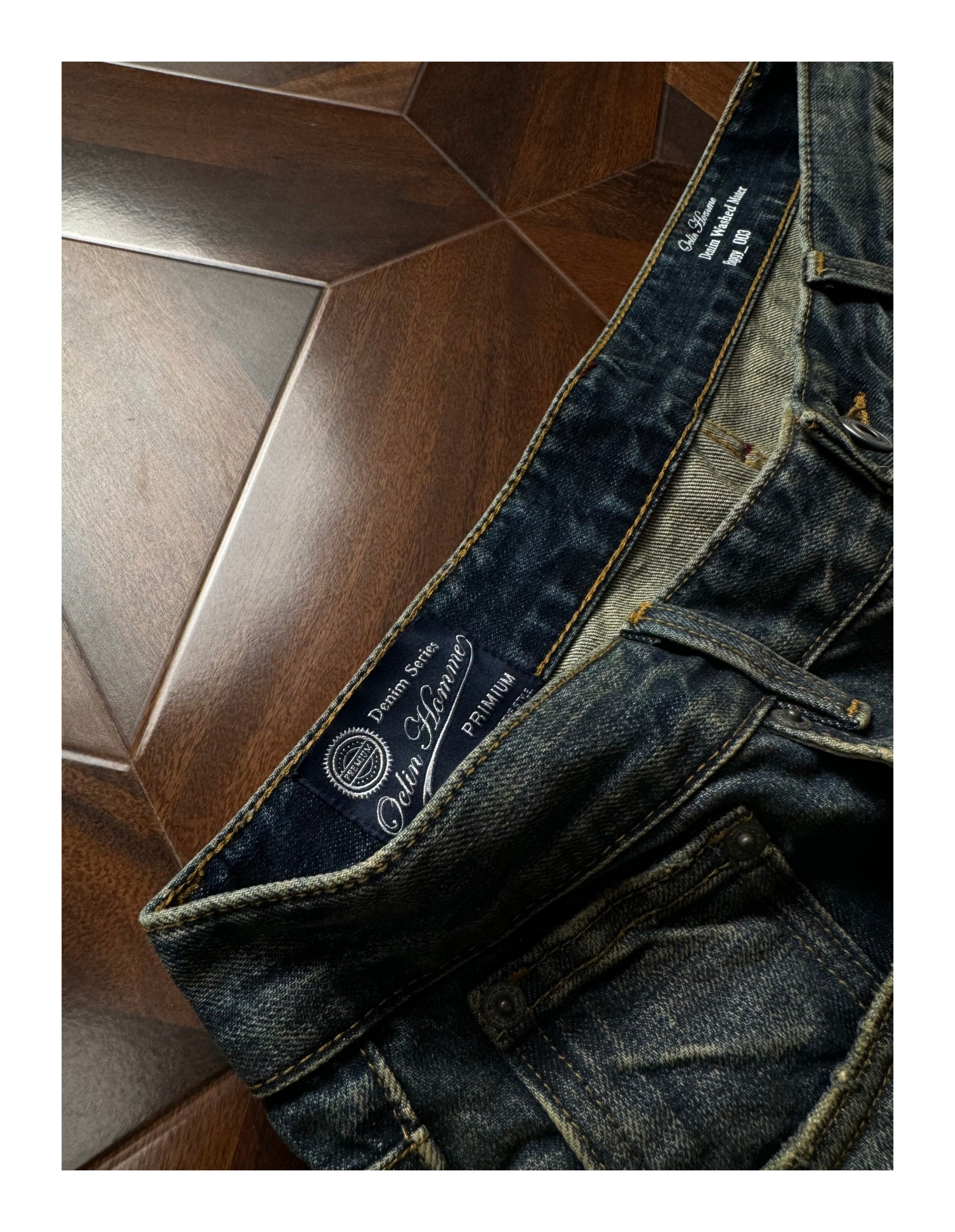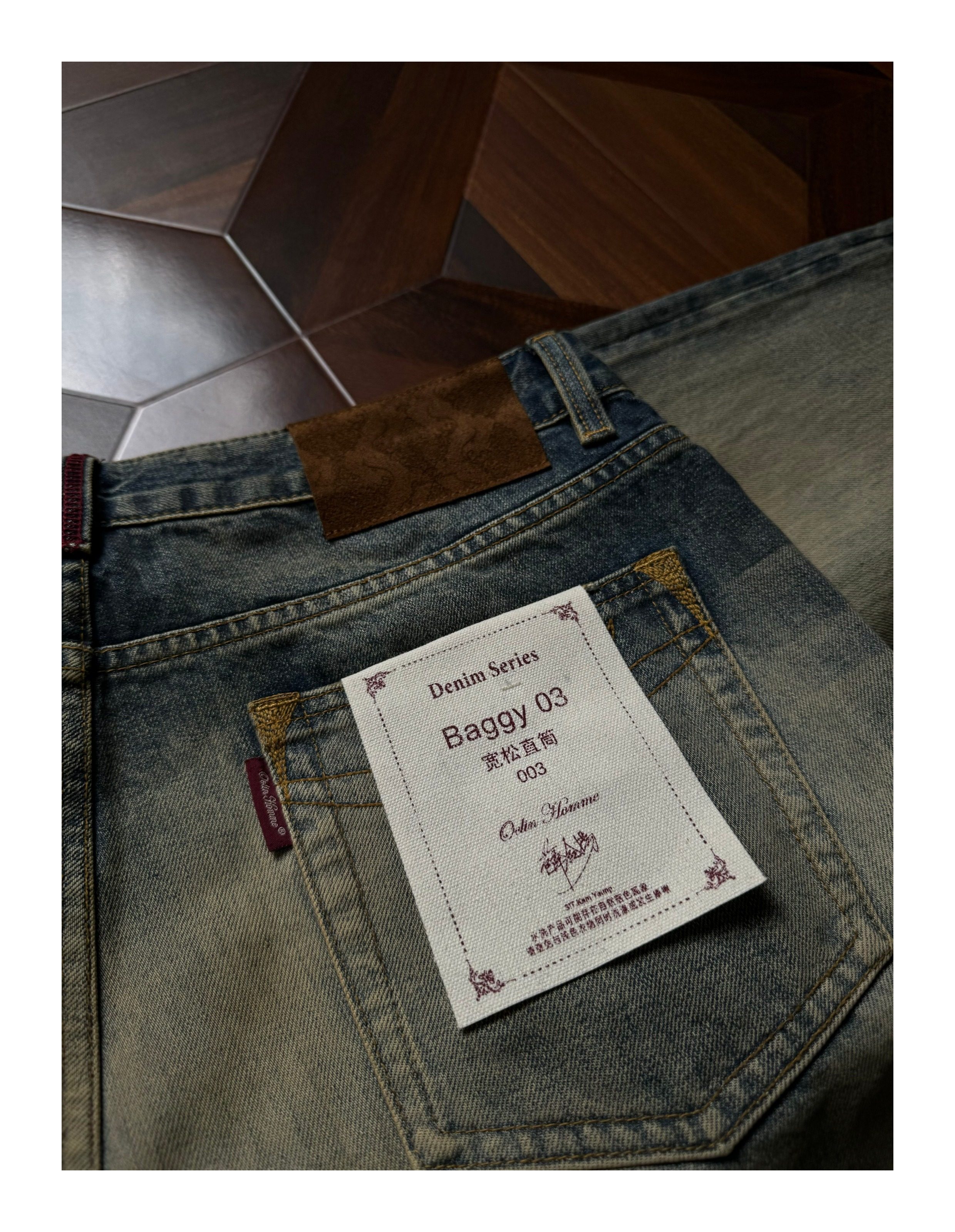 Oclin Master - Jean ample en nid d'abeille avec moustaches délavées, bleu tempête, teinture de boue 003, marque conjointe