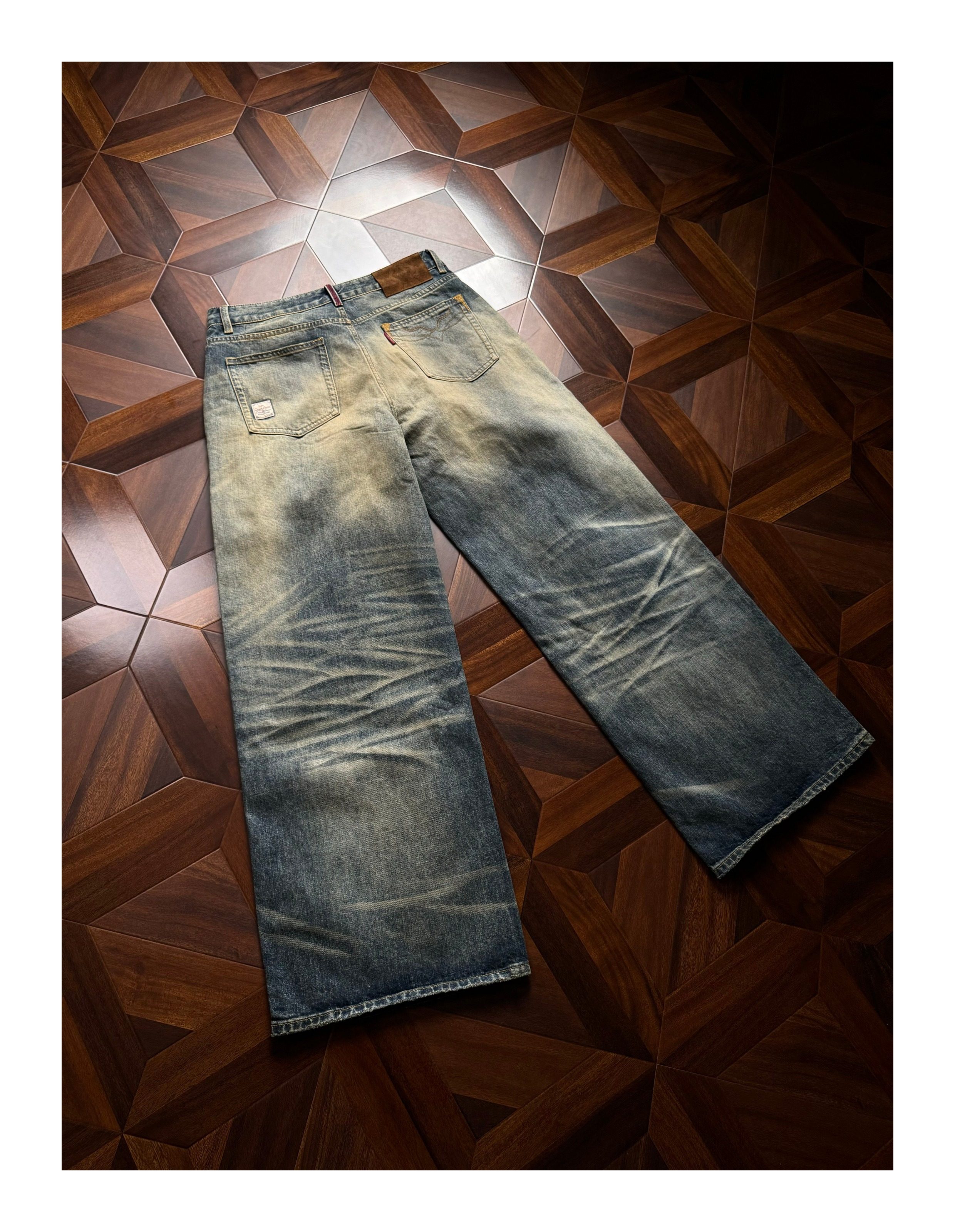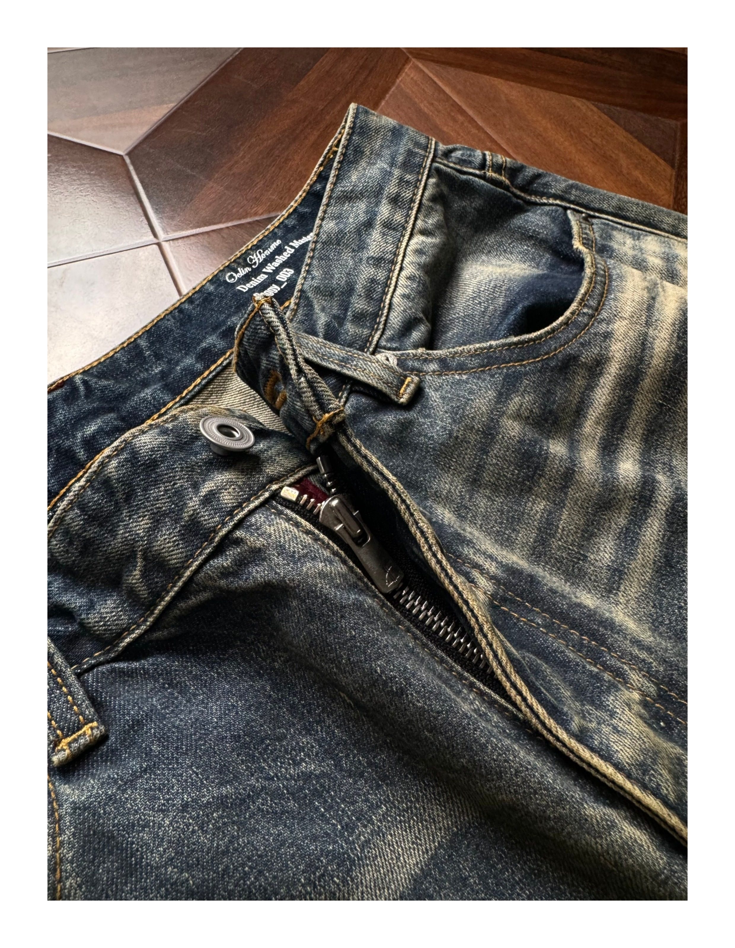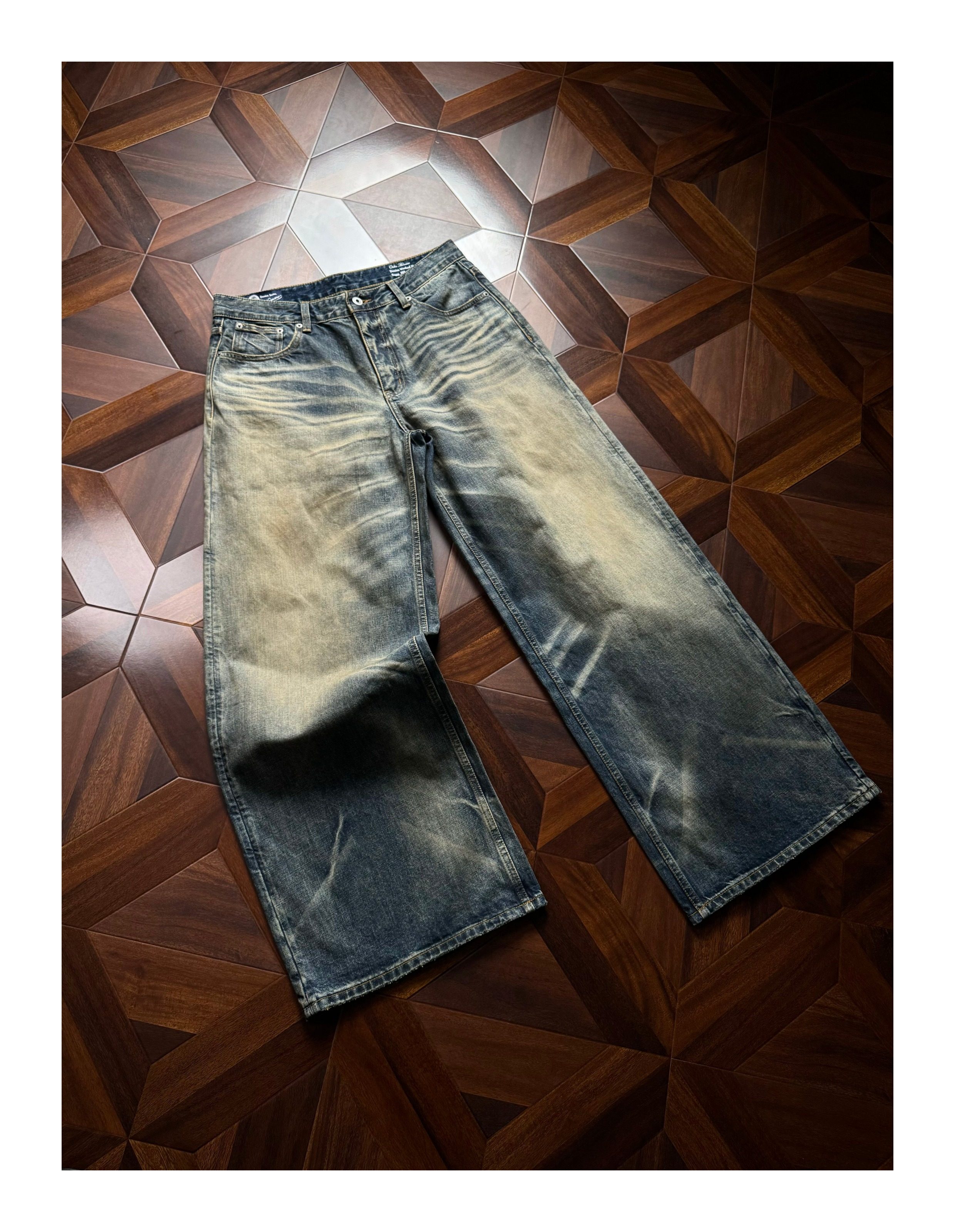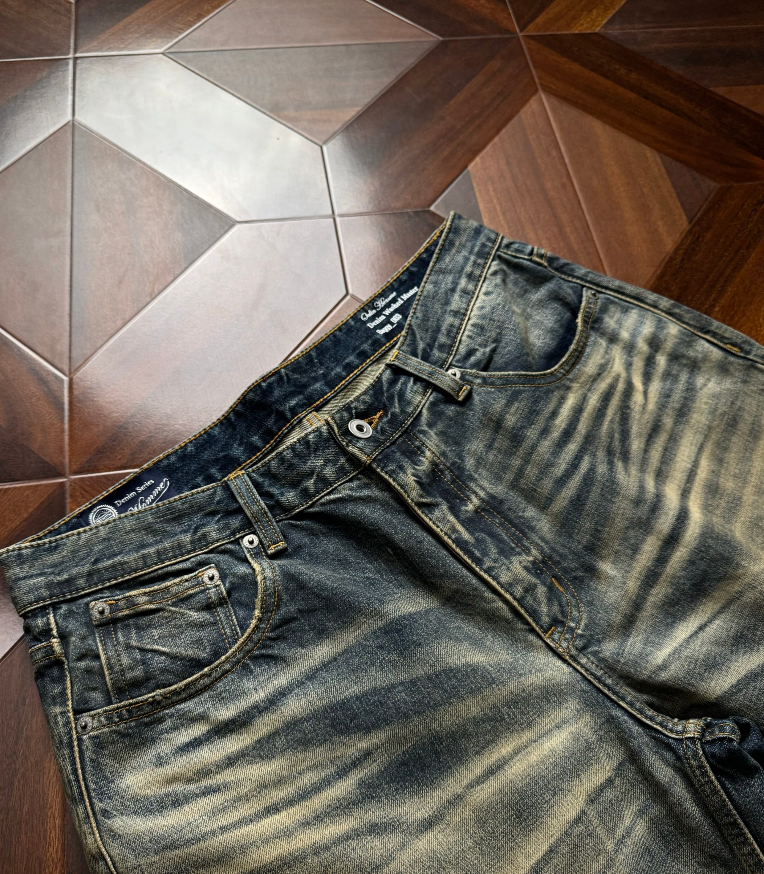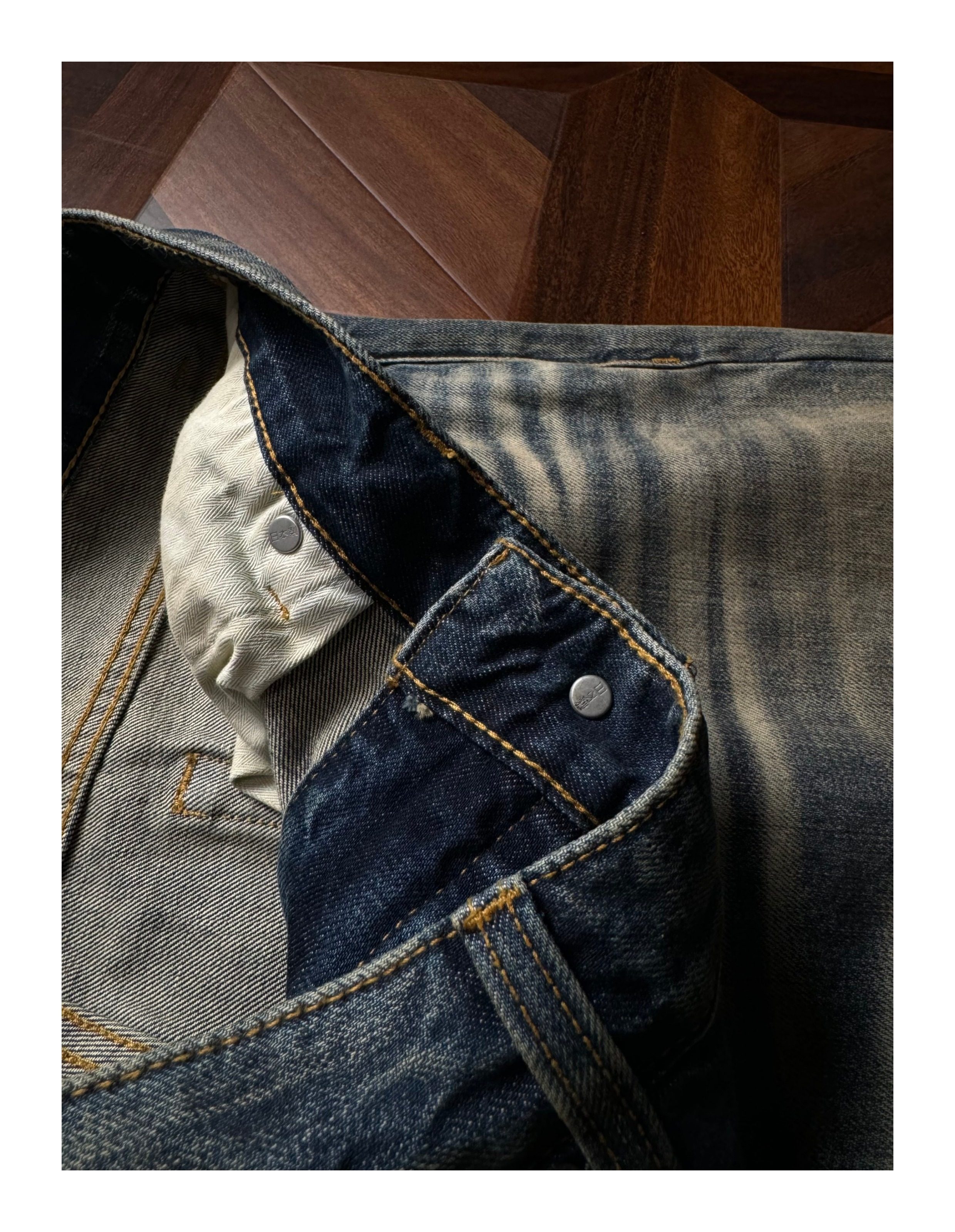 Oclin Master - Jean ample en nid d'abeille avec moustaches délavées, bleu tempête, teinture de boue 003, marque conjointe