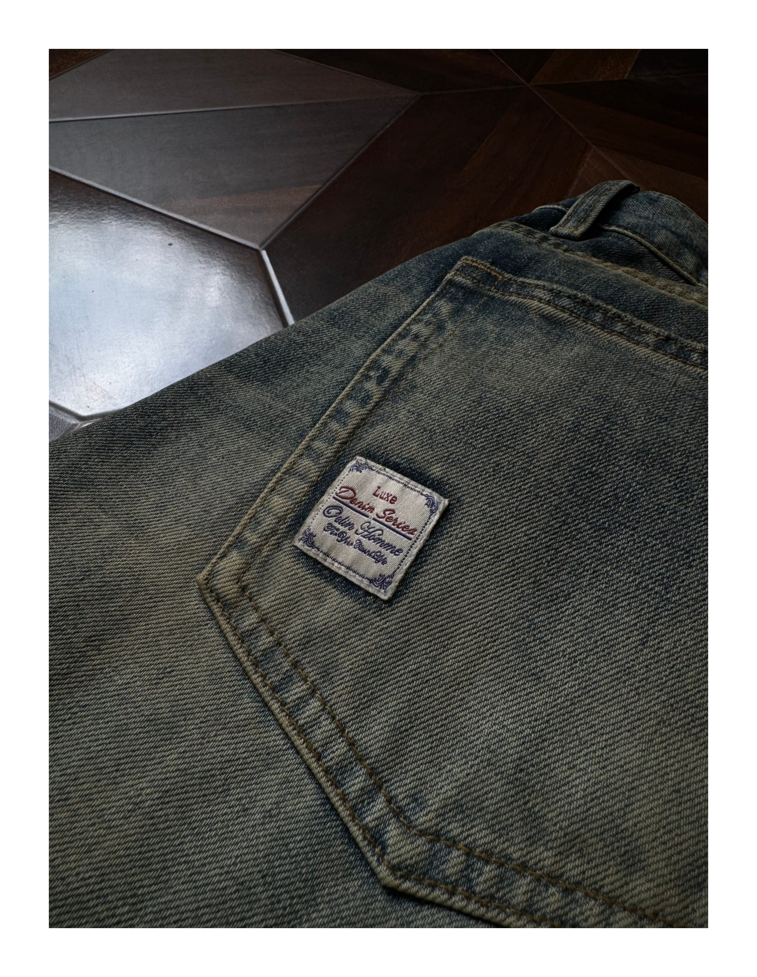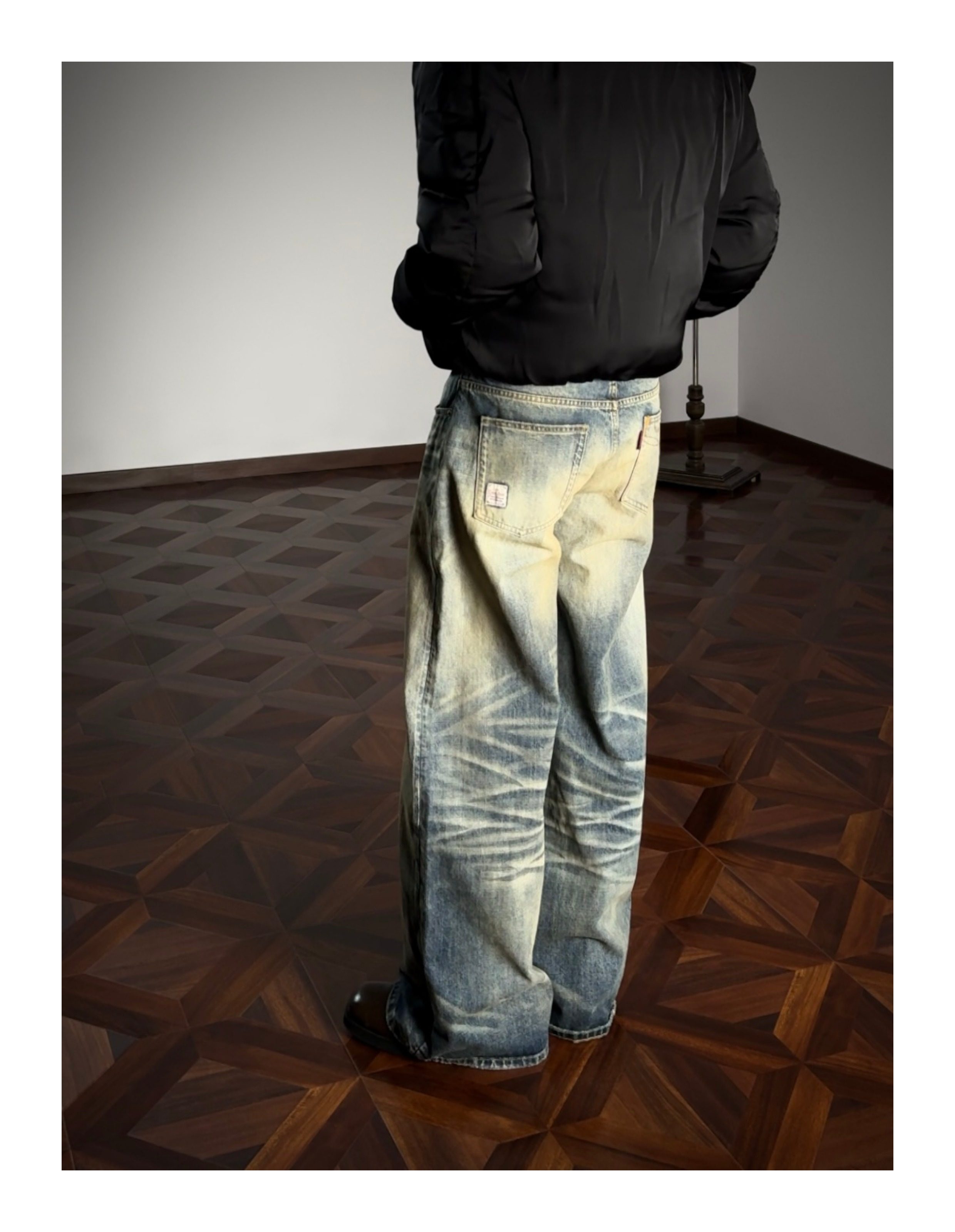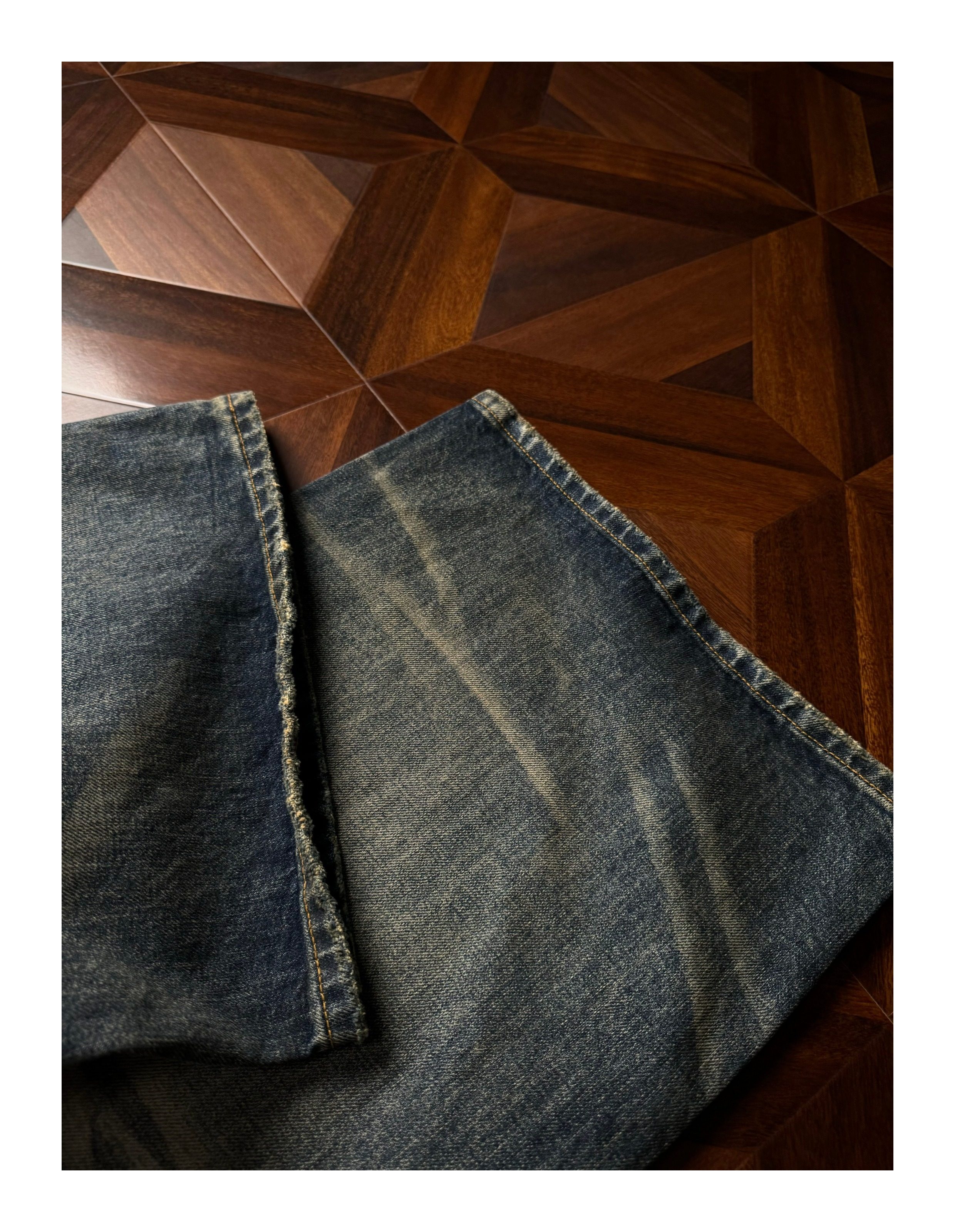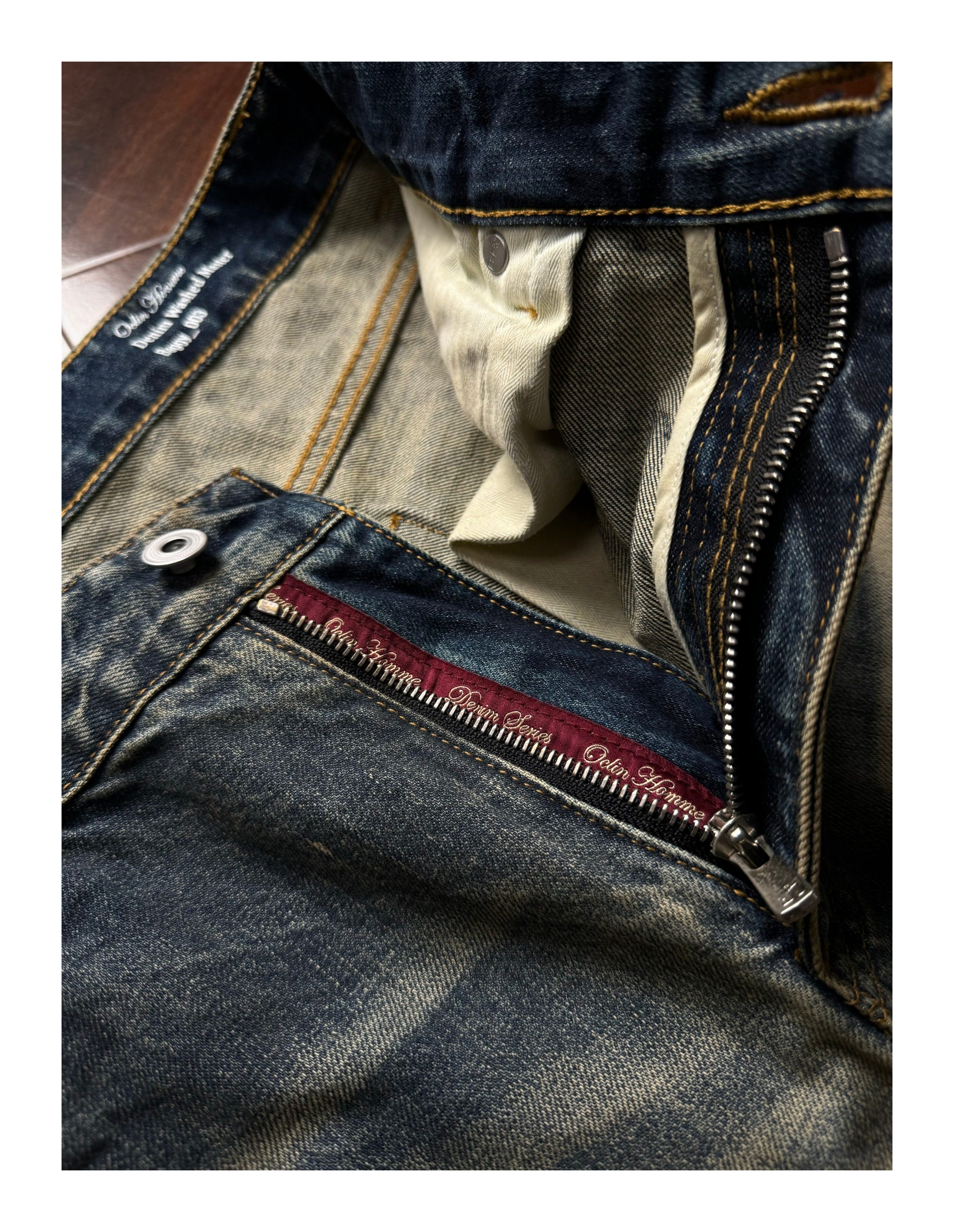 Oclin Master - Jean ample en nid d'abeille avec moustaches délavées, bleu tempête, teinture de boue 003, marque conjointe