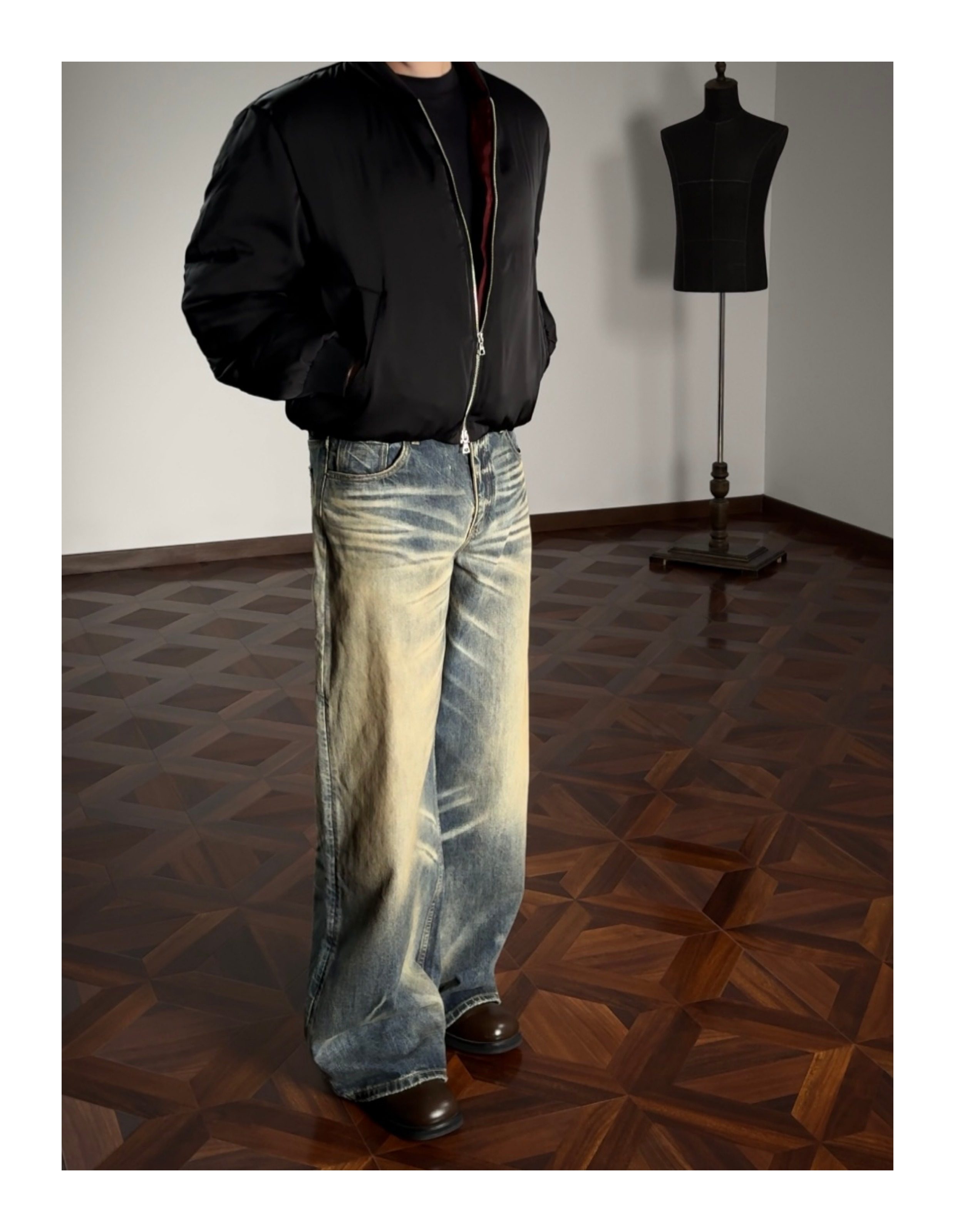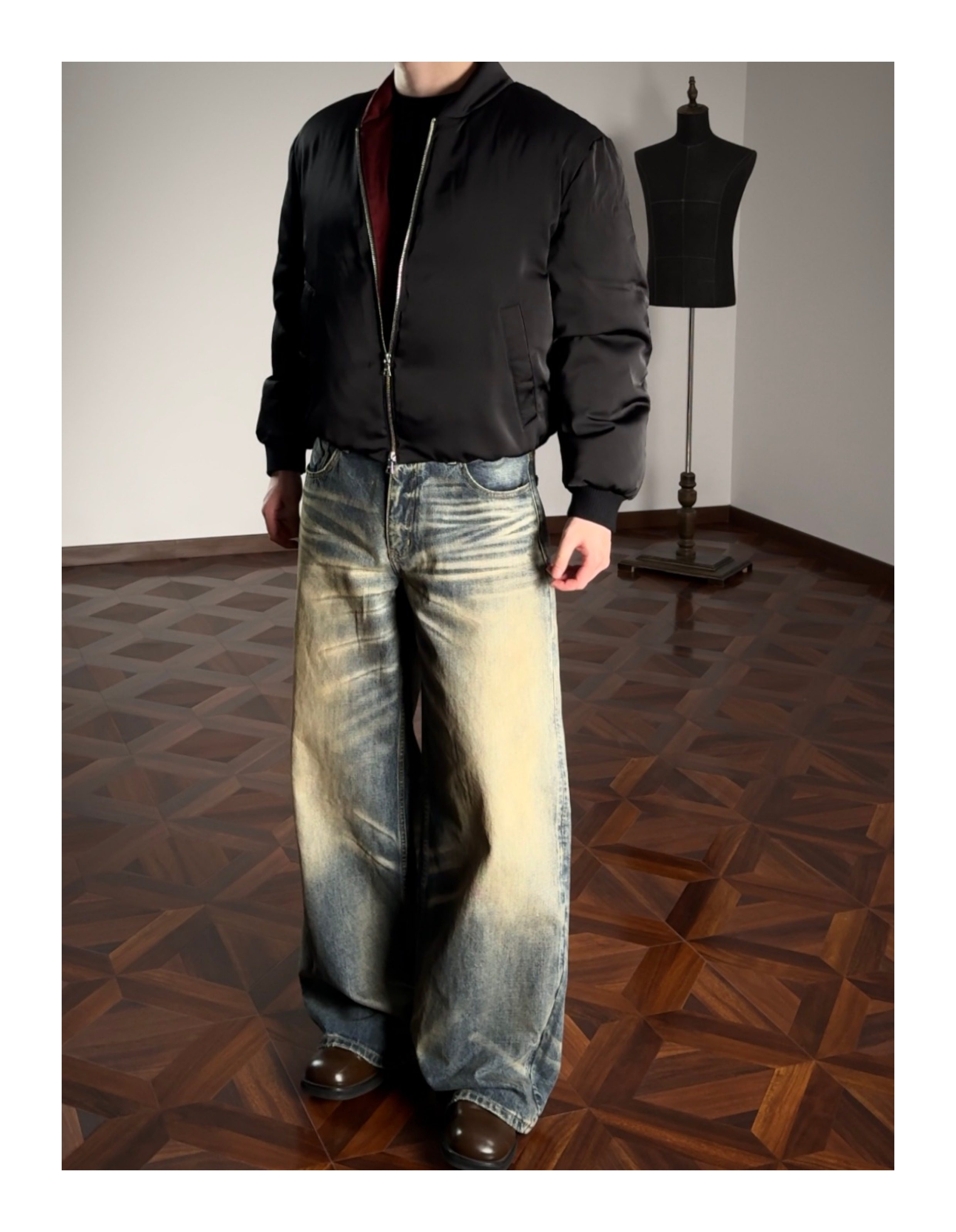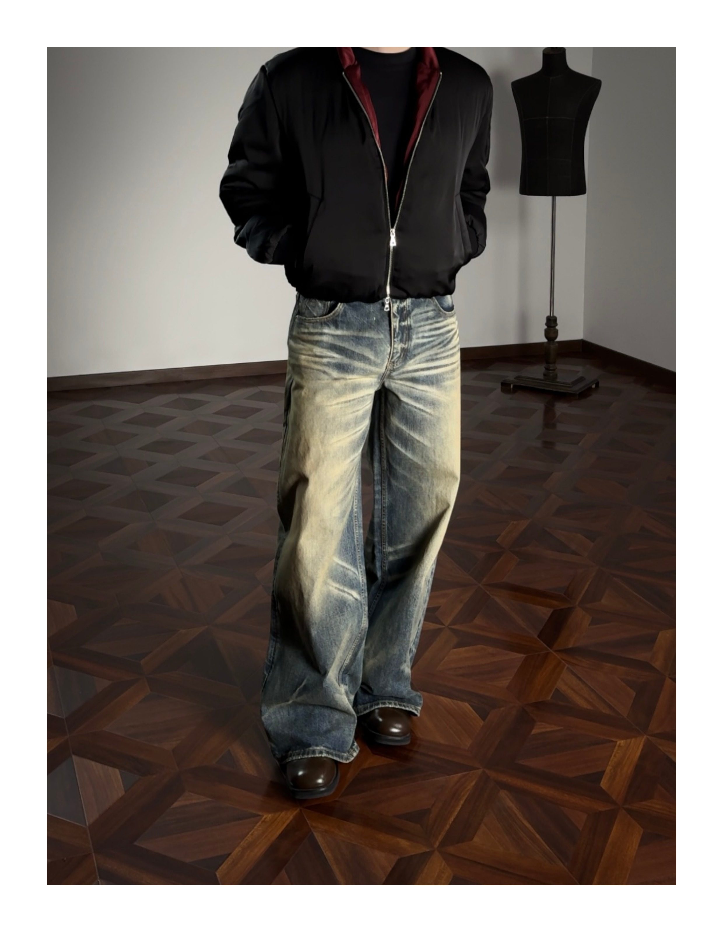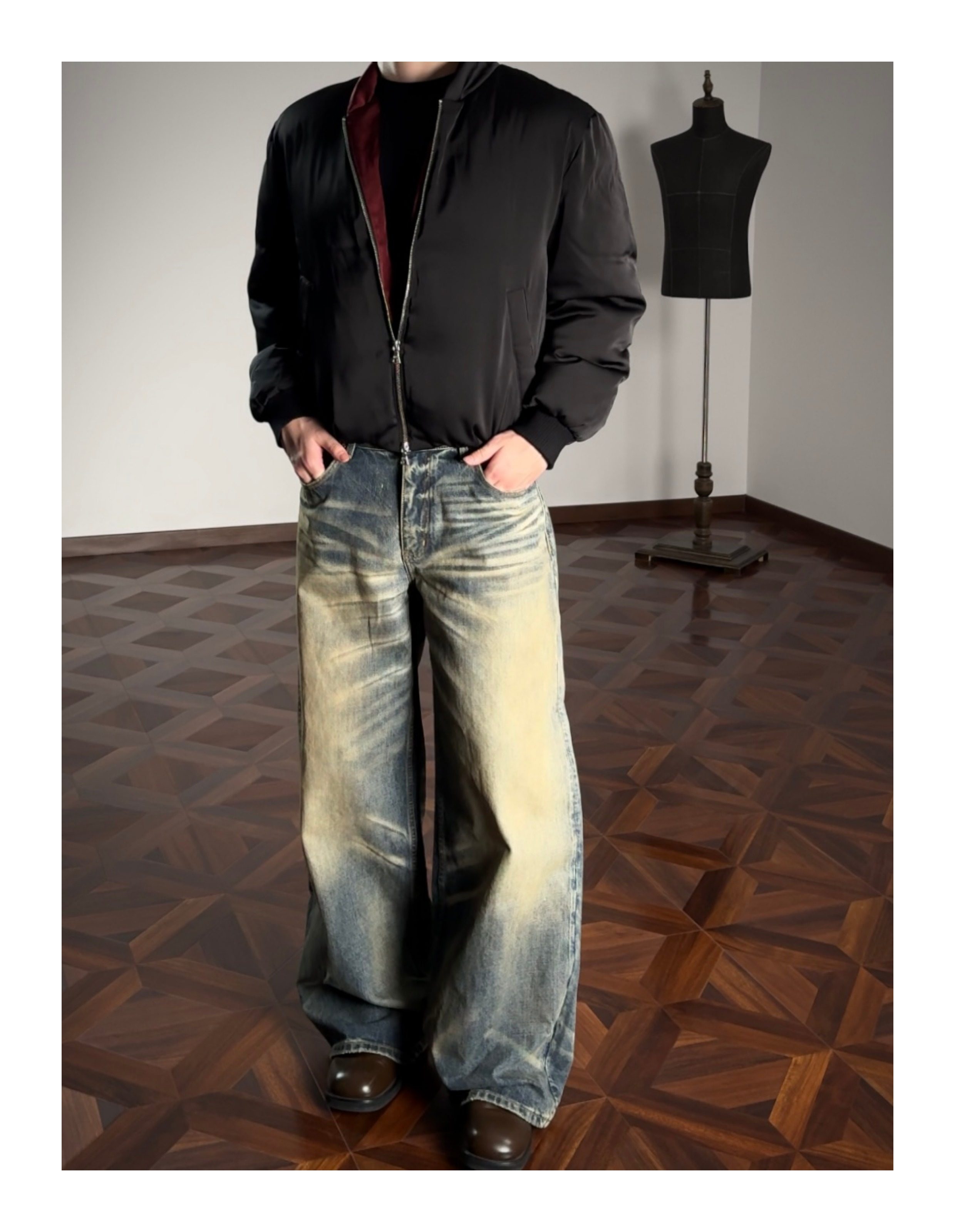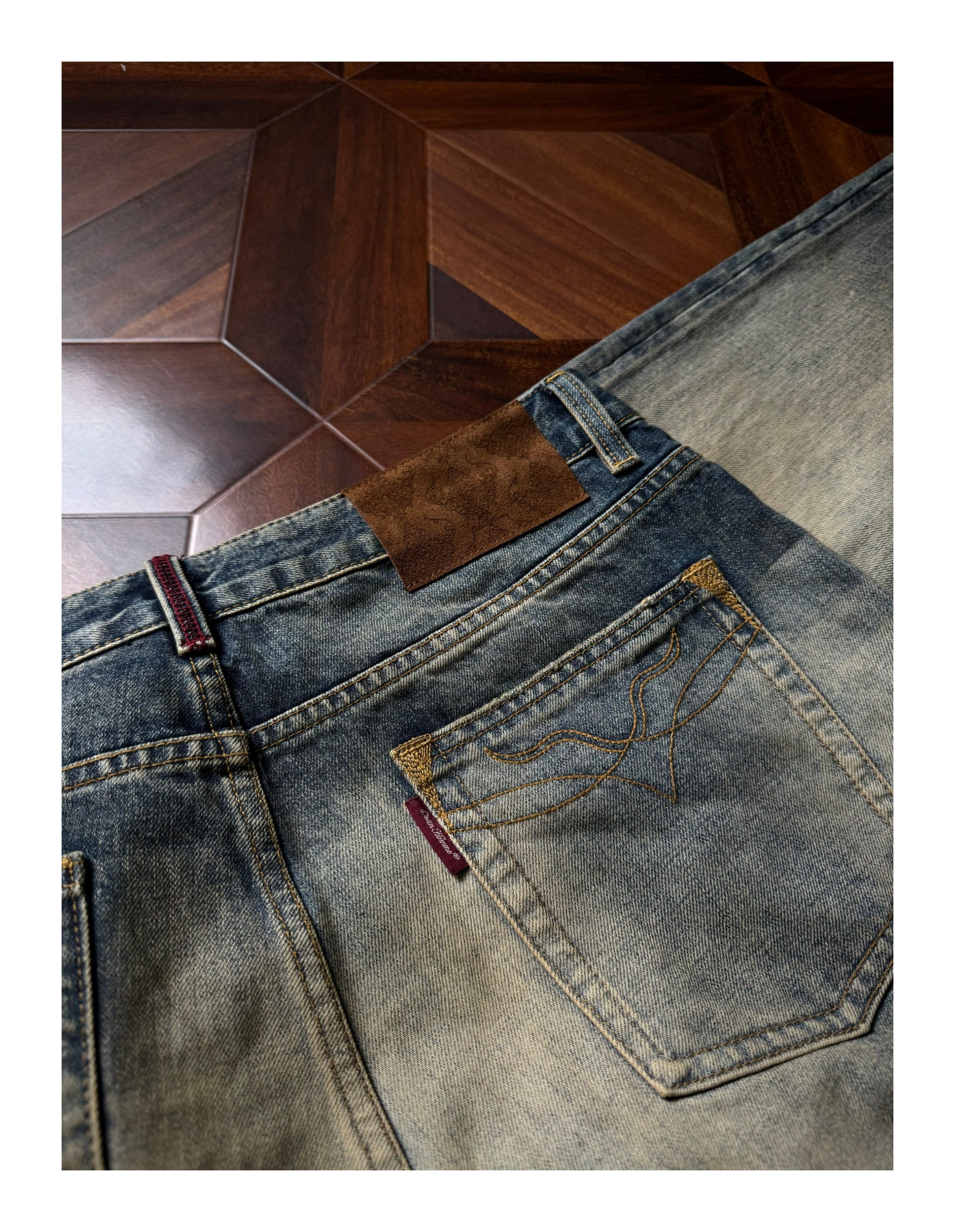 Oclin Master - Jean ample en nid d'abeille avec moustaches délavées, bleu tempête, teinture de boue 003, marque conjointe