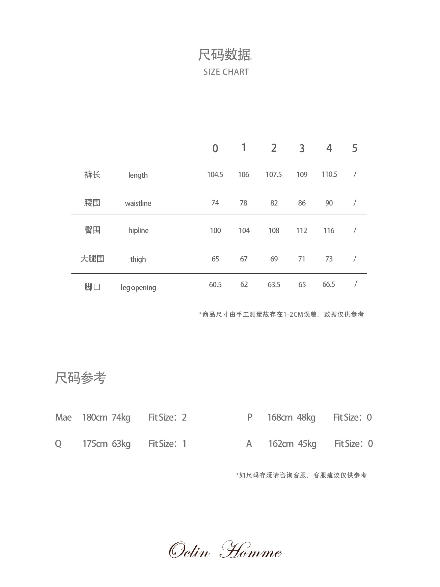 Outseam (cm) 99 cm 101.5 cm 104 cm 106.5 cm 109 cm