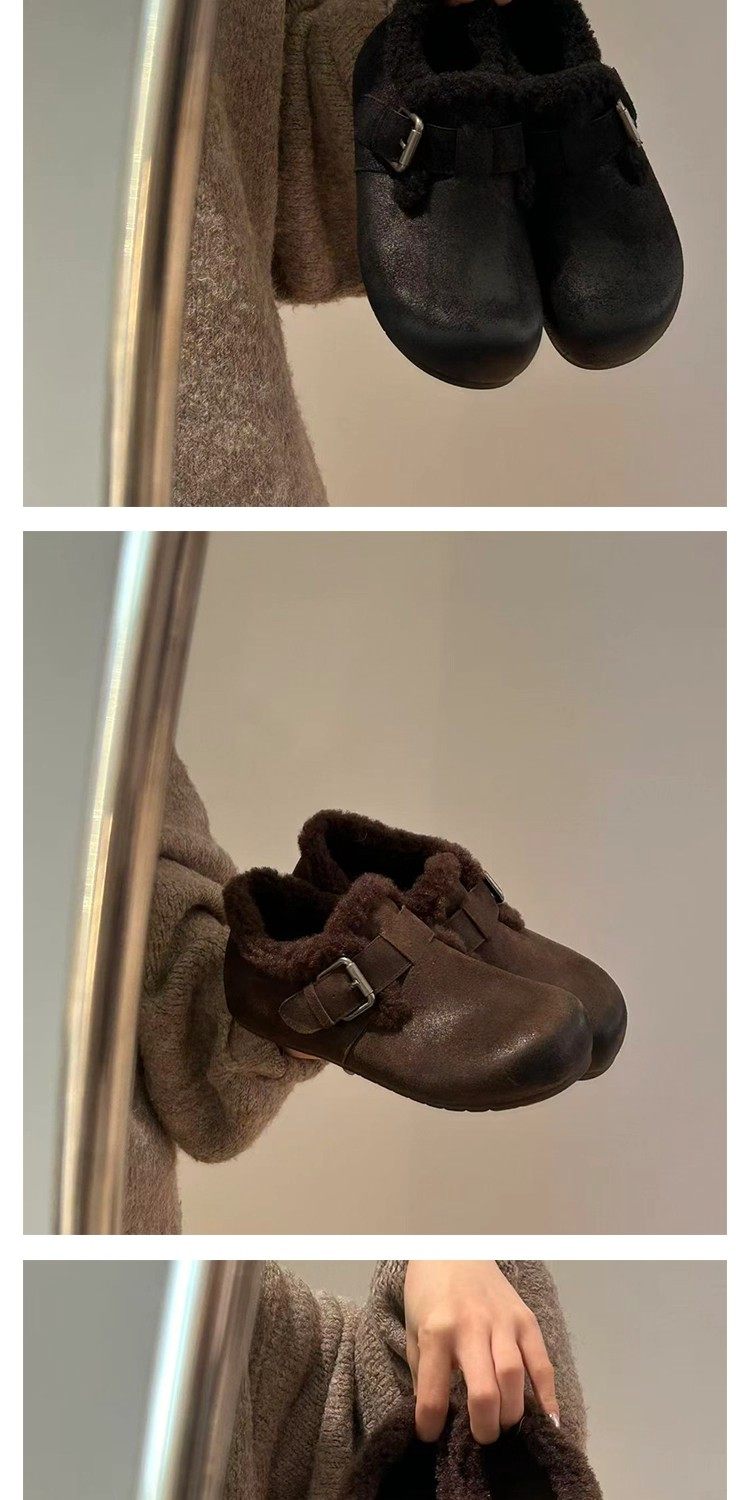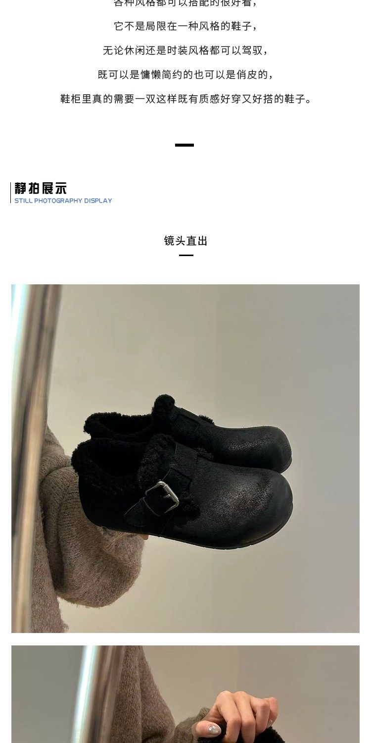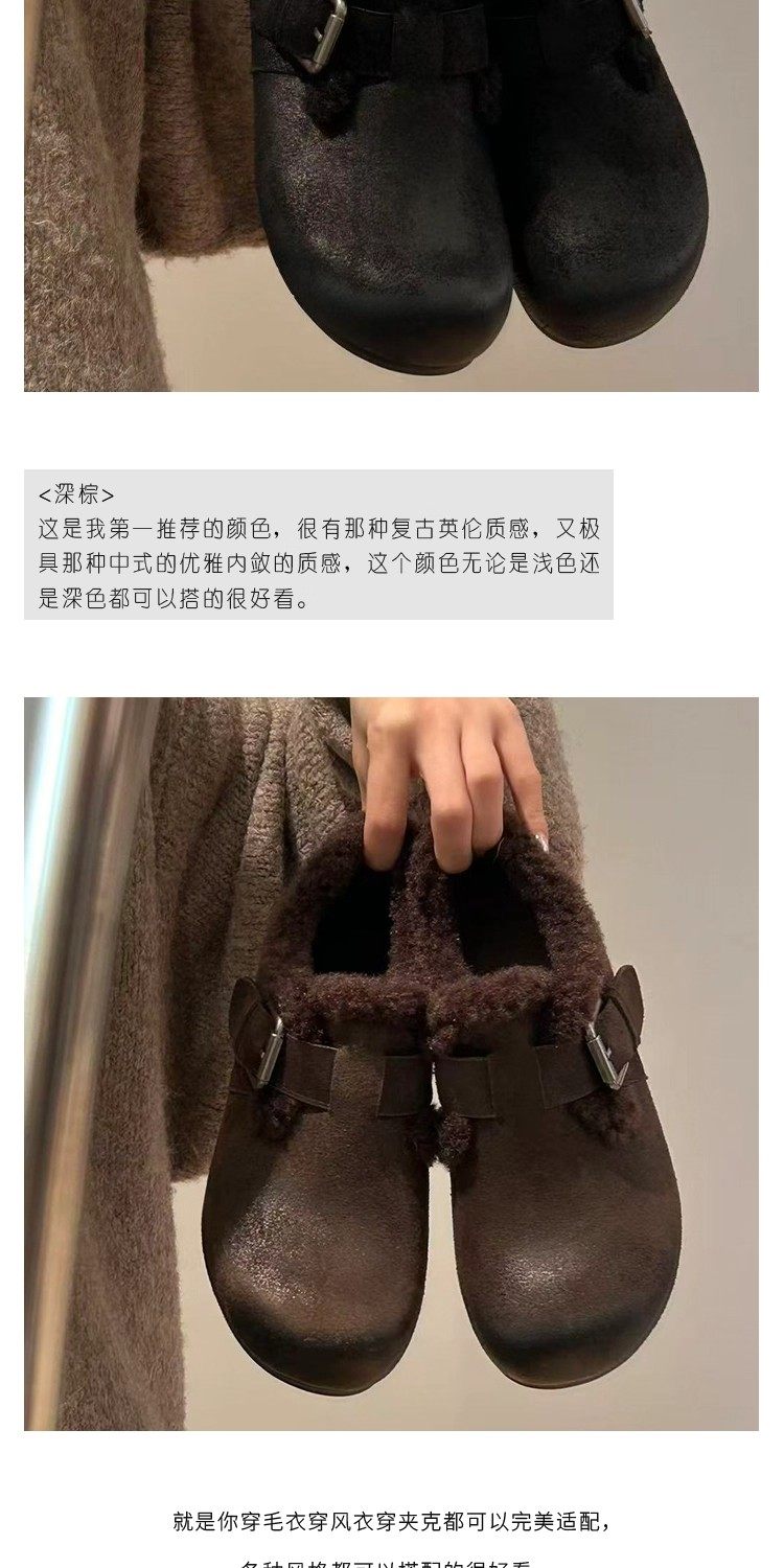 Women's Shoes Eucalyptus 2025 Winter New Casual Retro Versatile Flat Slip-On Cotton-Lined Birkenstock Shoes