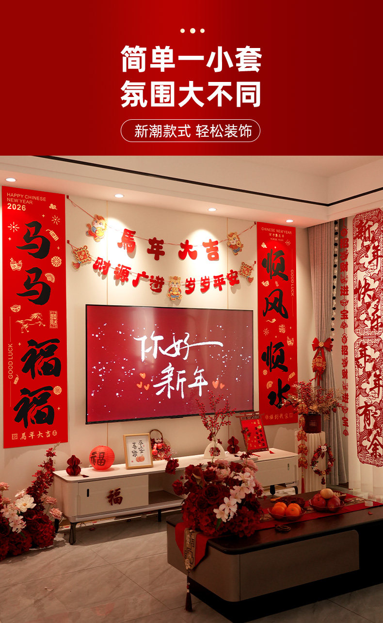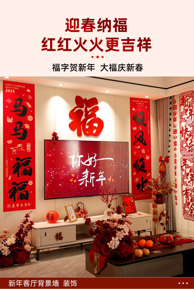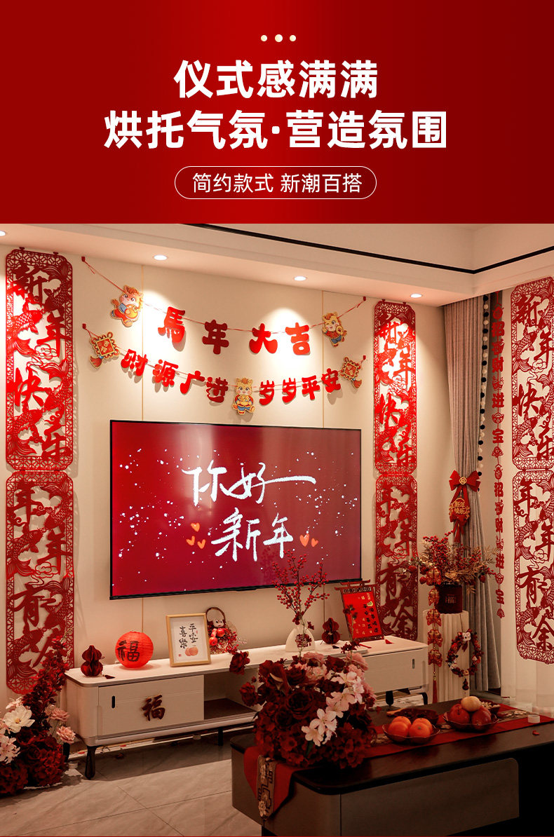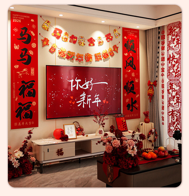 2026 New Year, Year of the Horse, living room decoration, Chinese New Year TV background wall stickers, New Year blessing hanging decorations, atmosphere decoration