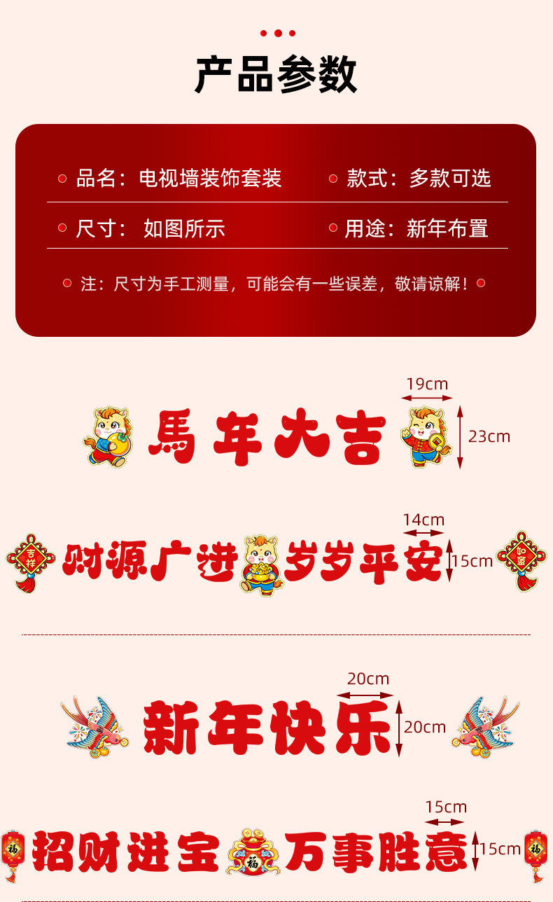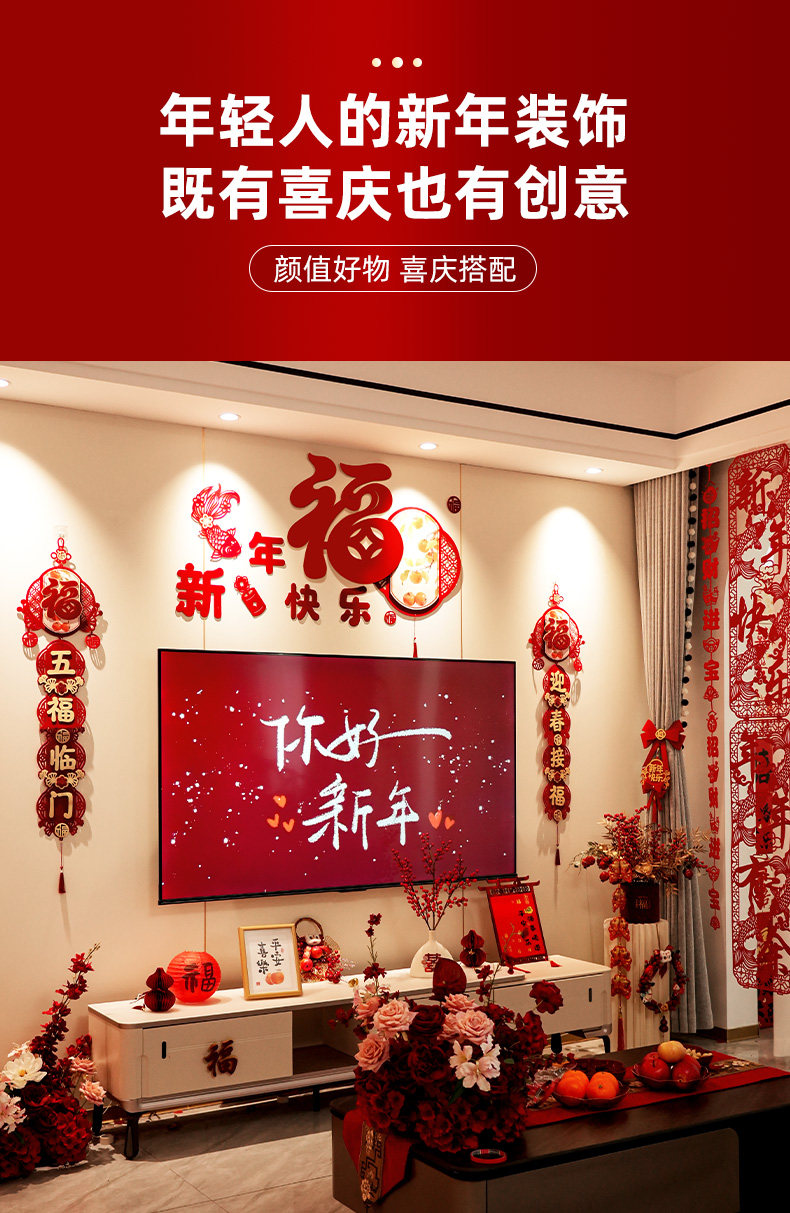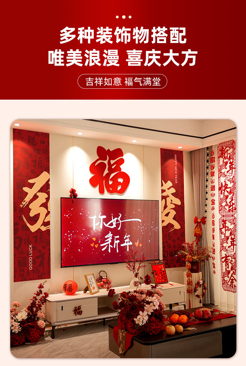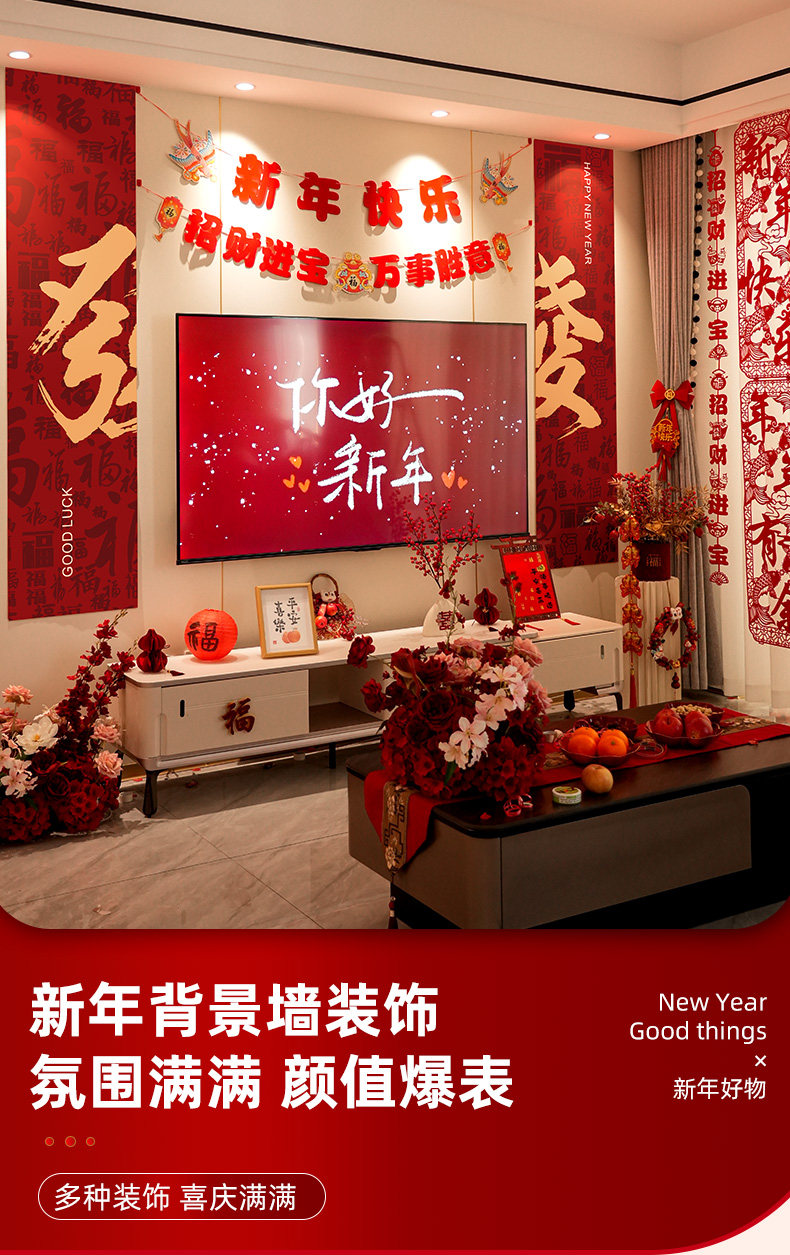 2026 New Year, Year of the Horse, living room decoration, Chinese New Year TV background wall stickers, New Year blessing hanging decorations, atmosphere decoration