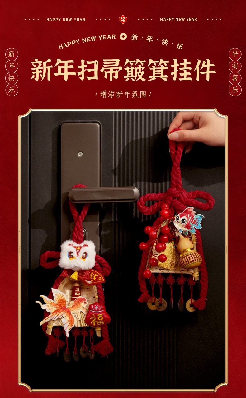 颜色分类 福气笤帚簸箕挂件【金玉满堂】,福气笤帚簸箕挂件【福禄吉祥】,福气笤帚簸箕挂件【金玉满堂+福禄吉祥】