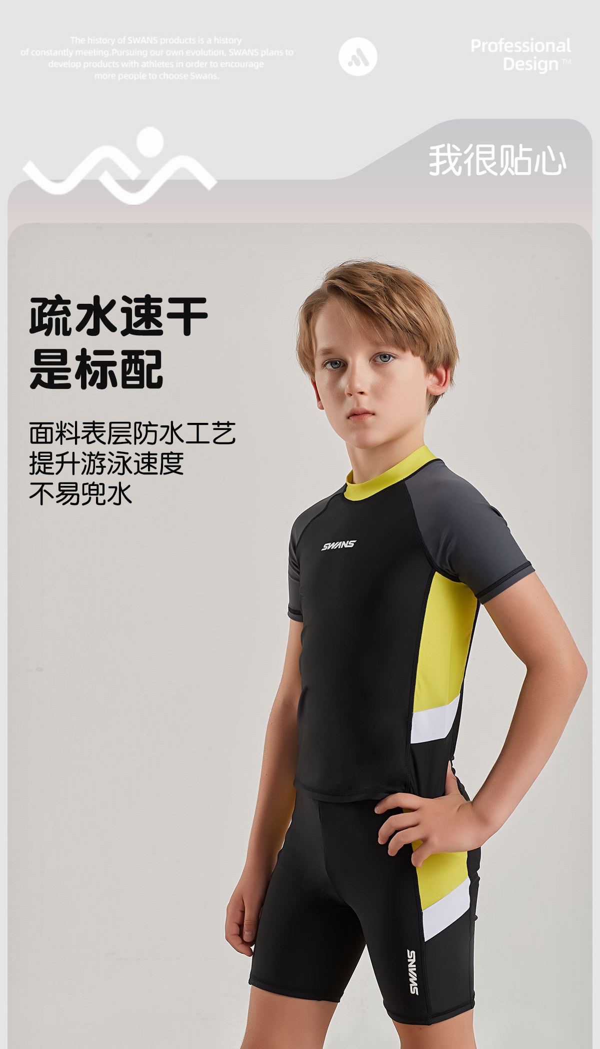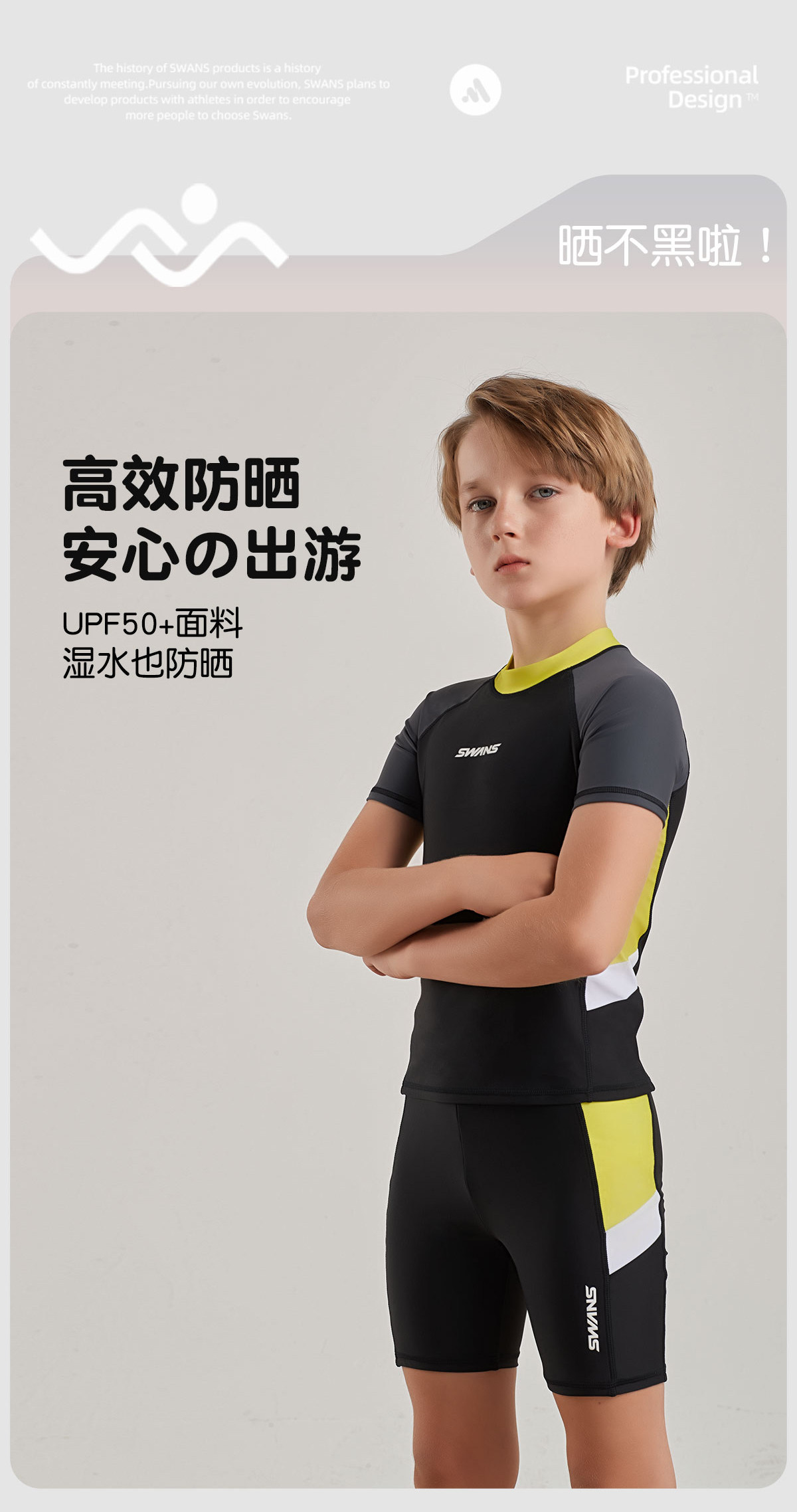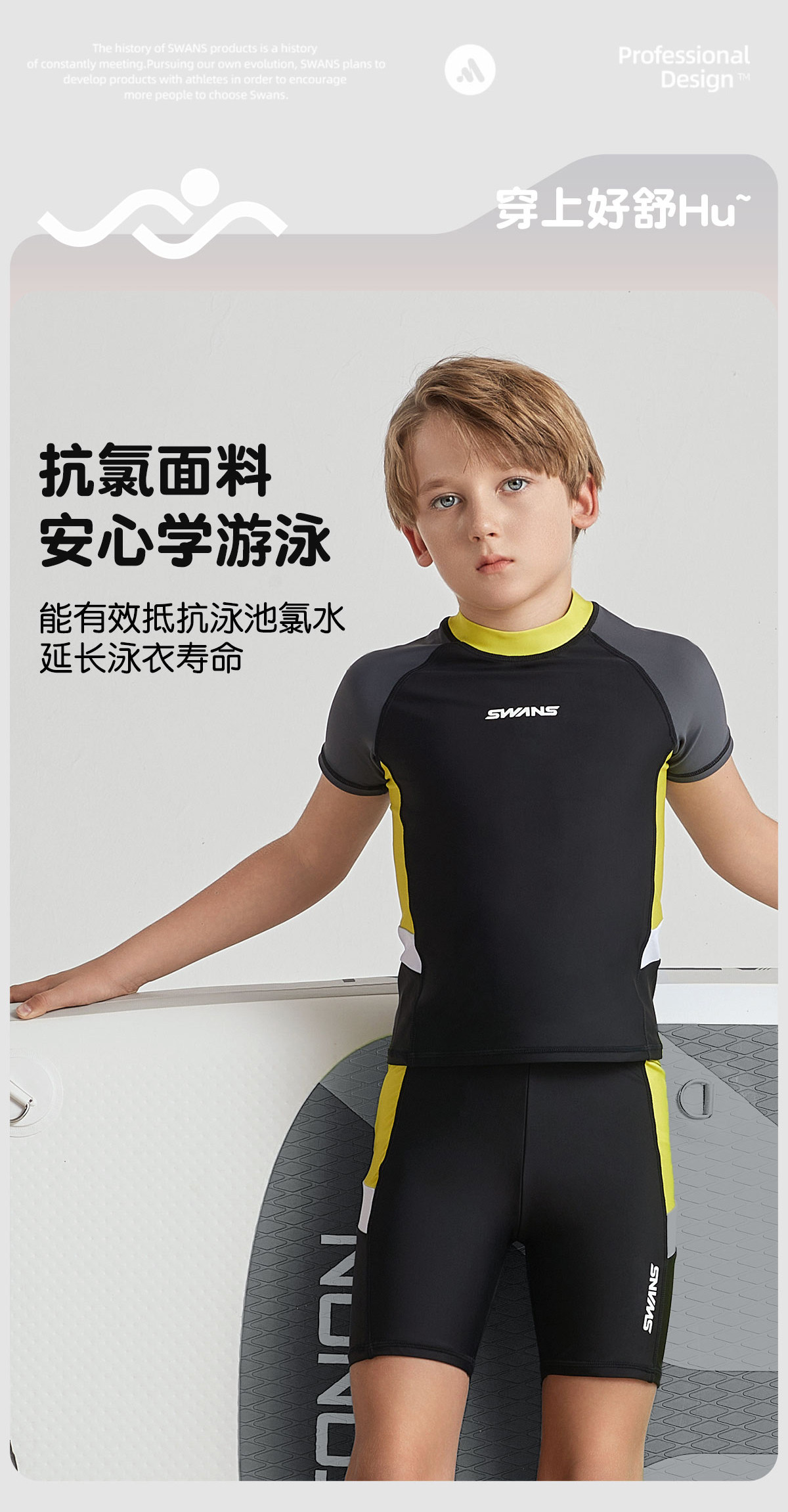 swans儿童泳衣男孩分体速干专业防晒2025新中大童男童青少年游泳